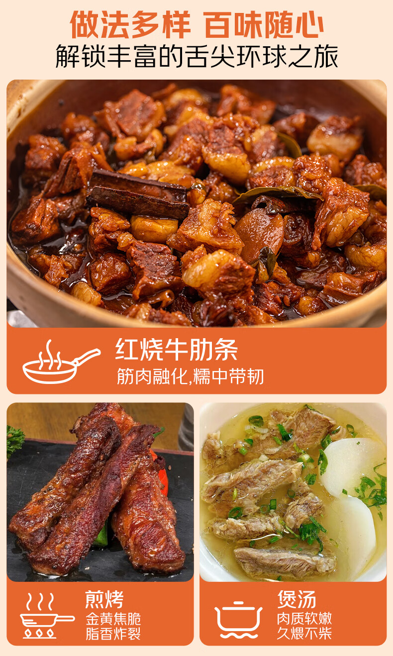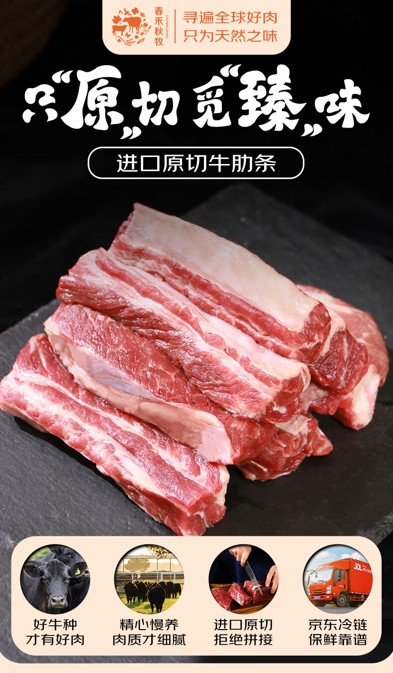 春禾秋牧巴西草饲原切牛肋条 净重2斤 炖煮香煎烧烤 进口牛肉生鲜