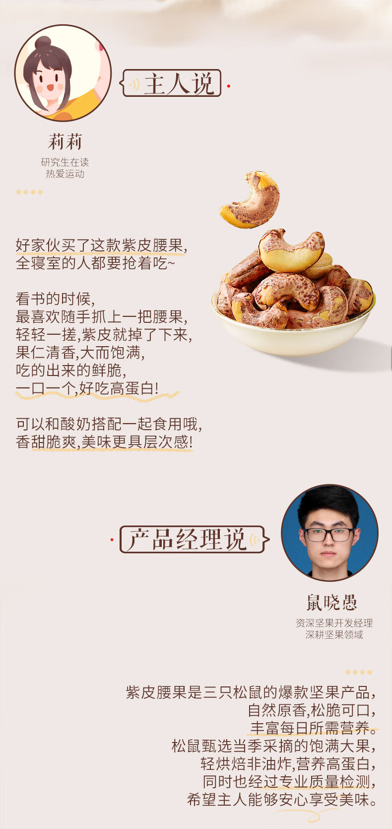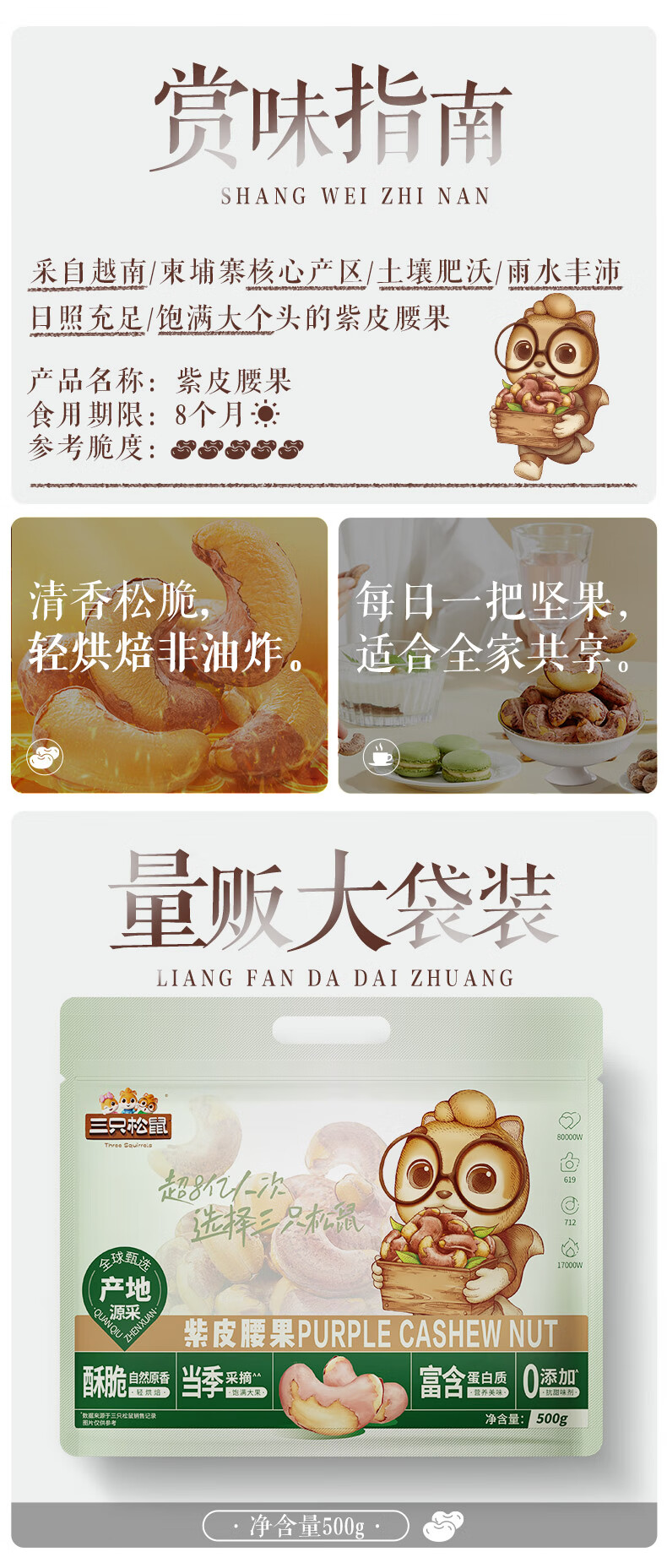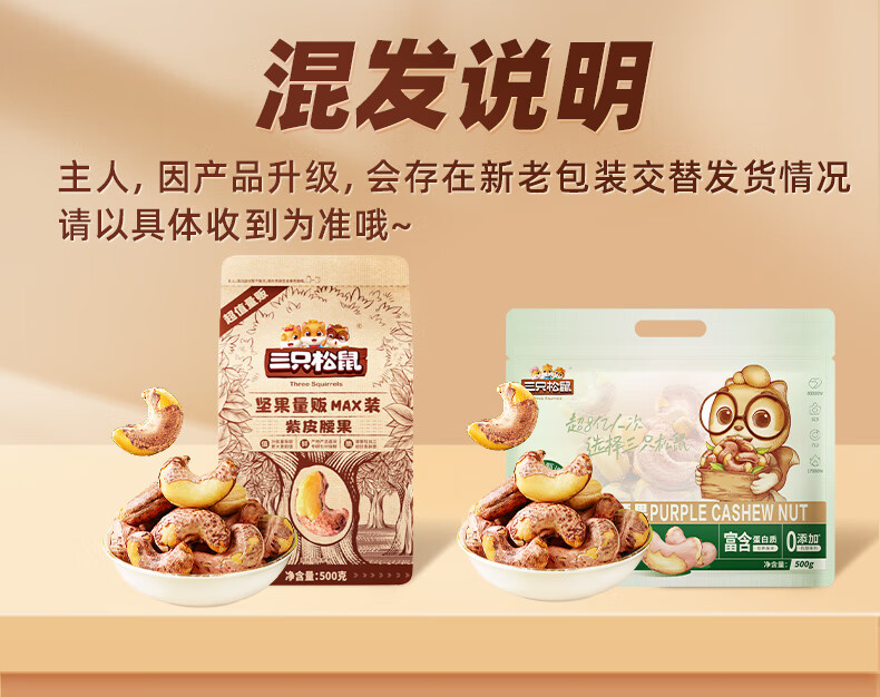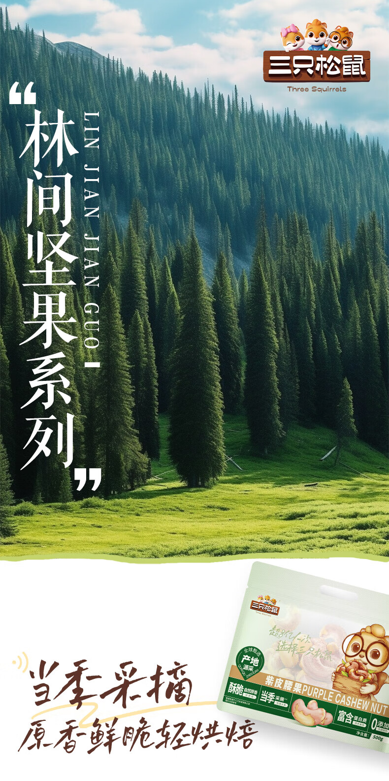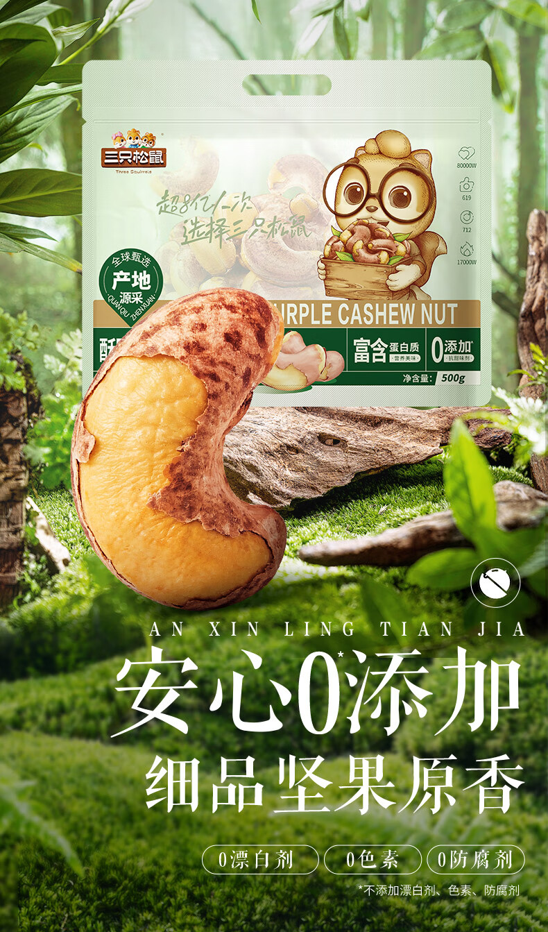 三只松鼠 紫皮腰果500g/袋 坚果炒货干果休闲零食送礼一斤装混发
