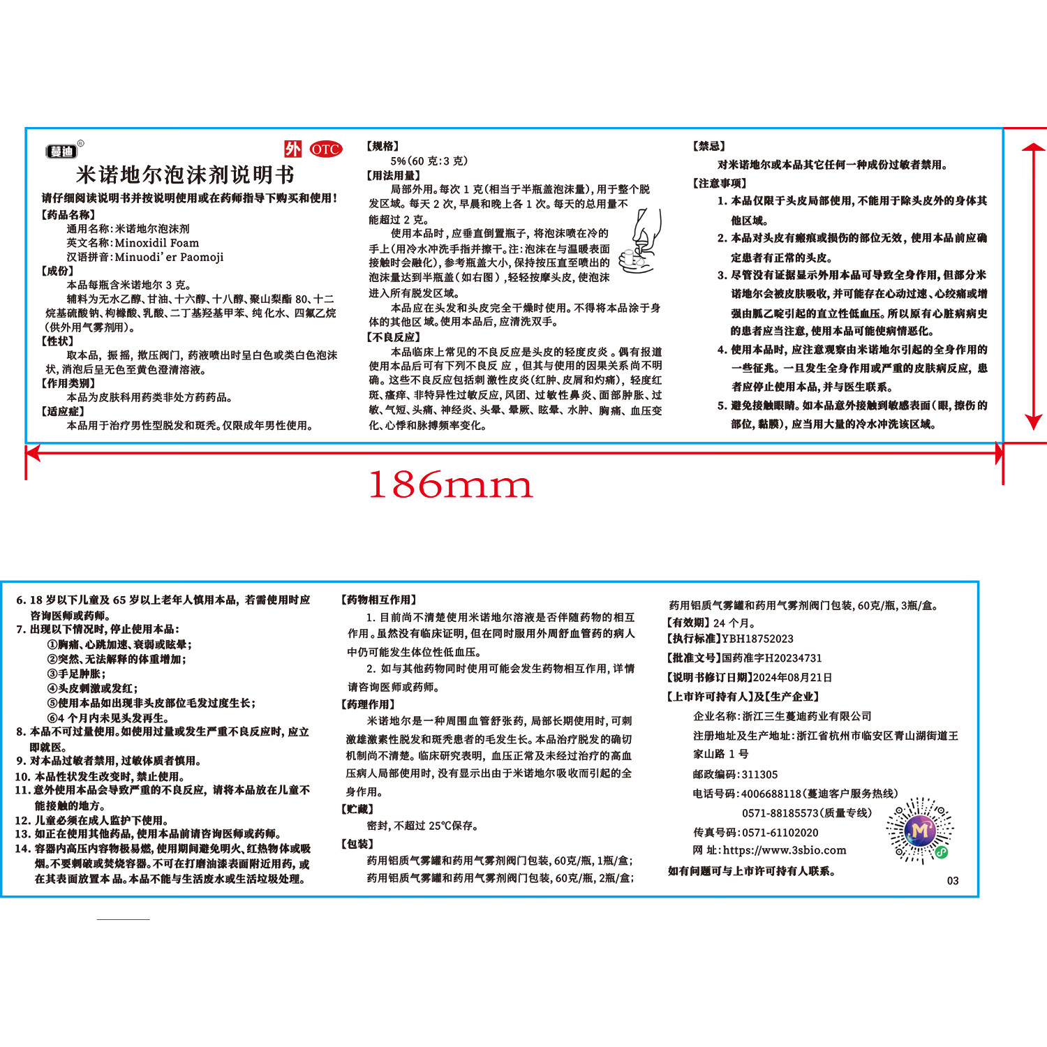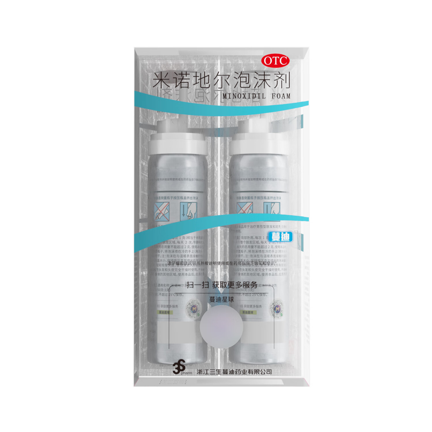 【第二代米诺地尔】蔓迪生发泡沫60g*2(敏皮专属 温和不油腻)5%男女士快速防脱育发米洛原液搽剂酊曼迪