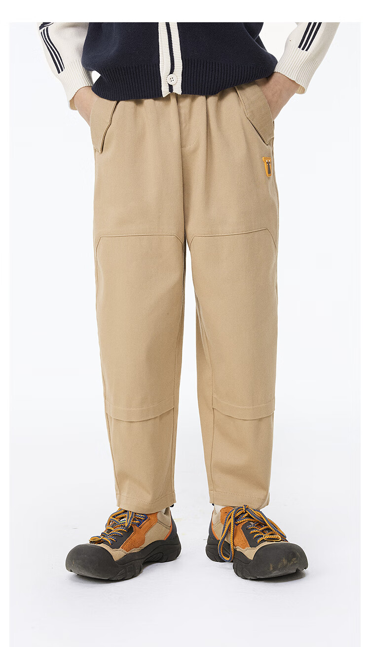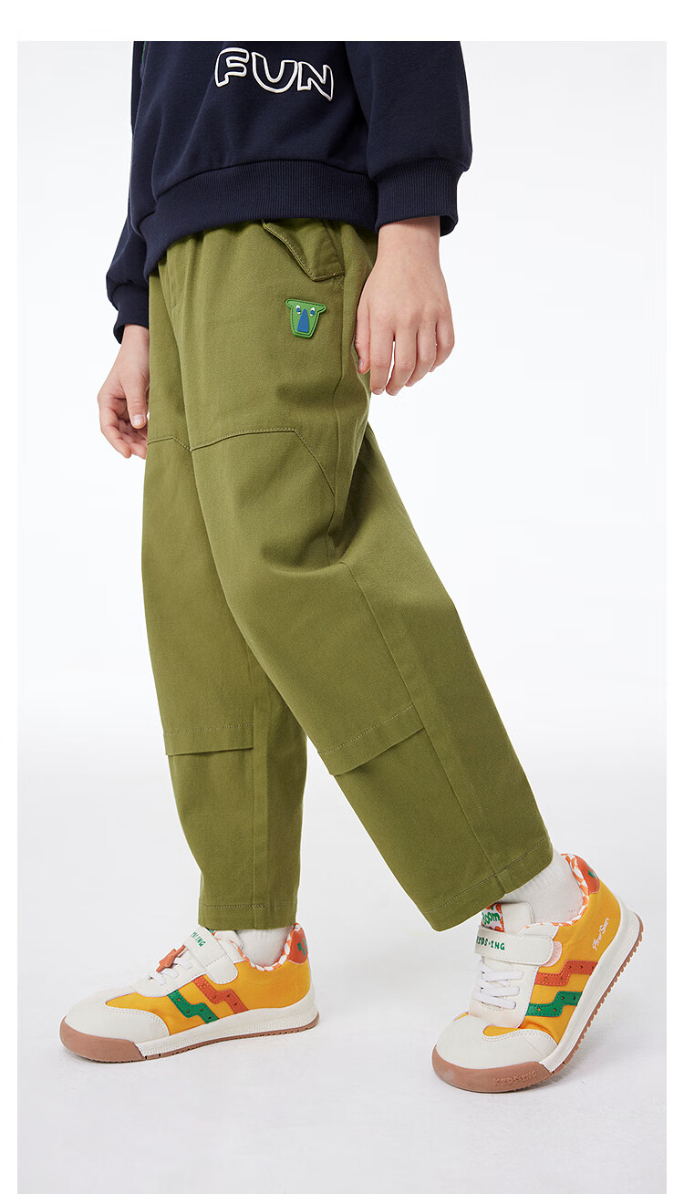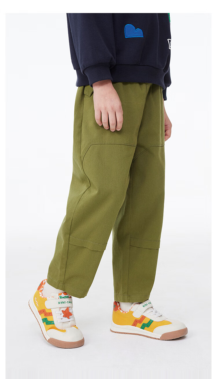 MQD童装男童休闲裤复古潮酷儿童户外工装风运动长裤子 军绿 130