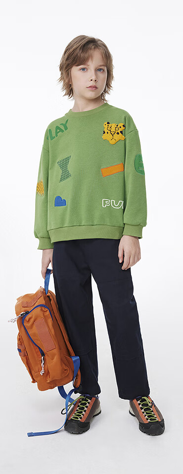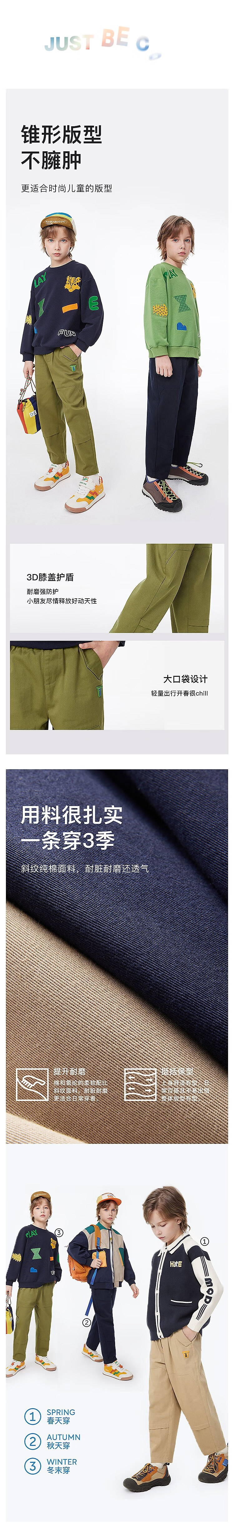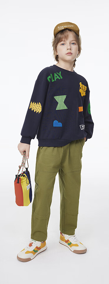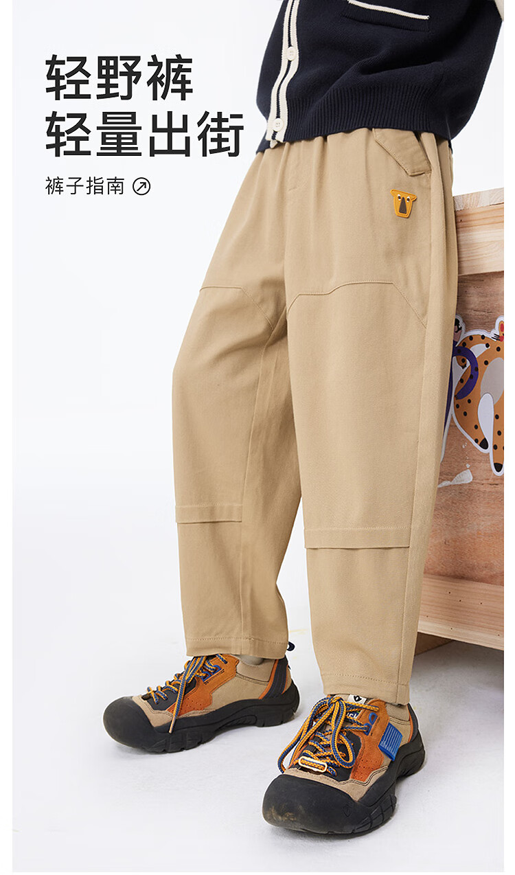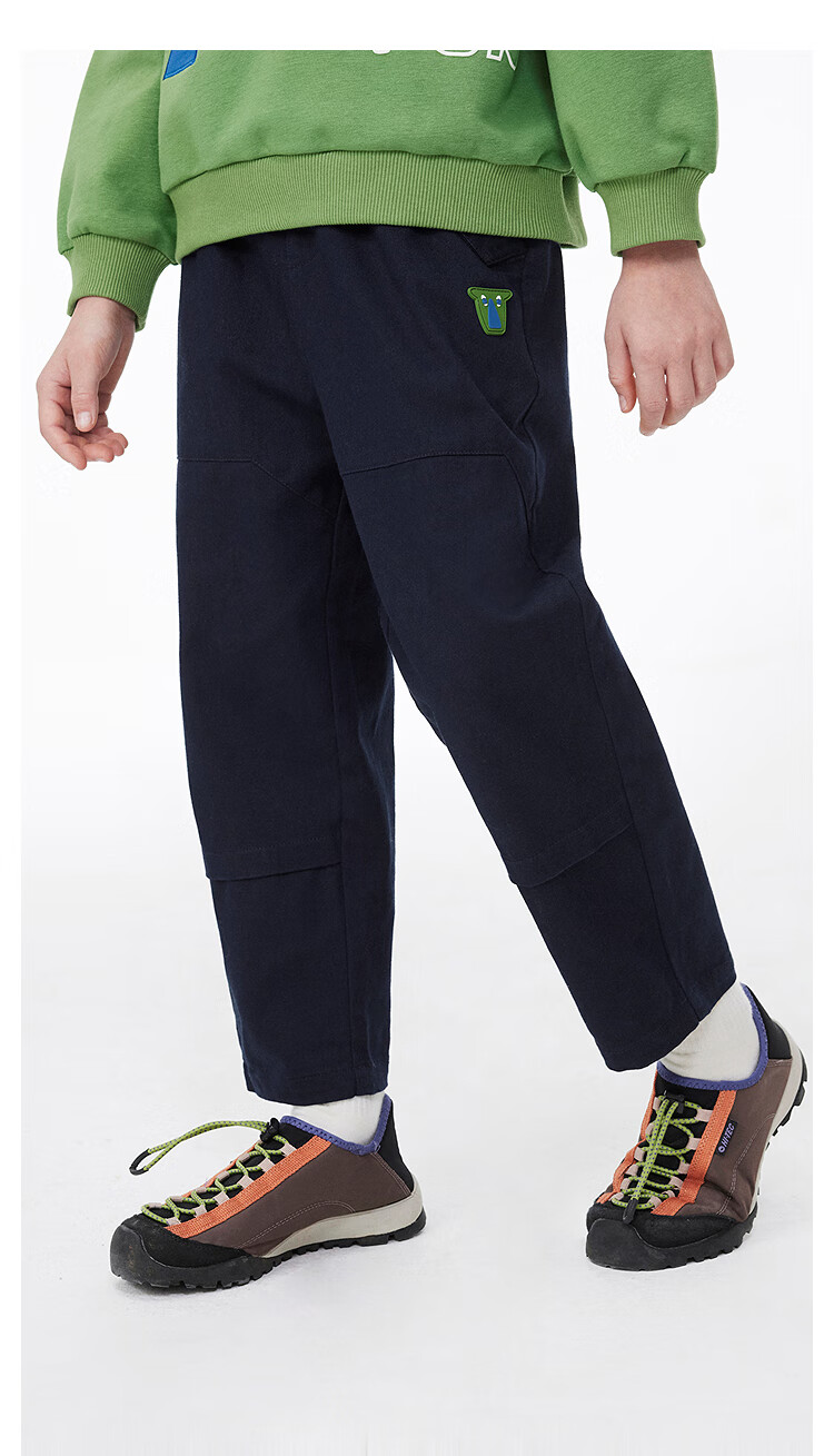 MQD童装男童休闲裤复古潮酷儿童户外工装风运动长裤子 军绿 130