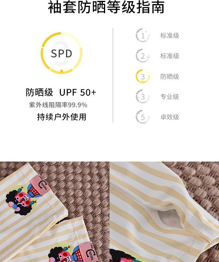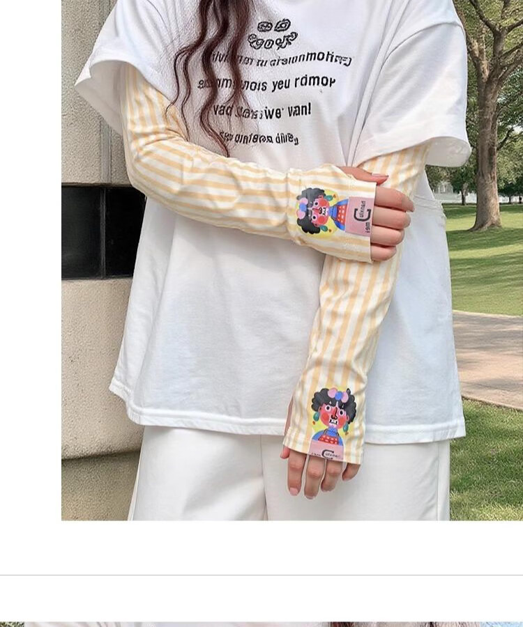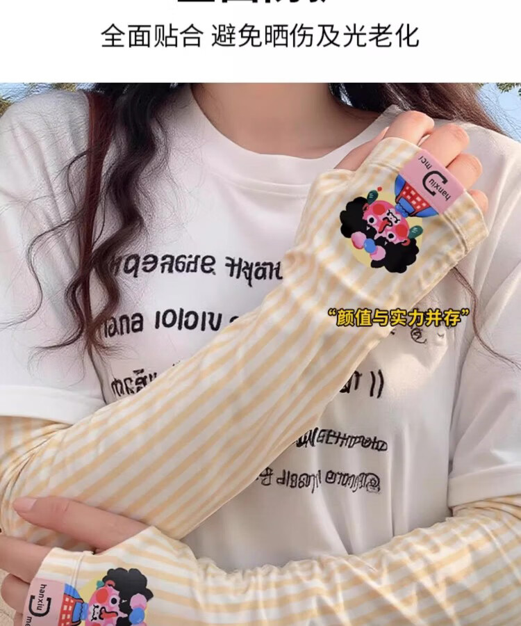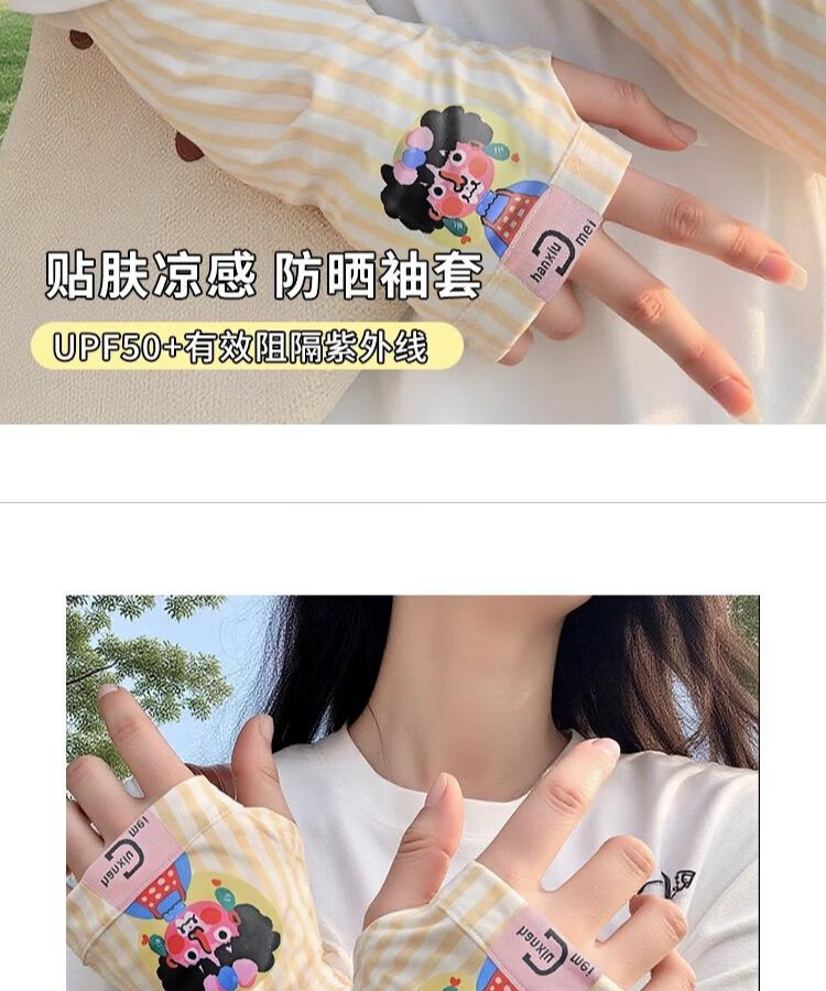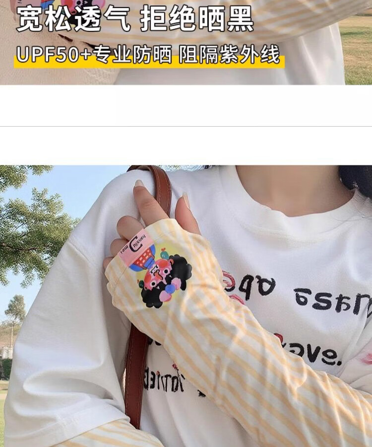 万宝绿冰袖女防晒袖套防紫外线夏季冰丝宽松版2026新款护袖手臂套 UPF50+【黄色条纹女孩】宽松可调节.