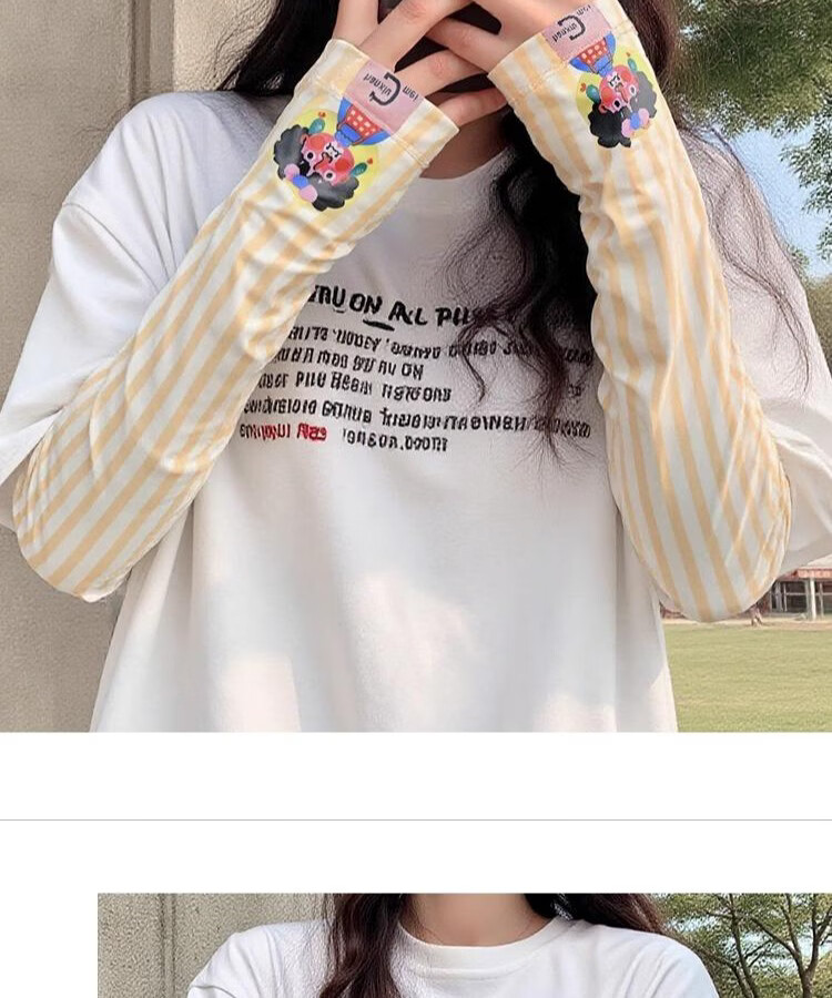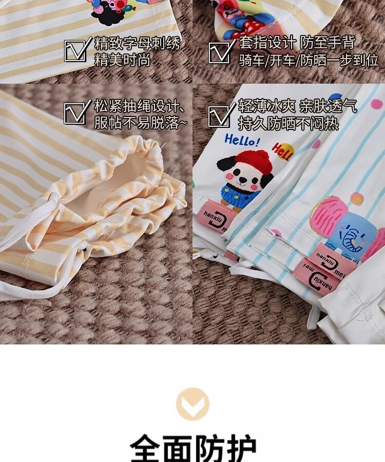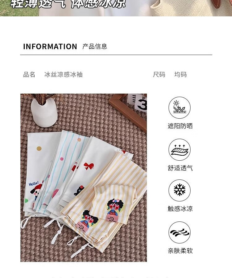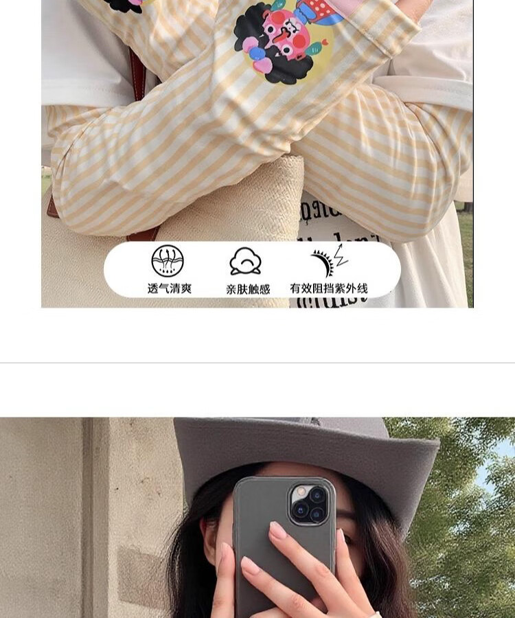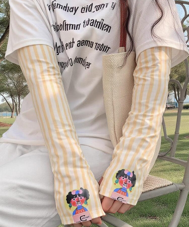 万宝绿冰袖女防晒袖套防紫外线夏季冰丝宽松版2026新款护袖手臂套 UPF50+【黄色条纹女孩】宽松可调节.