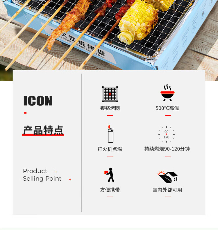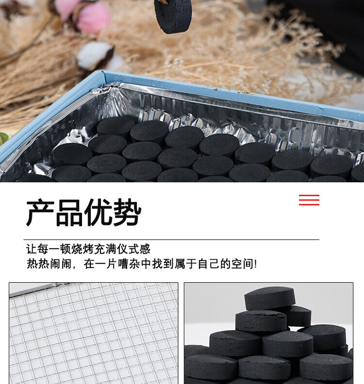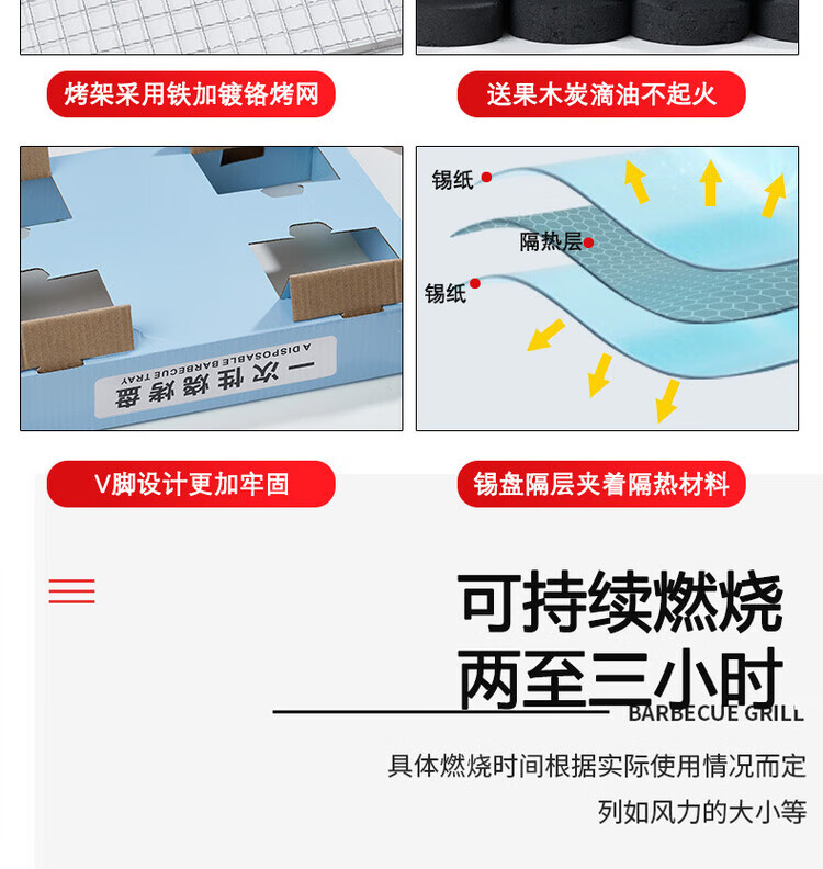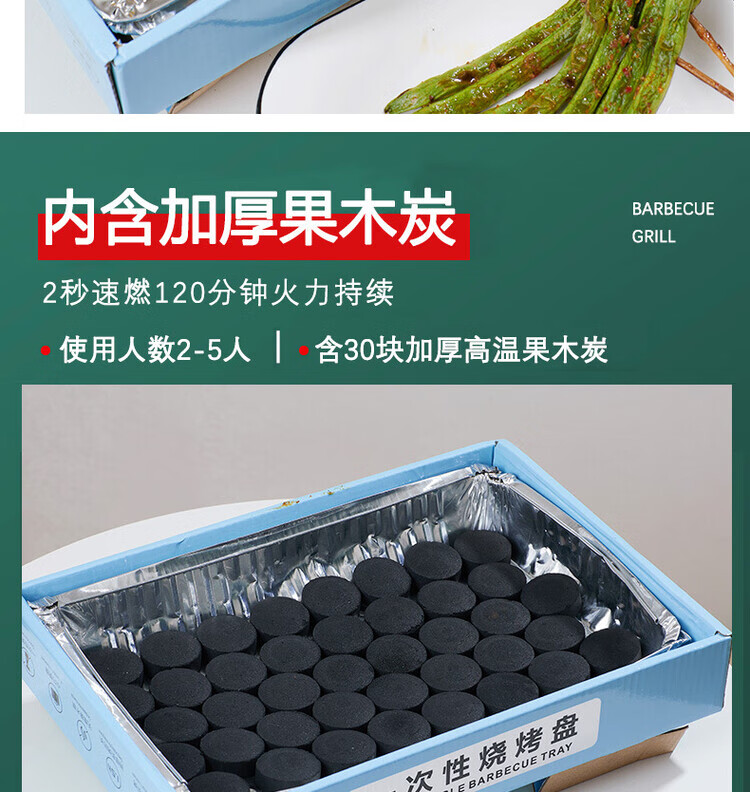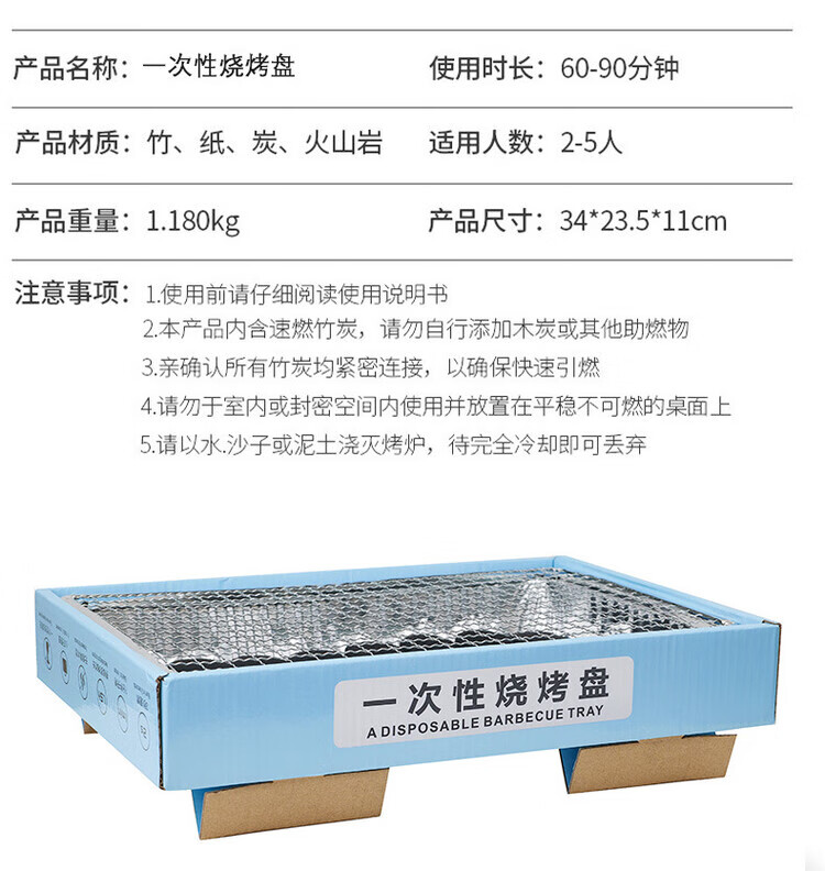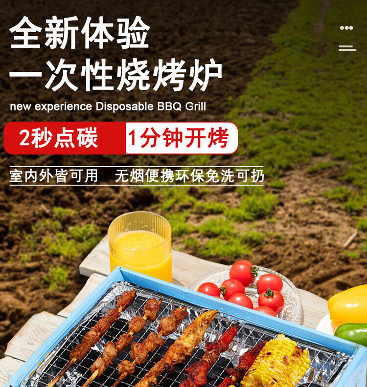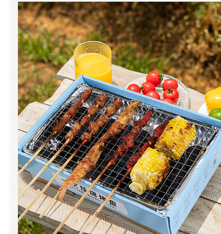 洋臣【淄博烧烤】一次性烧烤炉家用户外烧烤肉架子无烟碳小型烤炉工具 一次性烧烤炉+30粒碳+刷+网