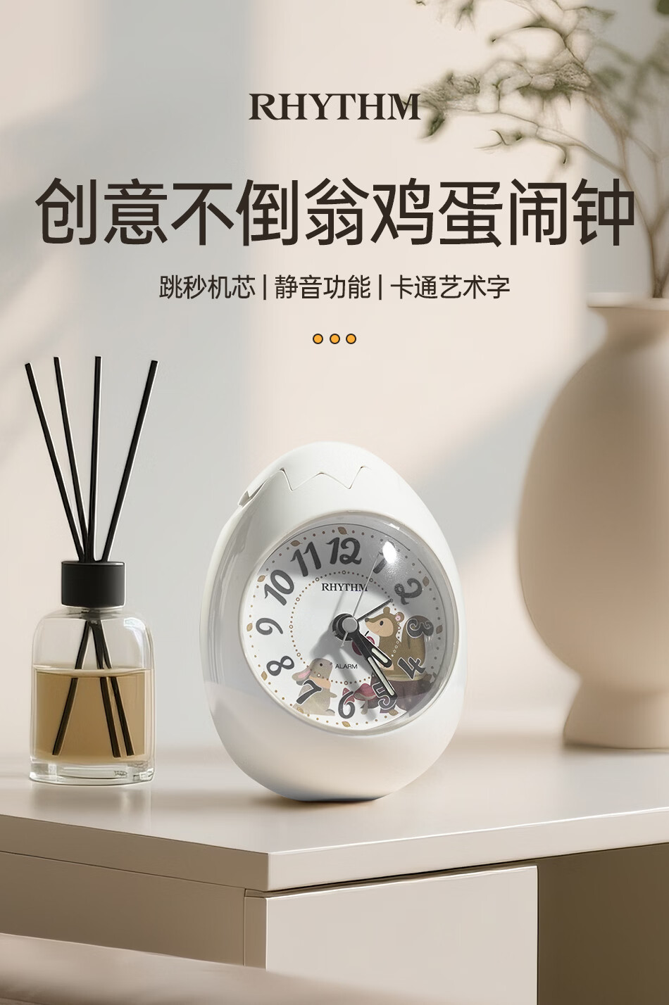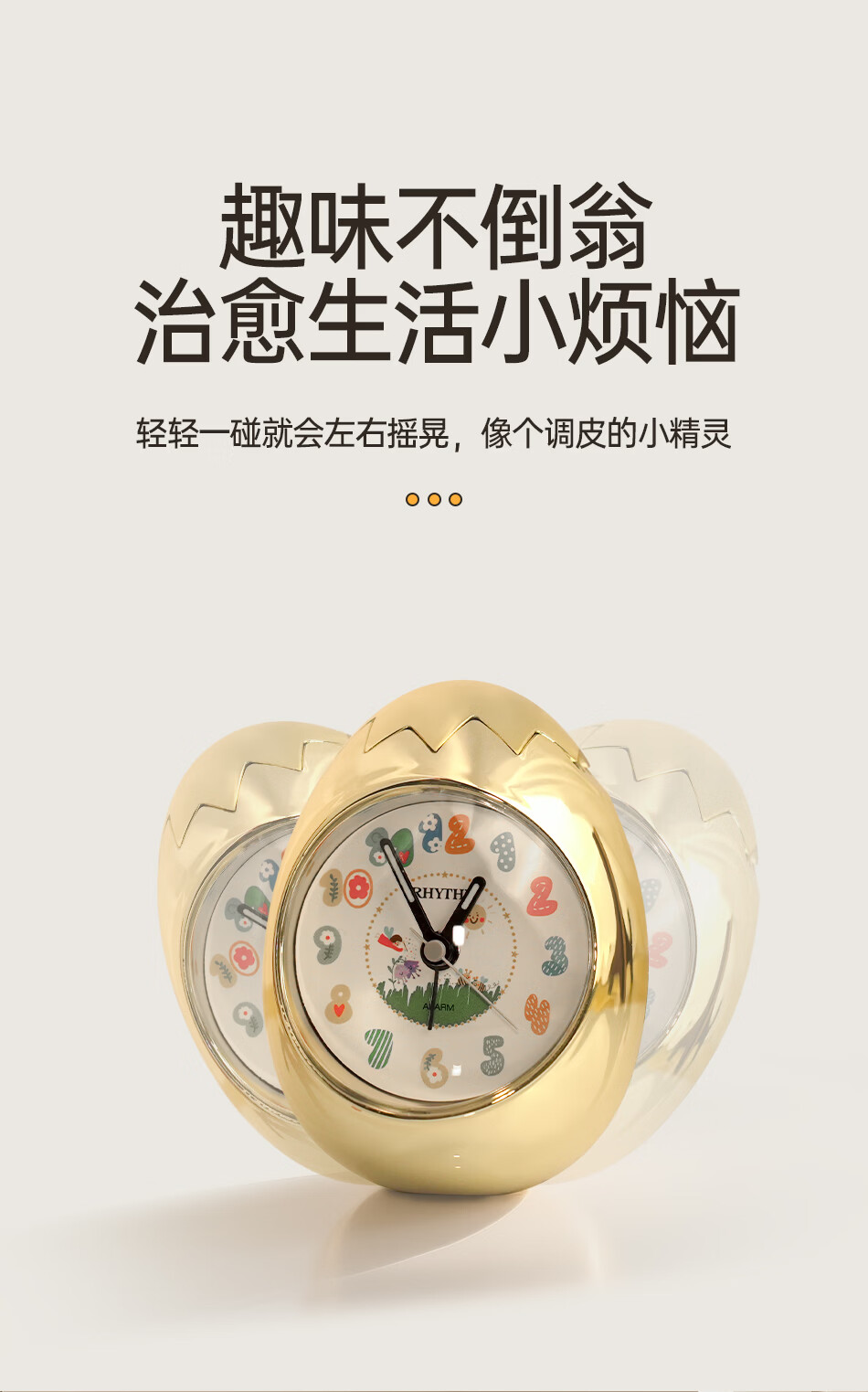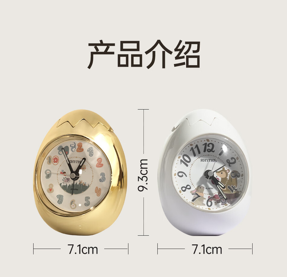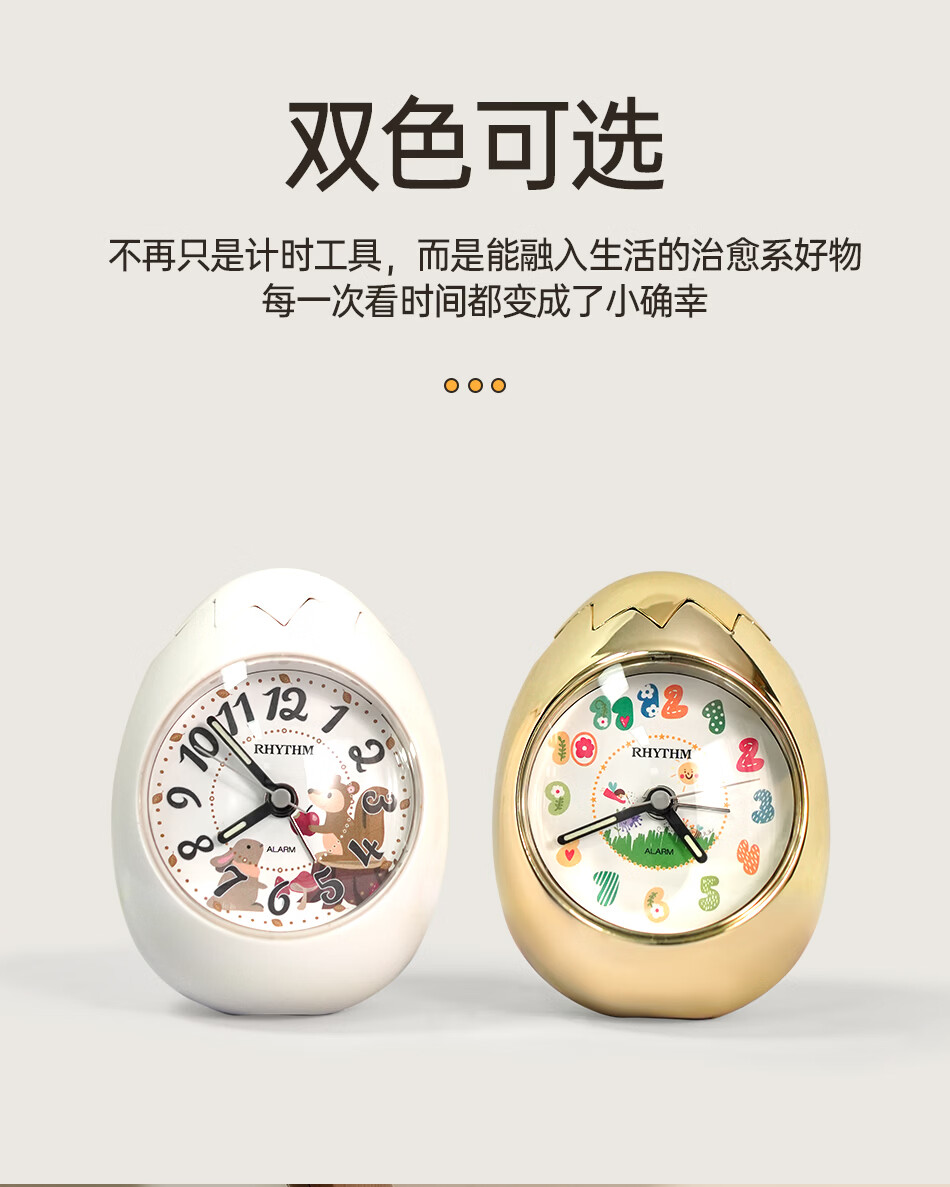 丽声(RHYTHM)日本创意不倒翁鸡蛋闹钟儿童学生卧室静音卡通超大音量起床床头钟可爱时钟贪睡叫醒 4RE886WP18金色