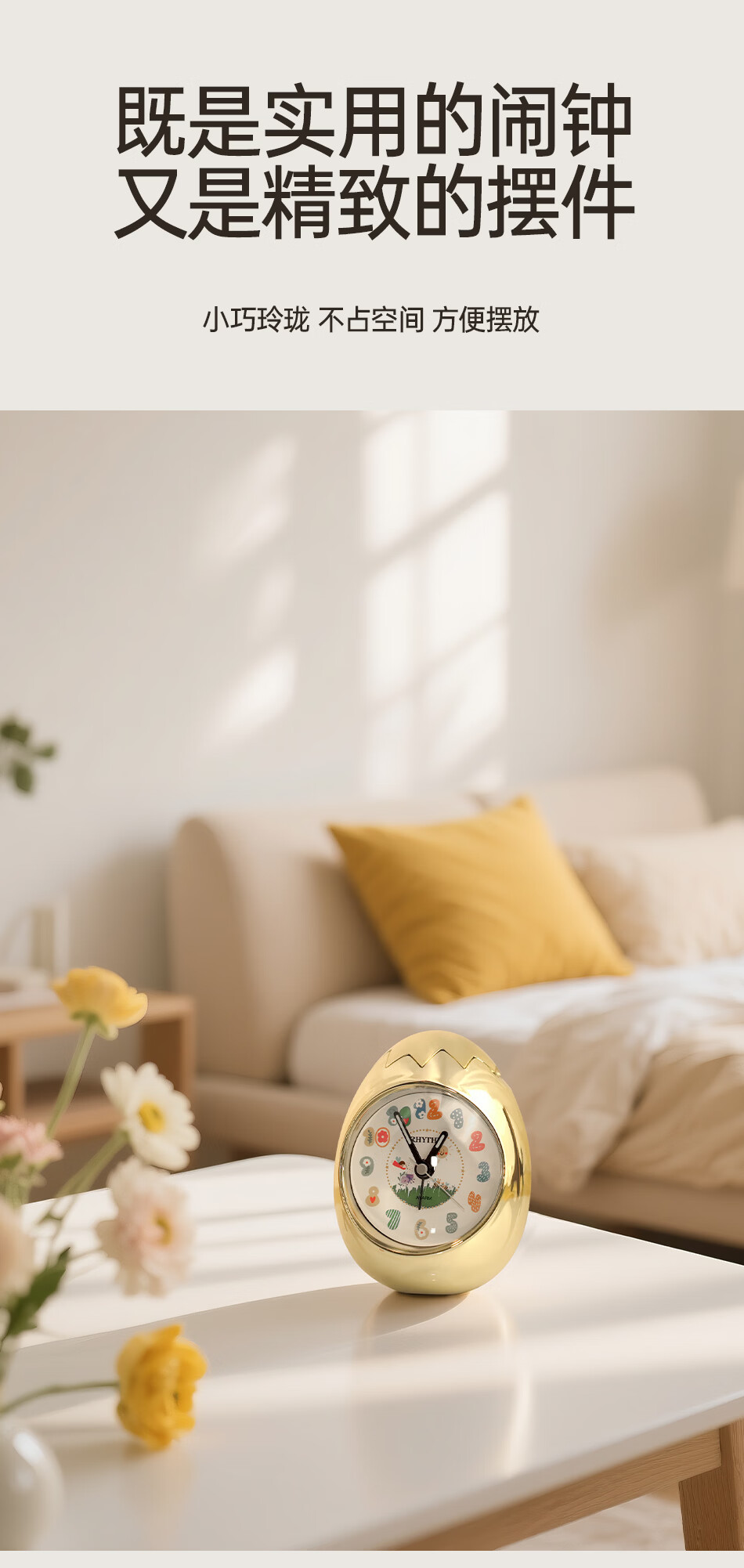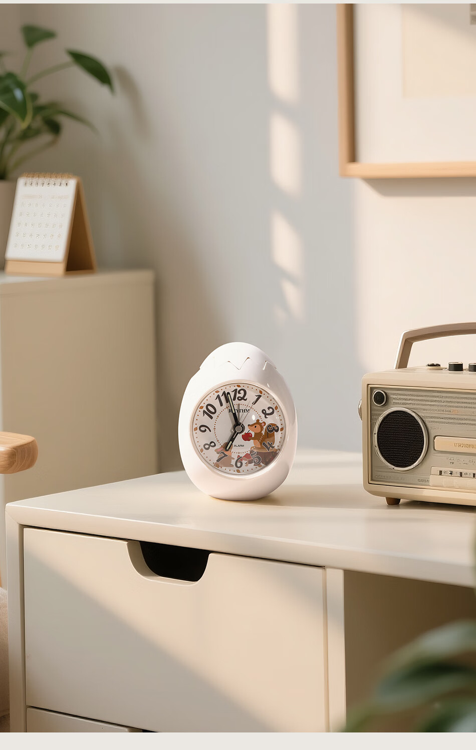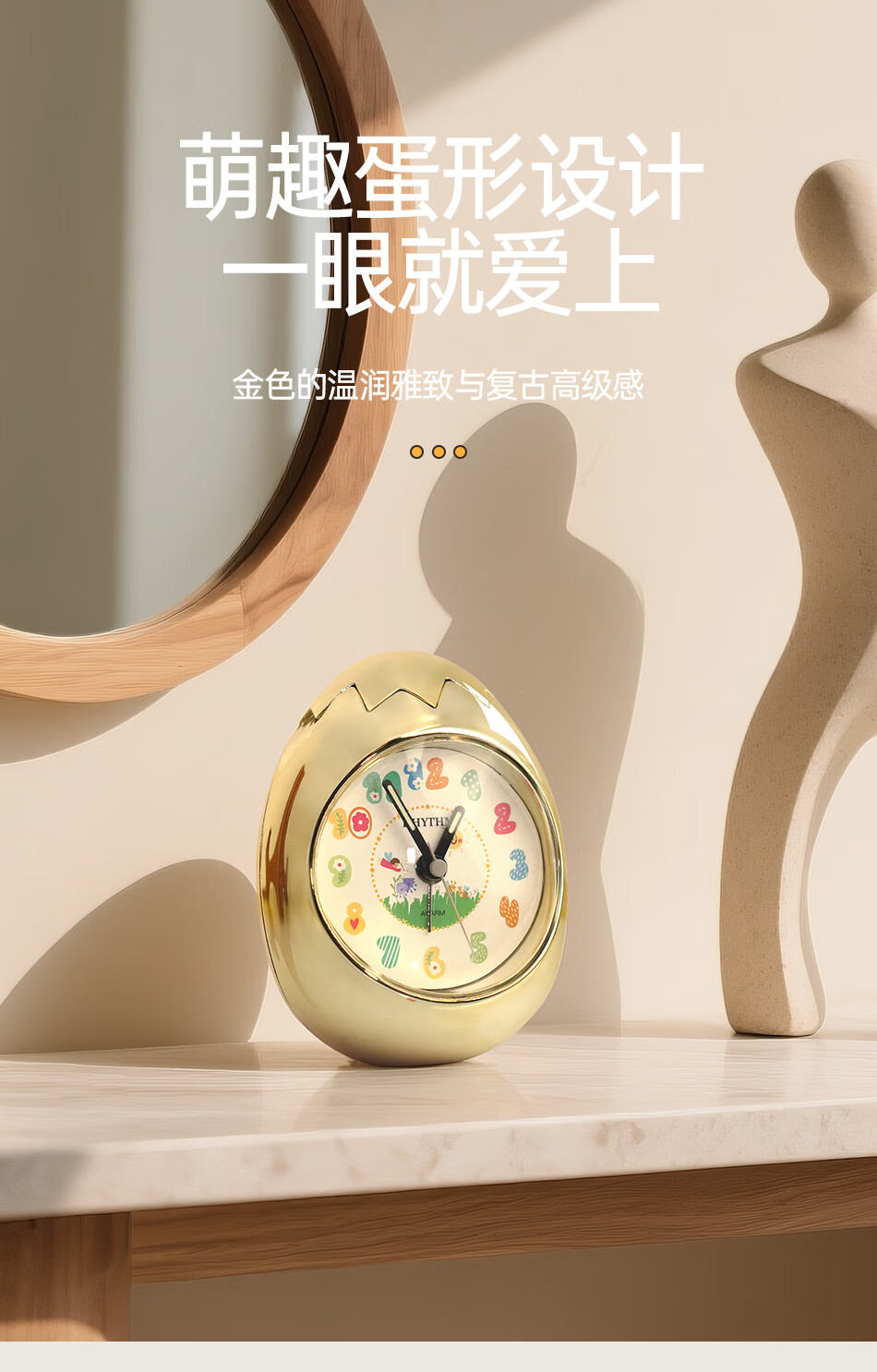 丽声(RHYTHM)日本创意不倒翁鸡蛋闹钟儿童学生卧室静音卡通超大音量起床床头钟可爱时钟贪睡叫醒 4RE886WP18金色