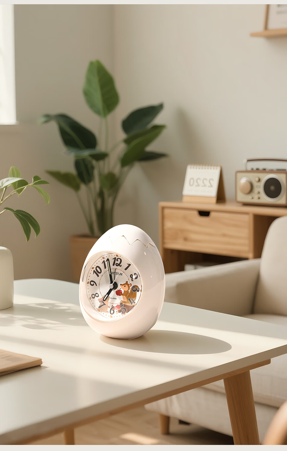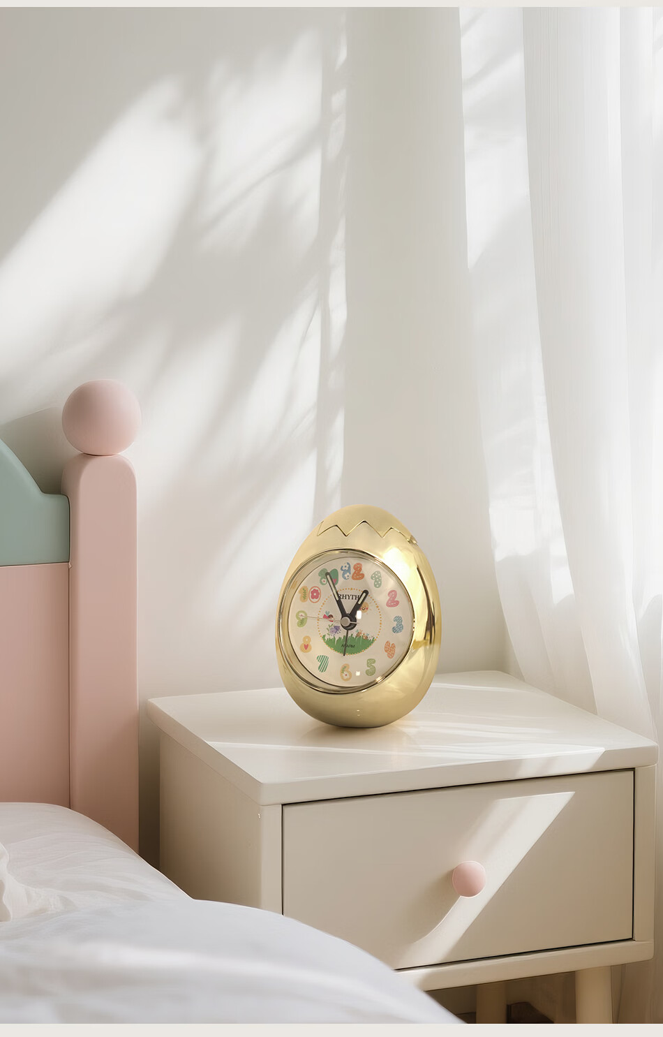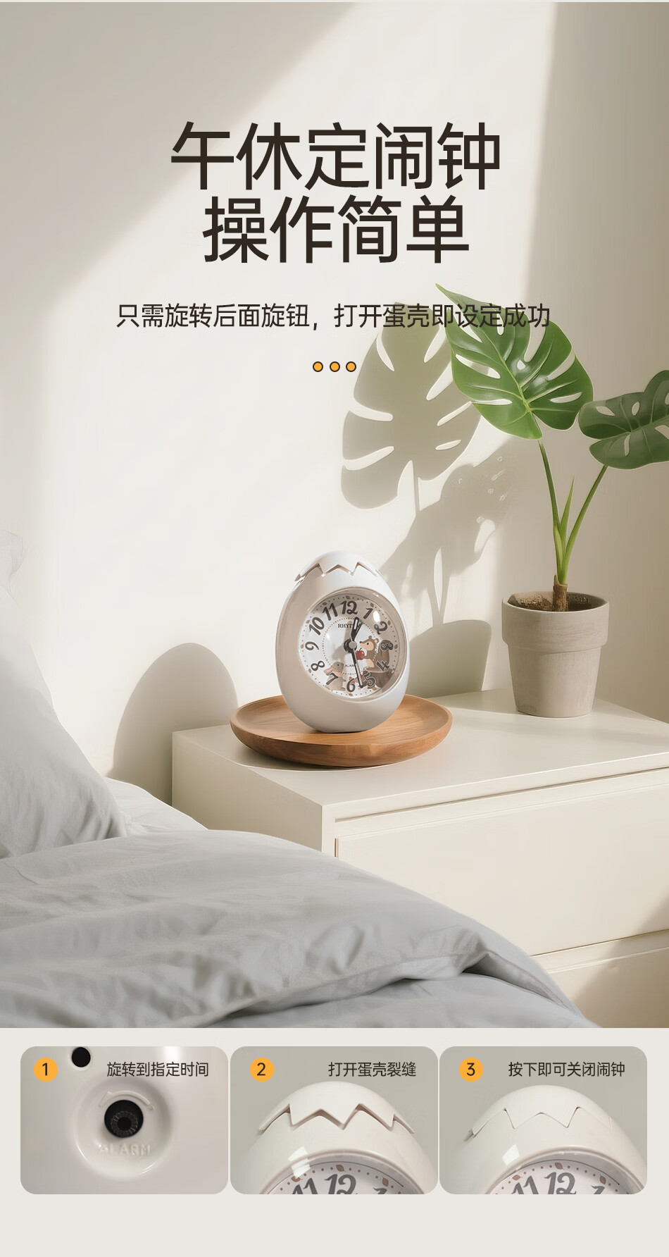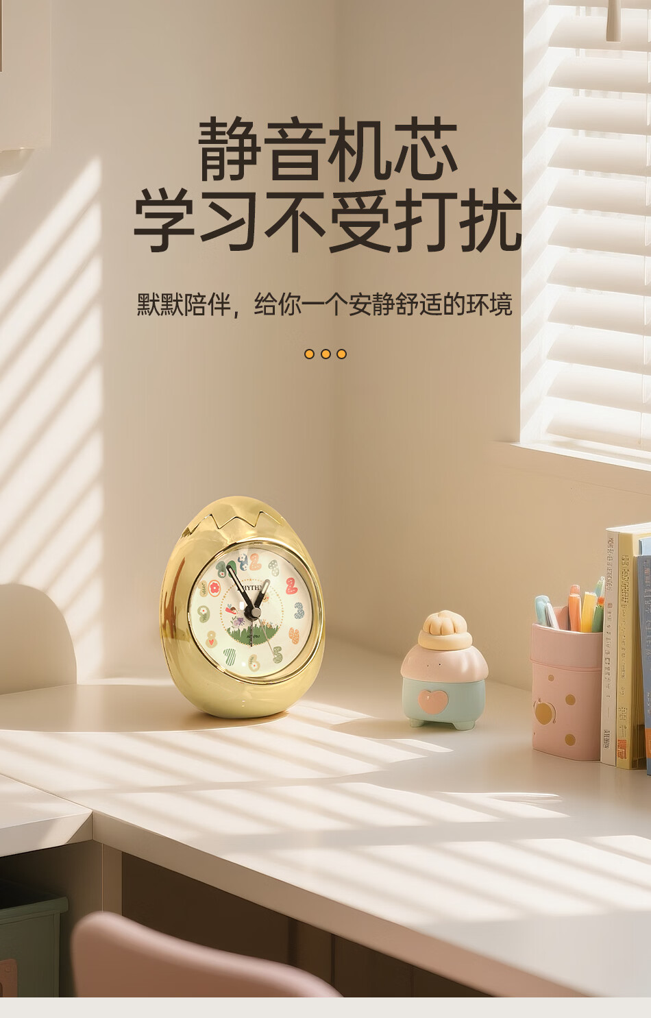 丽声(RHYTHM)日本创意不倒翁鸡蛋闹钟儿童学生卧室静音卡通超大音量起床床头钟可爱时钟贪睡叫醒 4RE886WP18金色