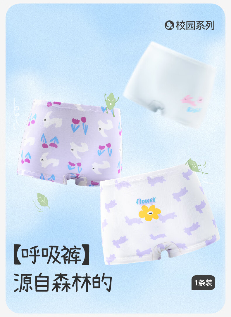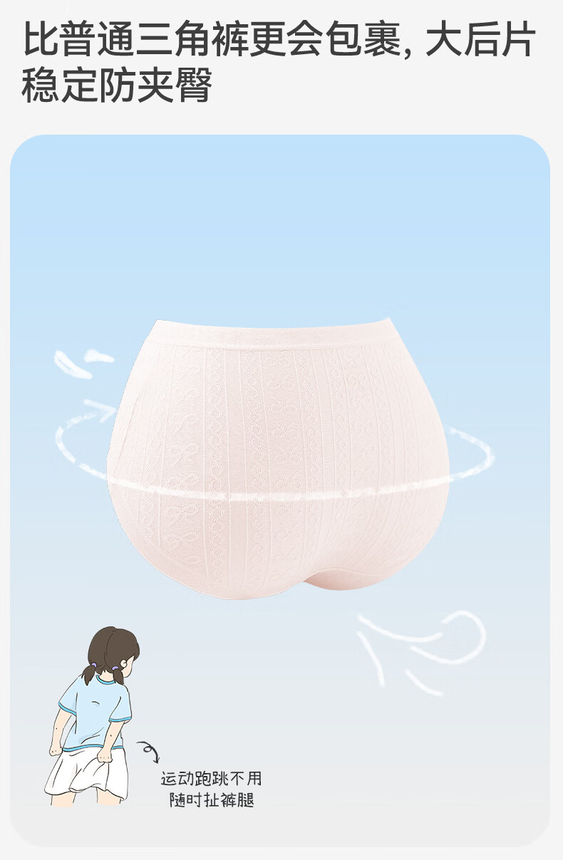 久岁伴儿童内裤女童平角裤薄款中大童6-12岁学生透气抑菌高弹三角裤3条 【小萌猫咪】三角/405027/3条 160 身高150-162体重90-105斤