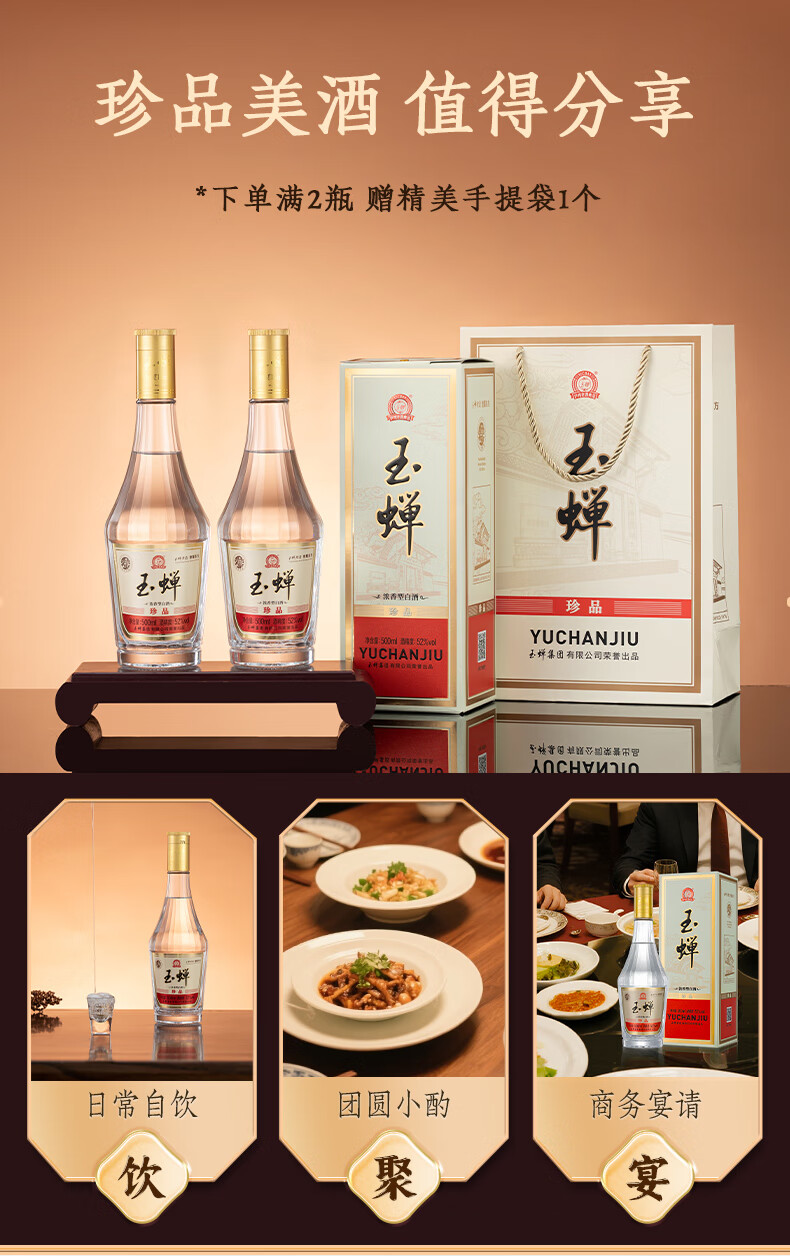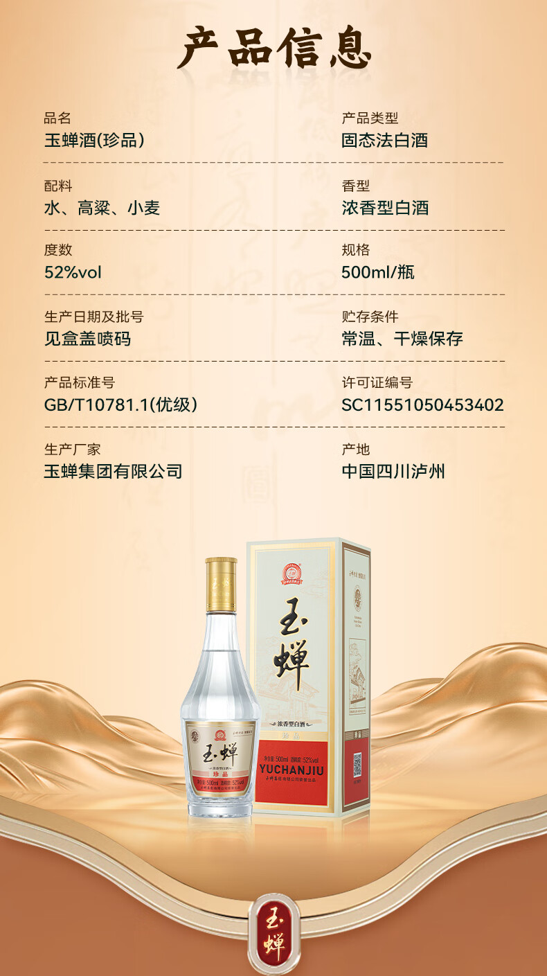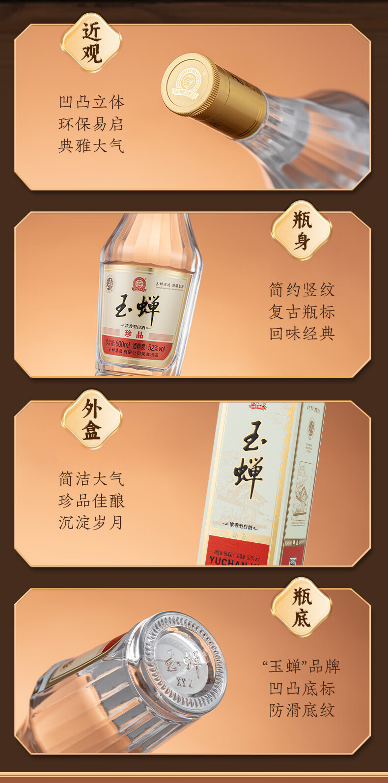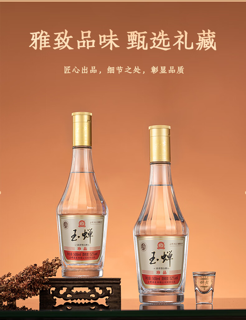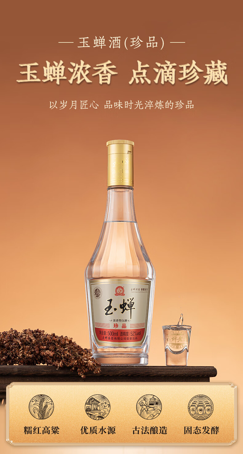 玉蝉老酒玉蝉珍品浓香型白酒52度礼盒500ml绵柔纯正口粮酒固态发酵 52度 500mL 6瓶 【新品】玉蝉珍品酒整箱