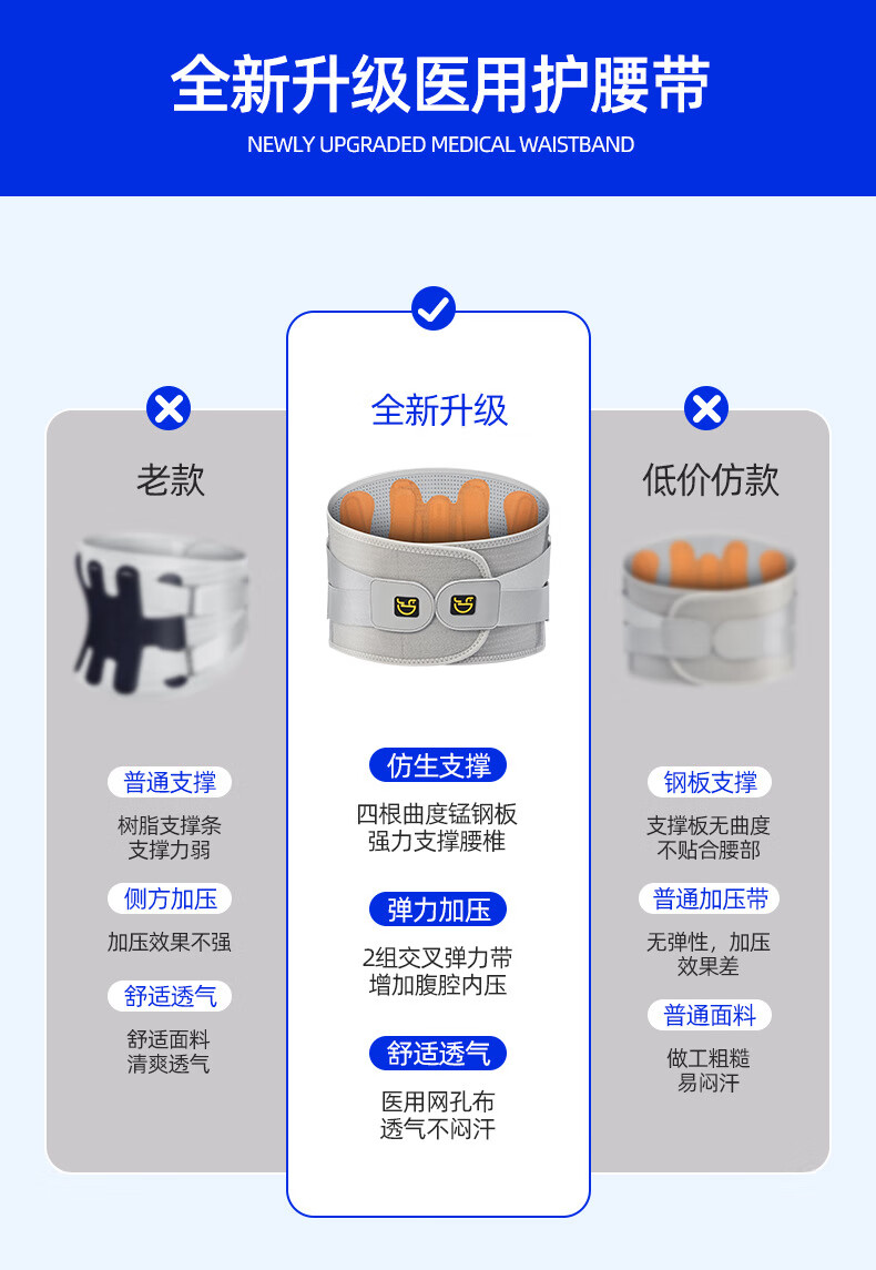 罗达菲医用护腰带护具腰托加宽腰椎损伤术后透气钢板支撑久坐护腰椎神器 XXL【腰围105-120CM 3.1-3.4尺】