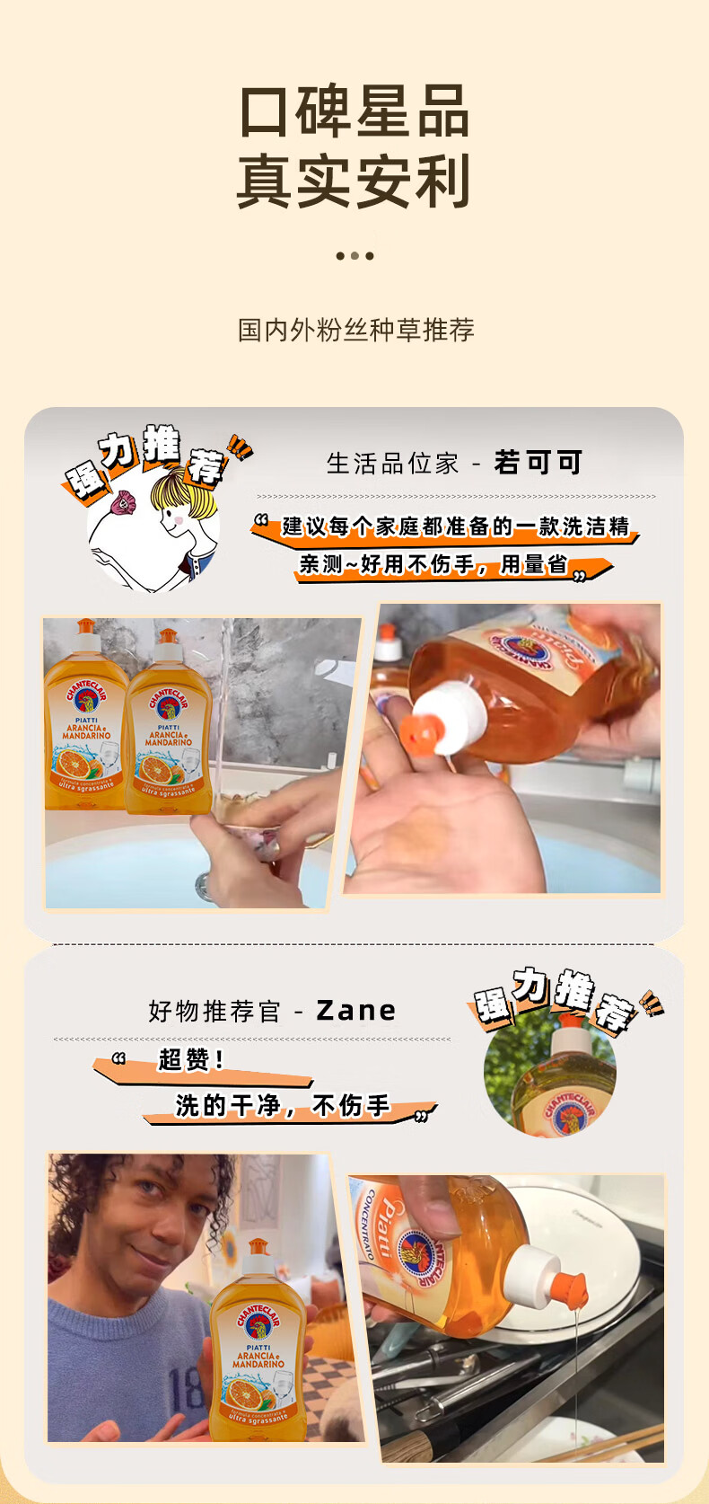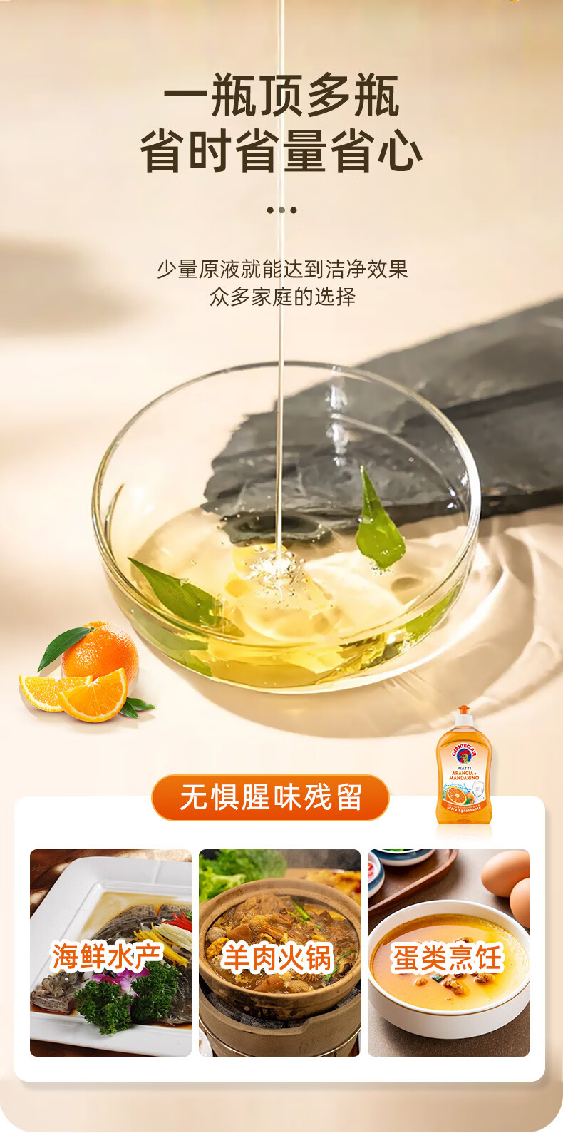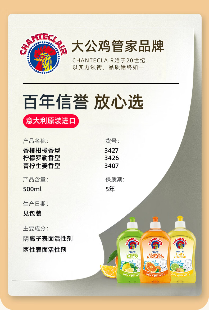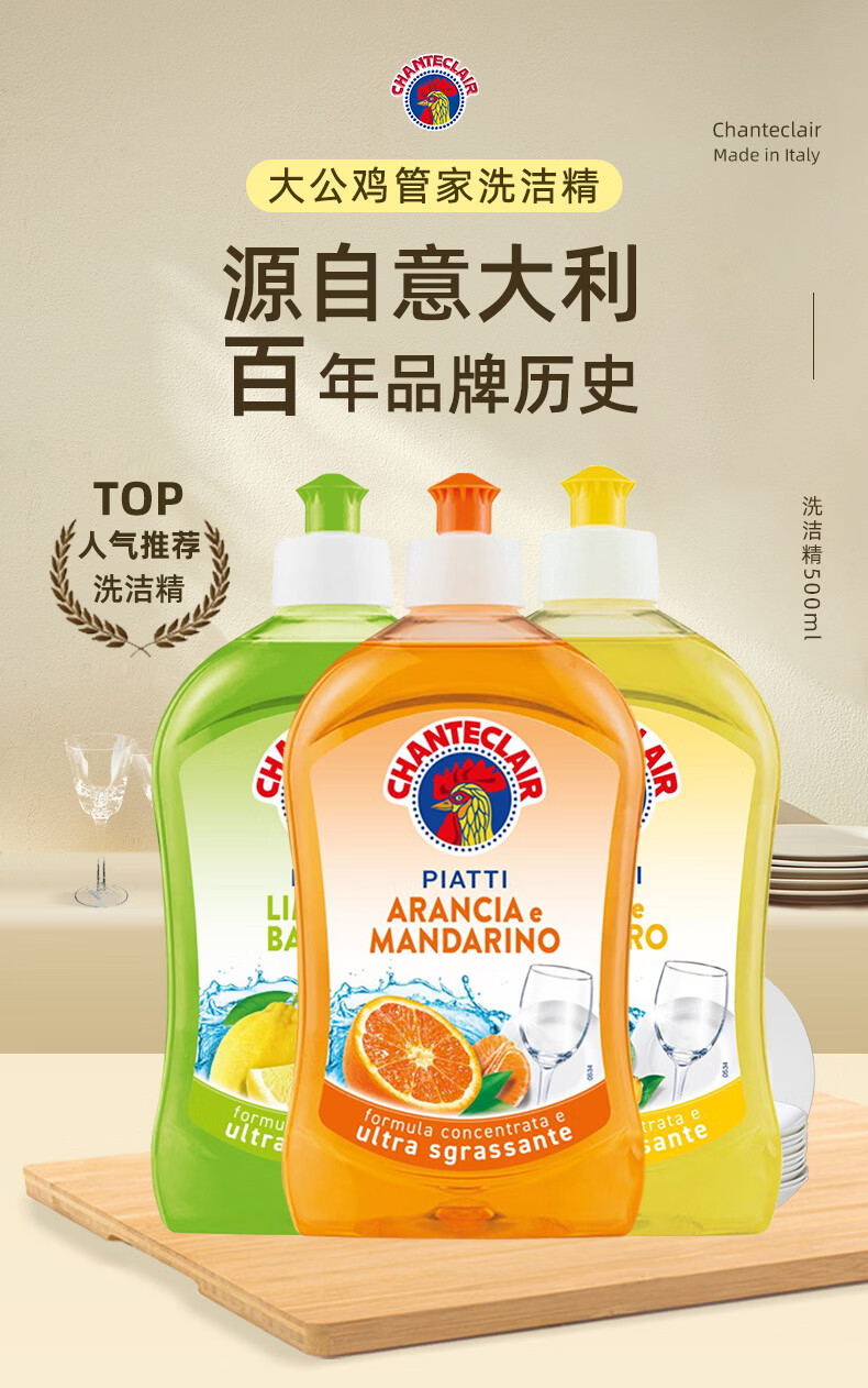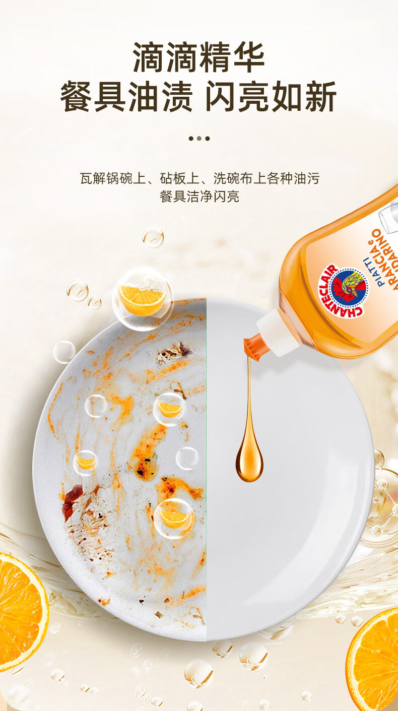 大公鸡管家(CHANTE CLAIR)食品级浓缩洗洁精 家用厨房果蔬洗洁精 餐具洗碗液 香橙+柠檬