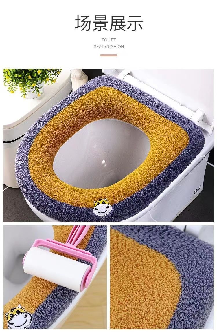 马桶垫坐垫家用加厚马桶圈坐便器垫子冬季防水防臭坐便套 【3条装】提手加厚【颜色随机】