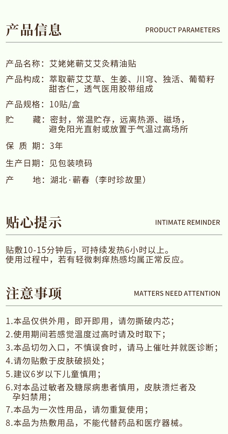 艾姥姥艾灸贴蕲艾精油贴蒸汽热敷颈椎温灸护腰颈椎肩周膝盖关节发热保暖 正宗蕲艾精油贴10贴/盒*10盒