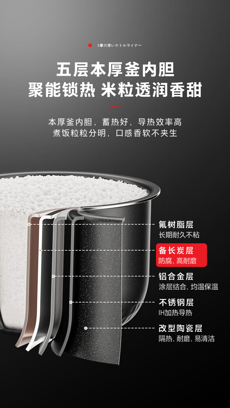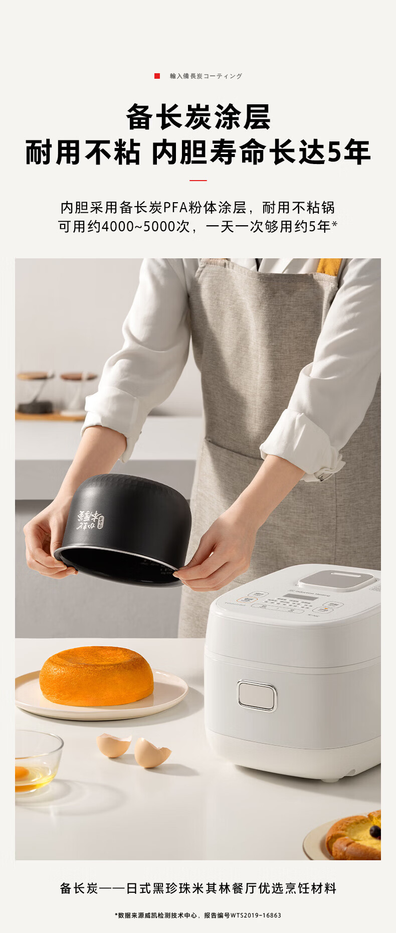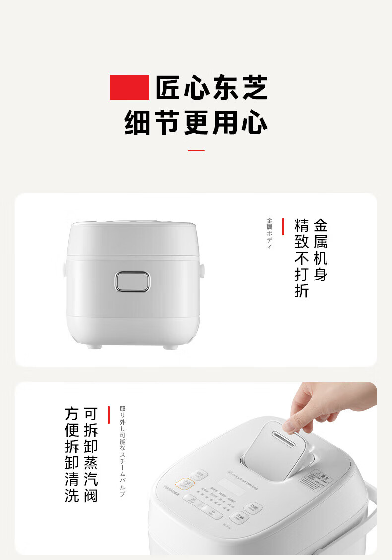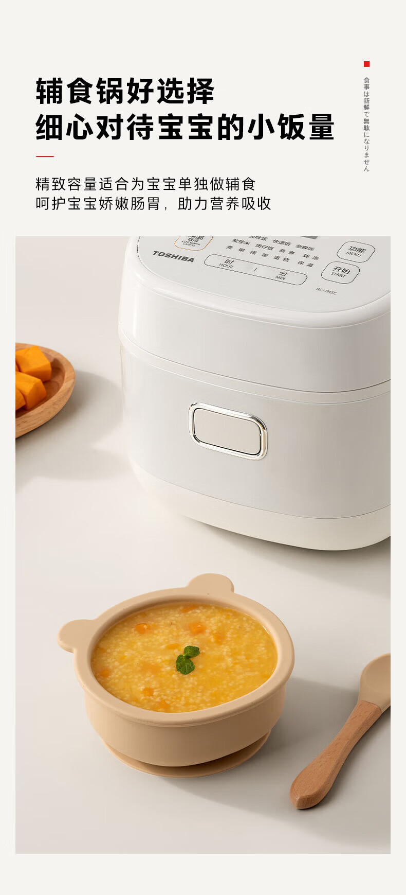 东芝(TOSHIBA)电饭煲小型电饭锅迷你家用备长炭涂层智能预约宝辅食低糖不锈钢原装1.6升1-2人食日本进口国家补贴 RC-5MFMC 1.6L