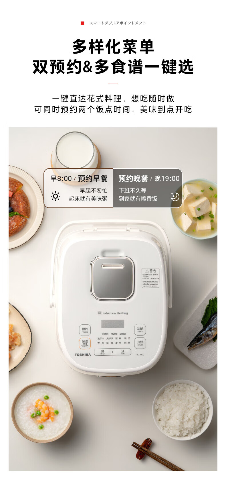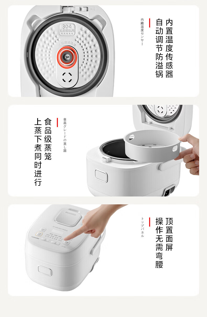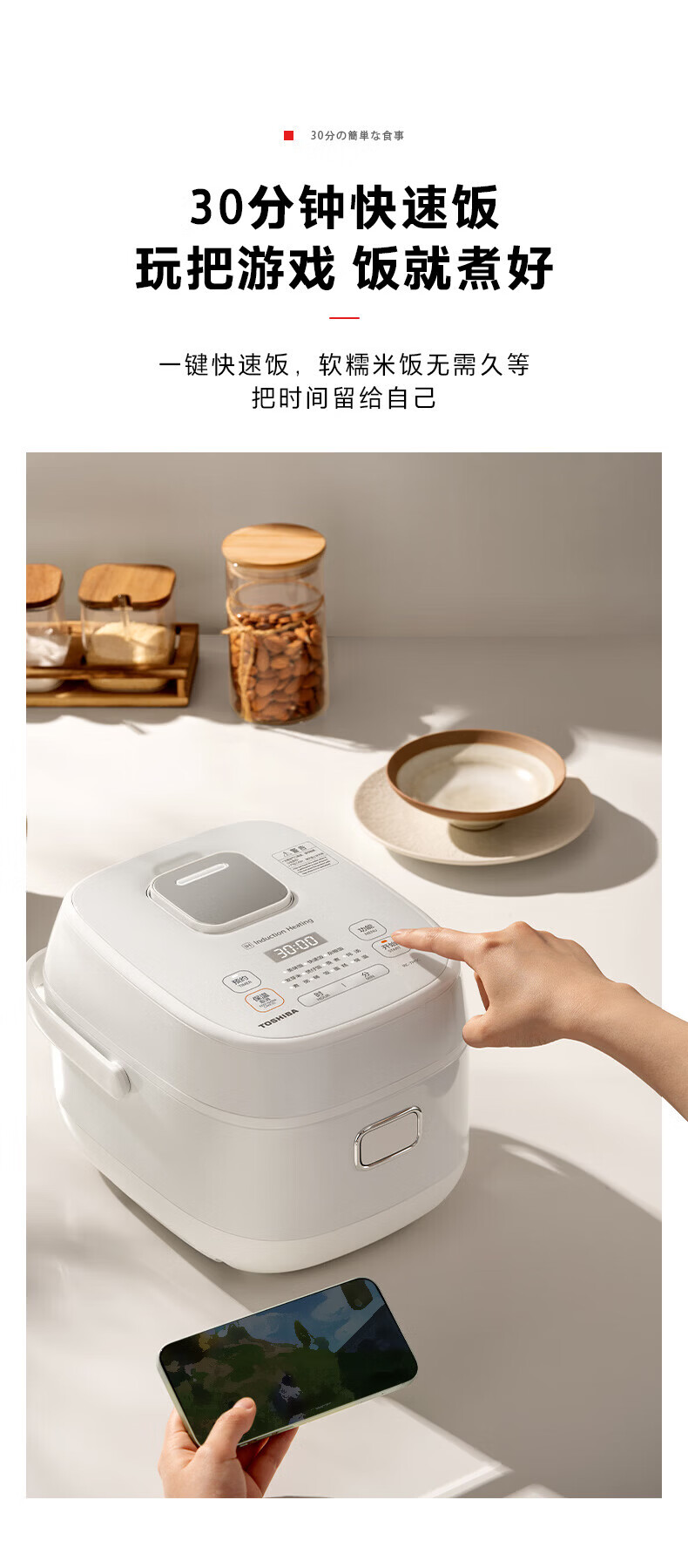东芝(TOSHIBA)电饭煲小型电饭锅迷你家用备长炭涂层智能预约宝辅食低糖不锈钢原装1.6升1-2人食日本进口国家补贴 RC-5MFMC 1.6L