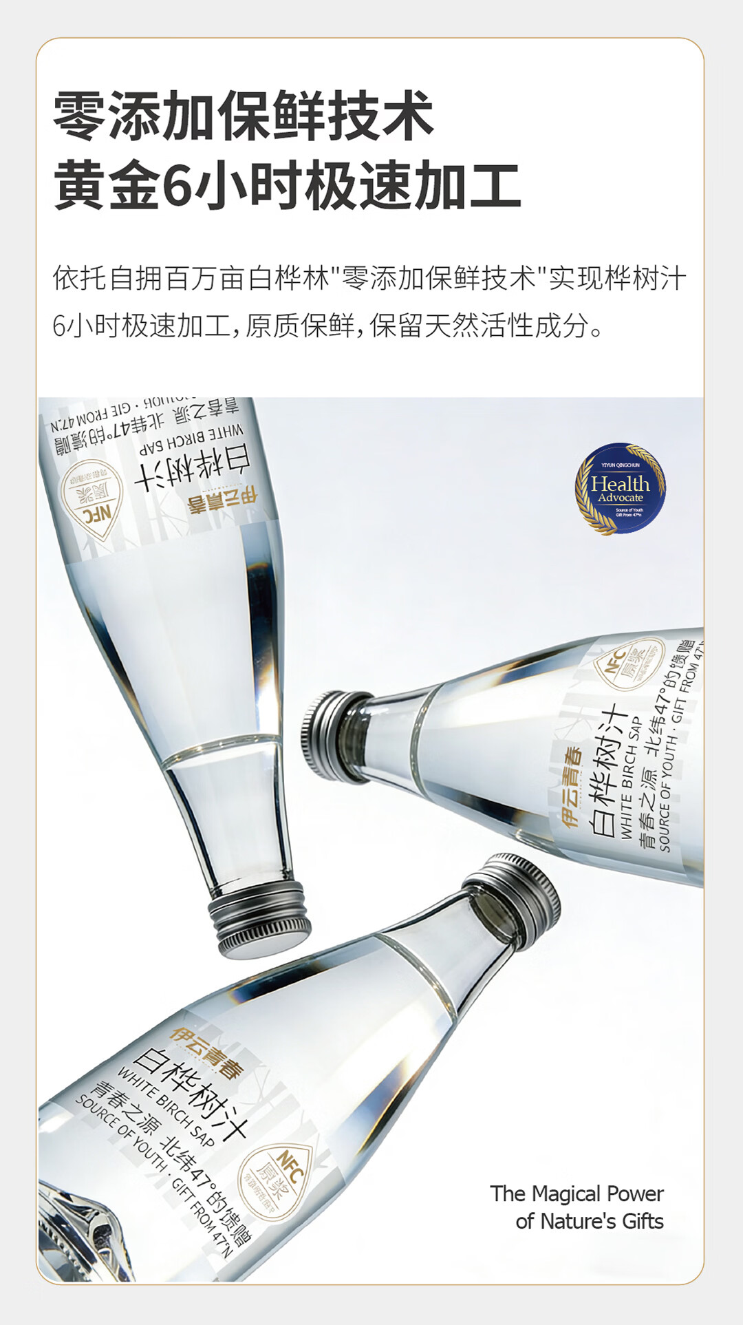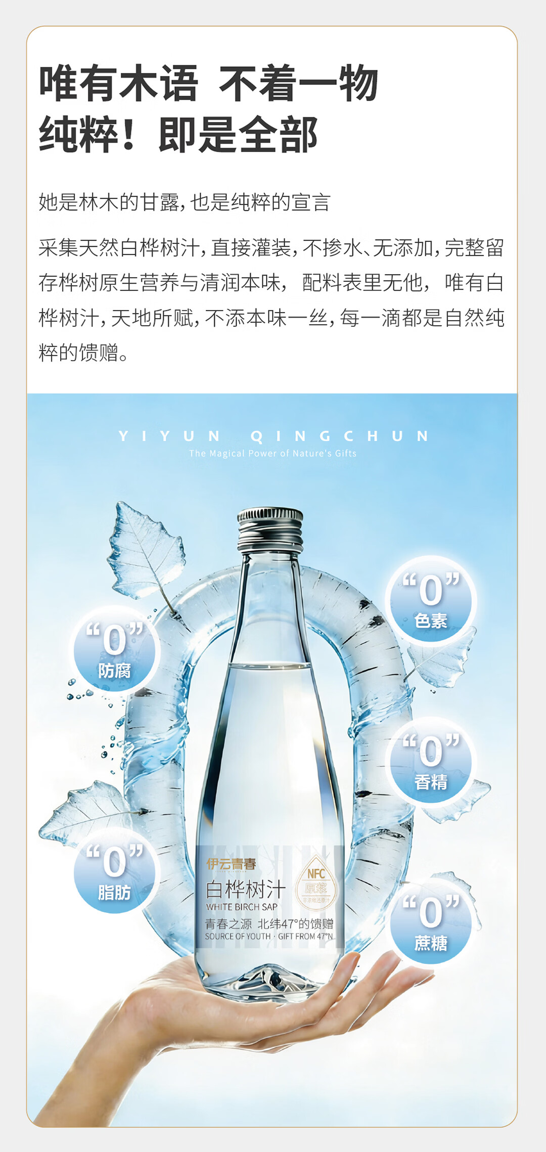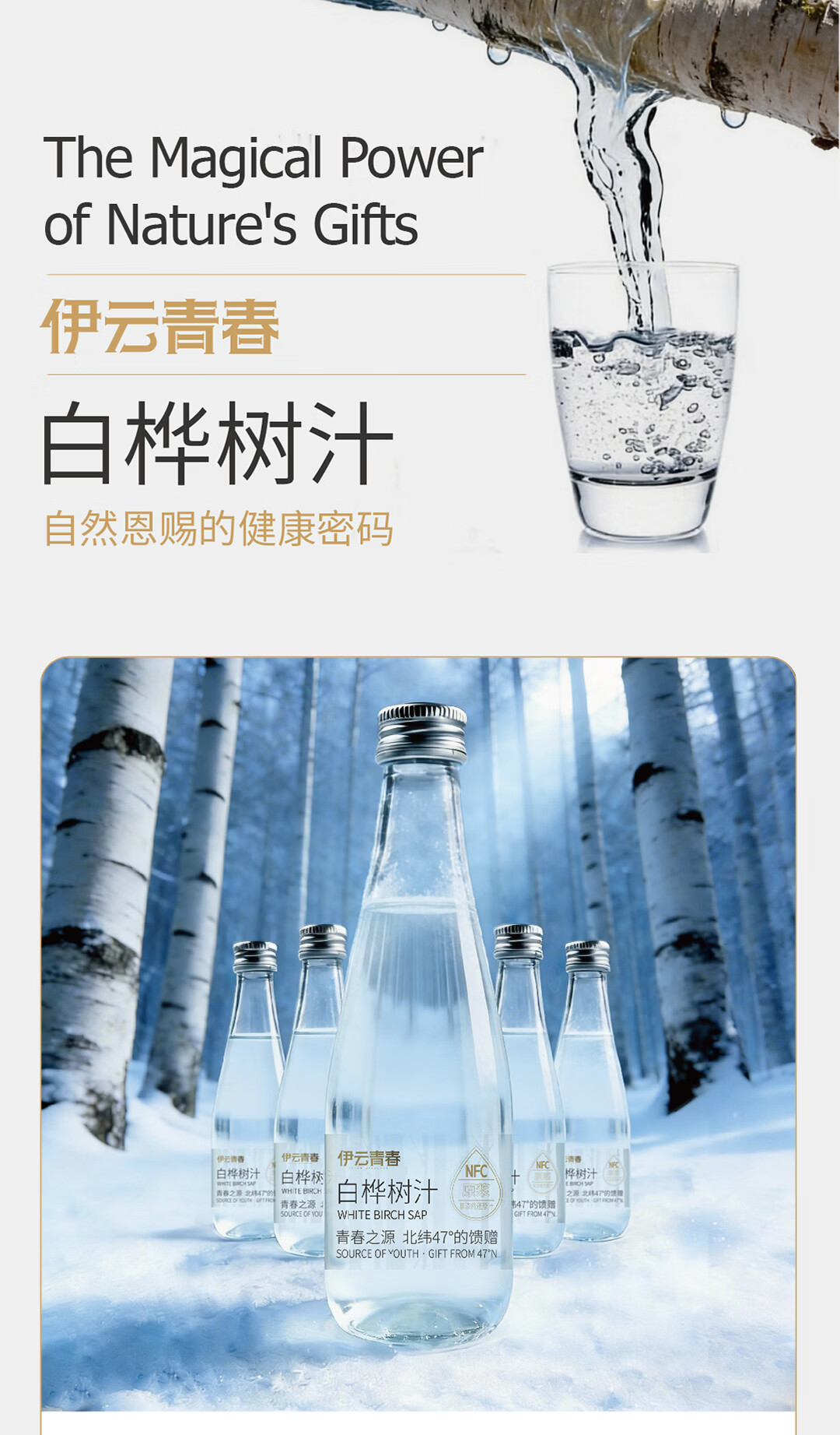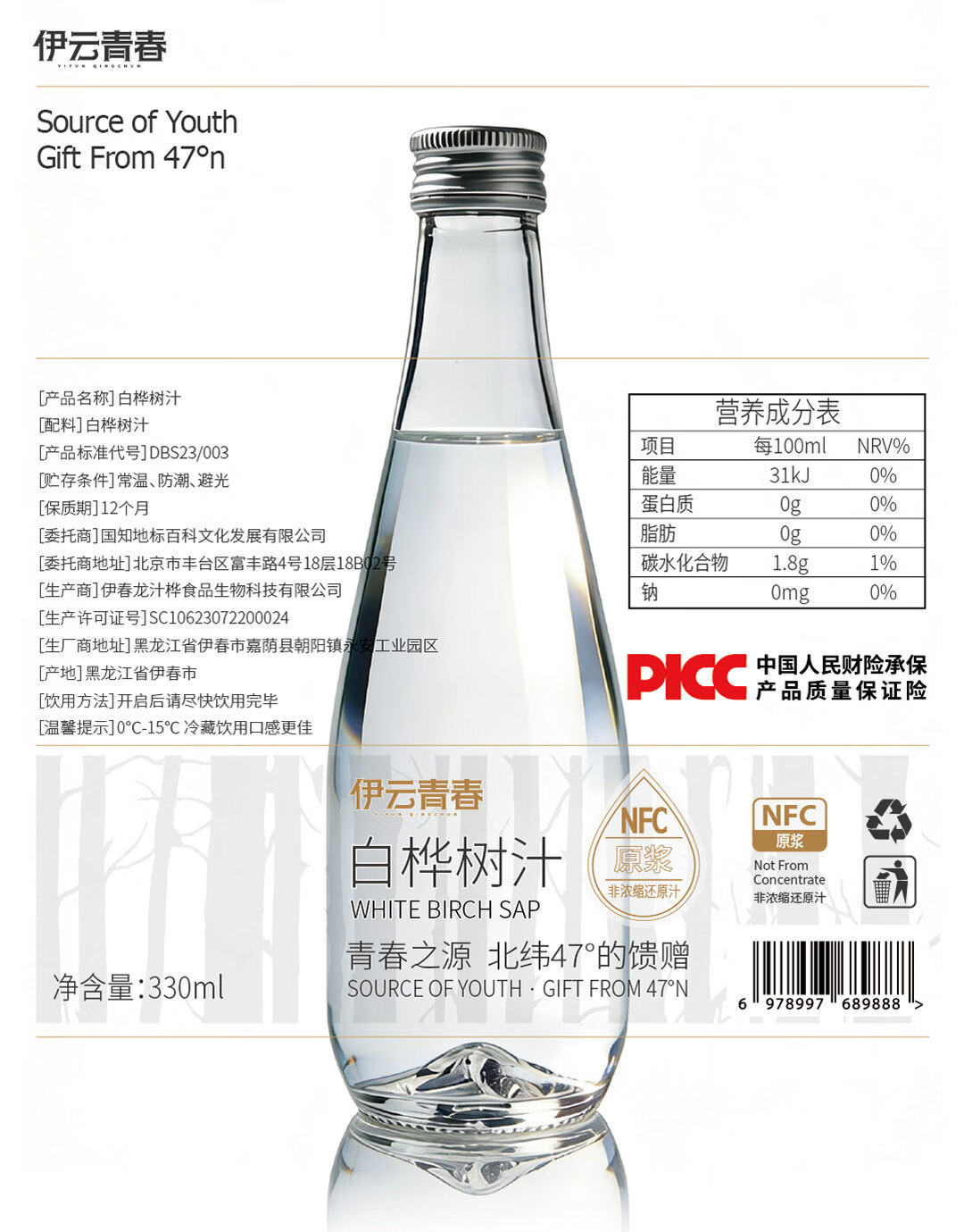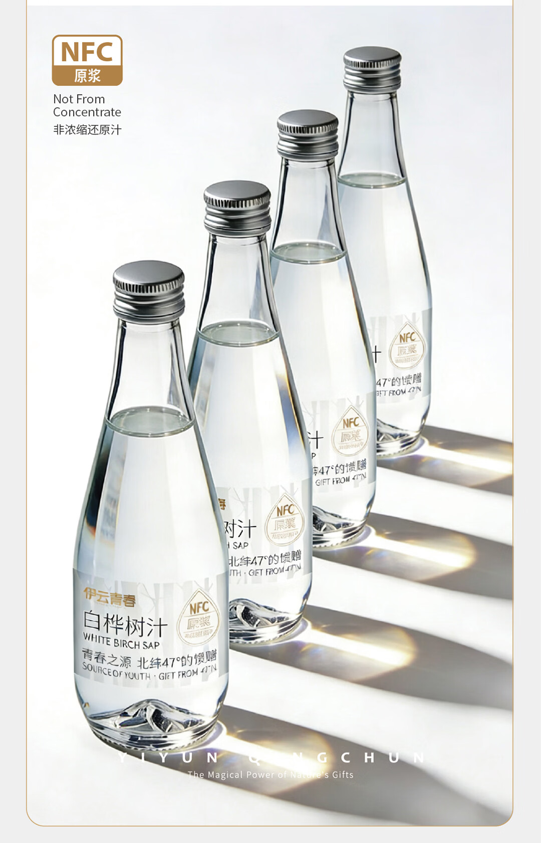 【地标甄选】伊云青春小兴安岭白桦树汁NFC100%原汁330ml*6瓶 白桦树汁330ml*24瓶
