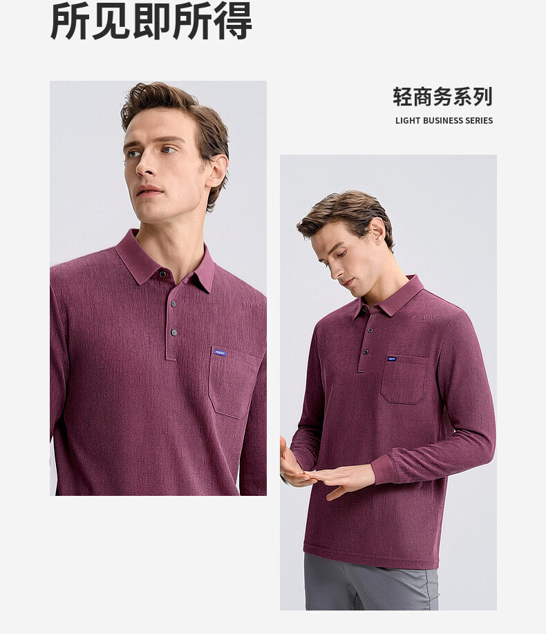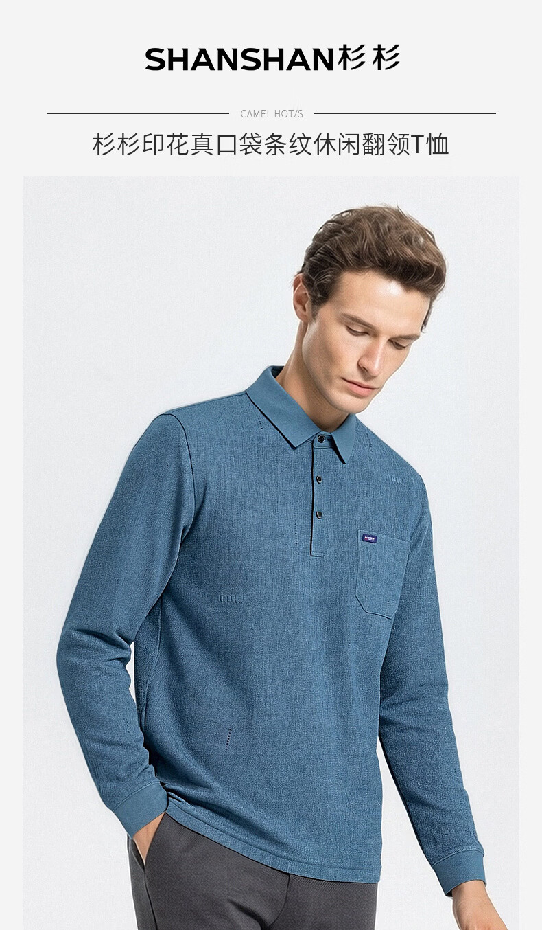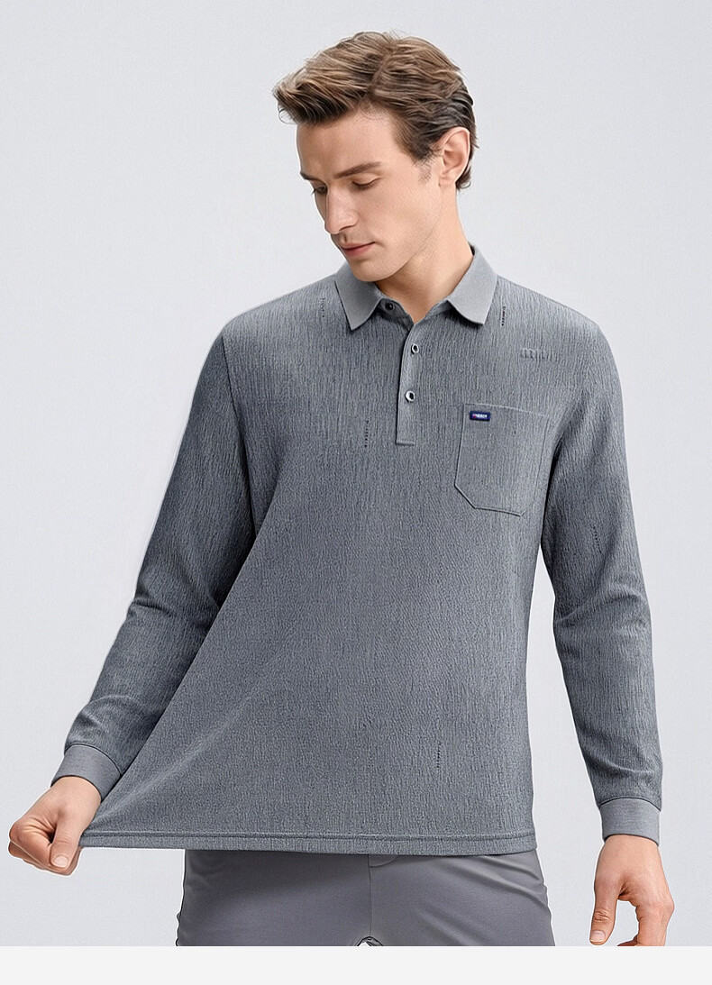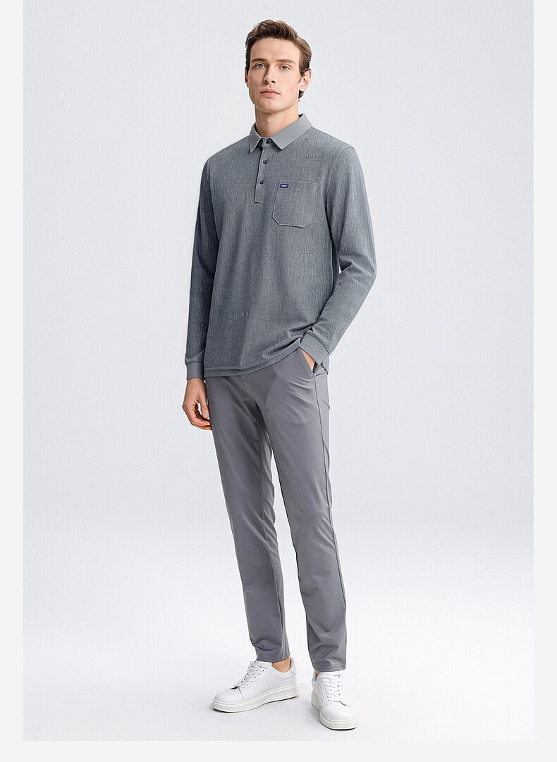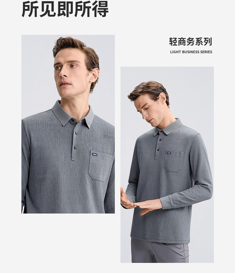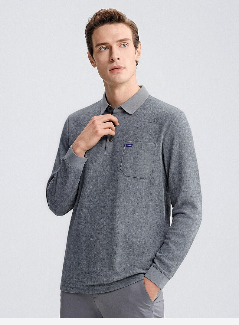 SHANSHAN杉杉T恤男春秋新款纯色商务长袖Polo衫男士通勤打底衣 灰色 L /175