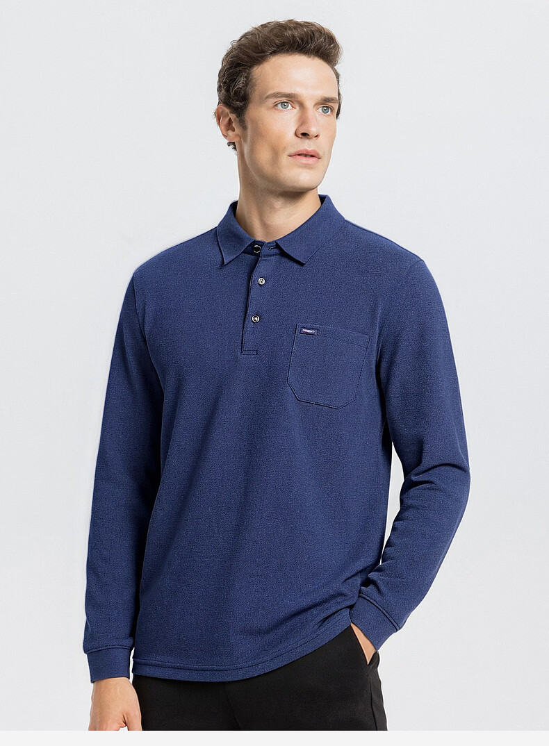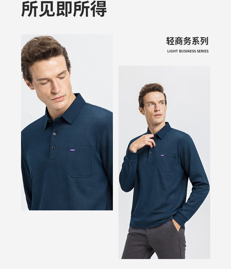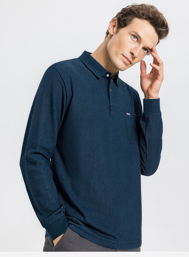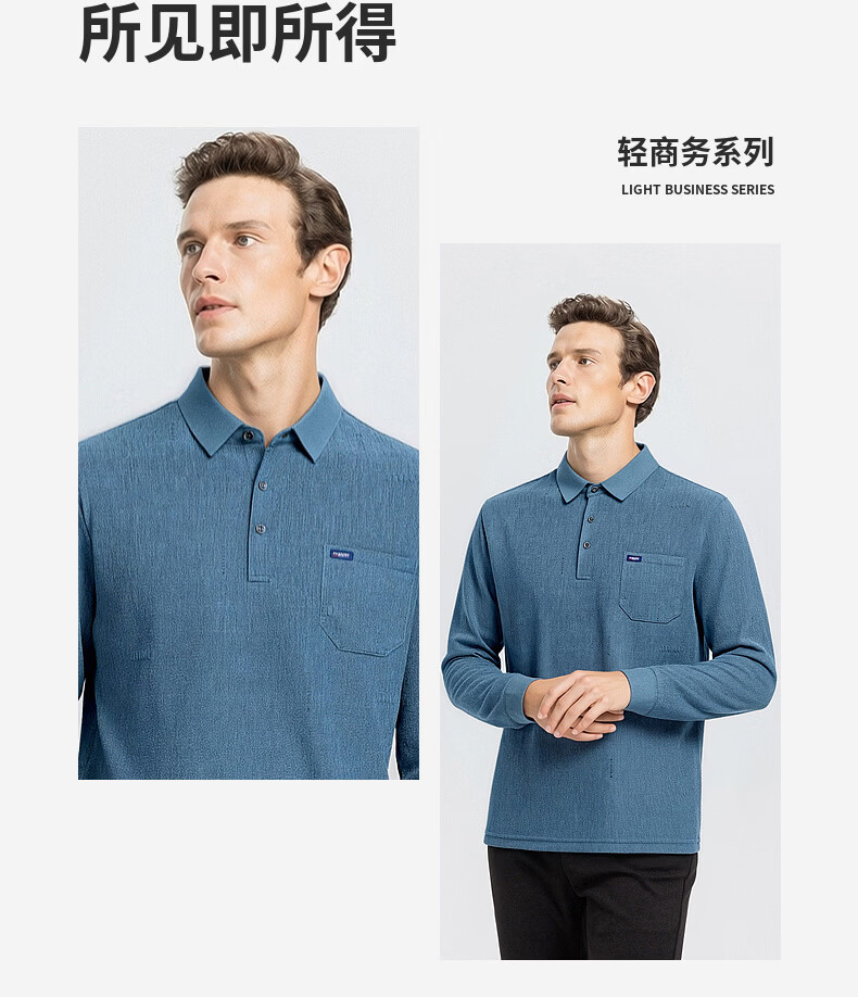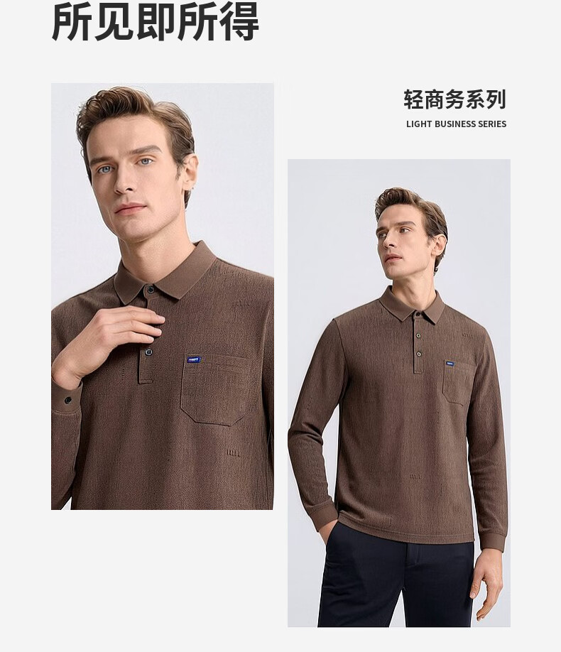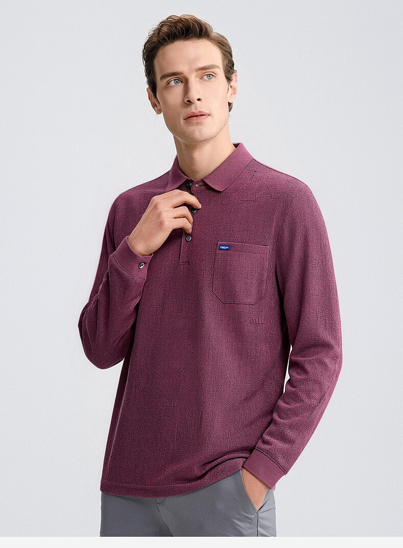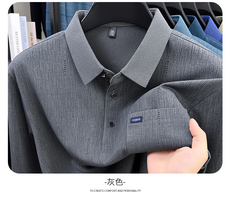 SHANSHAN杉杉T恤男春秋新款纯色商务长袖Polo衫男士通勤打底衣 灰色 L /175