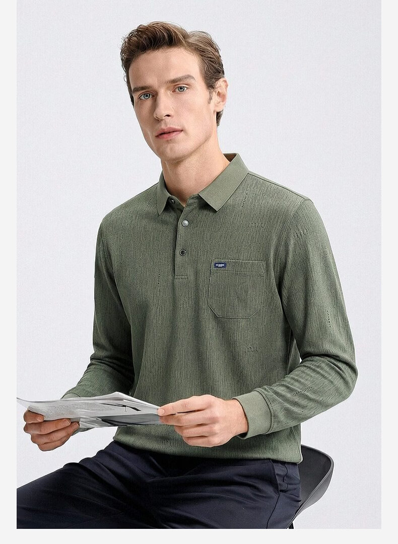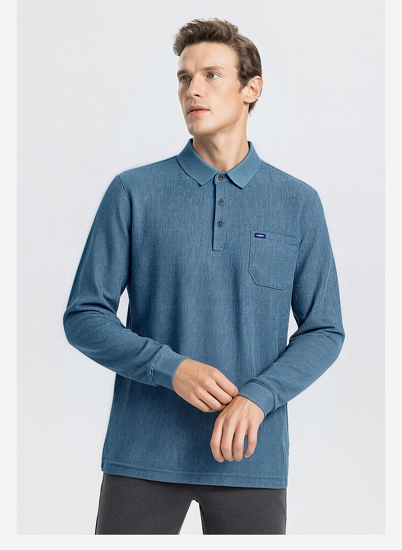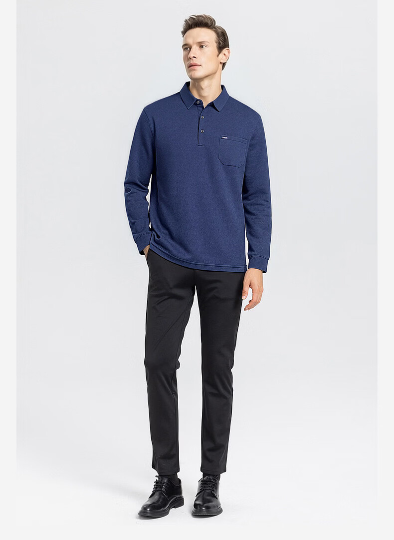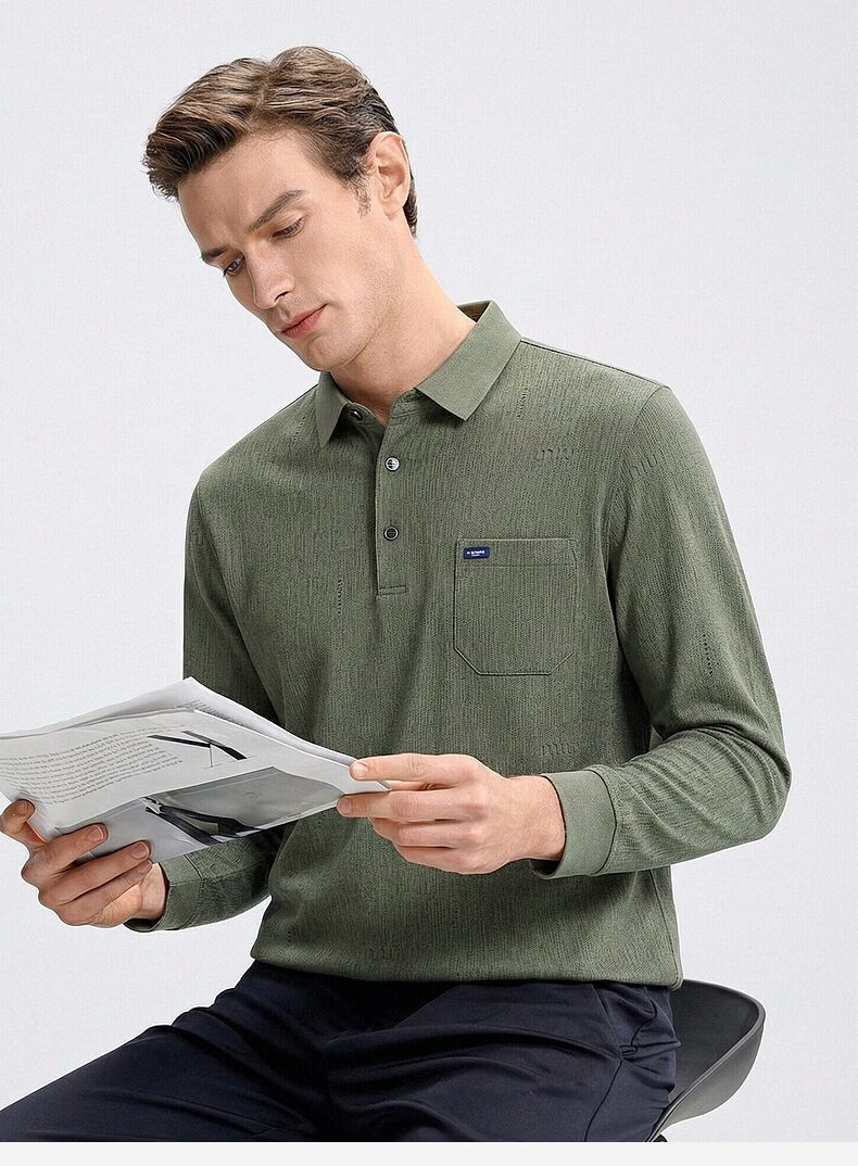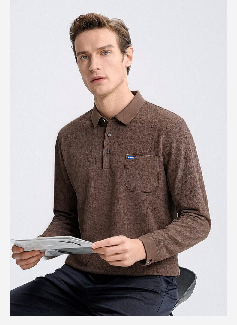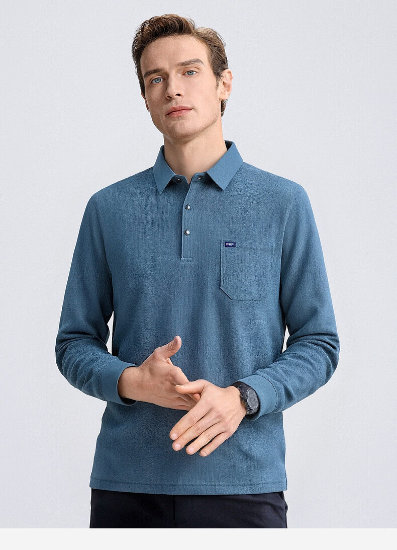 SHANSHAN杉杉T恤男春秋新款纯色商务长袖Polo衫男士通勤打底衣 灰色 L /175