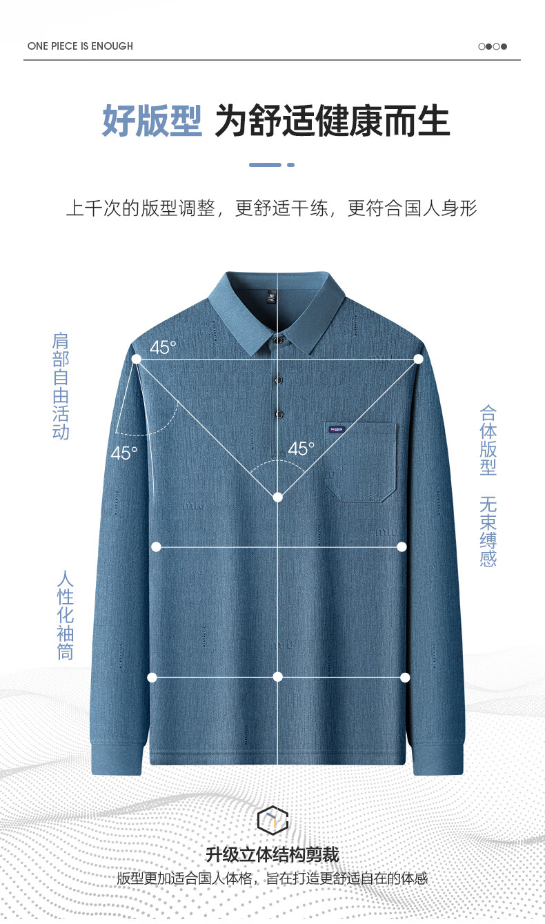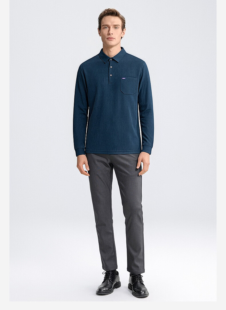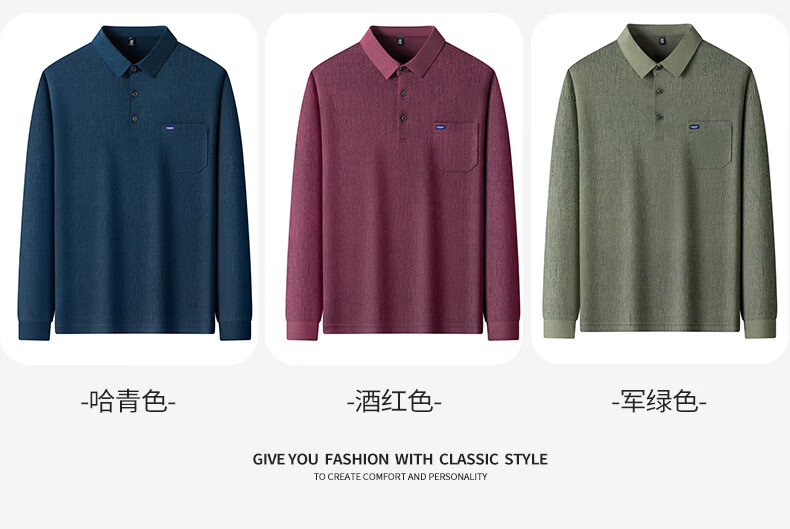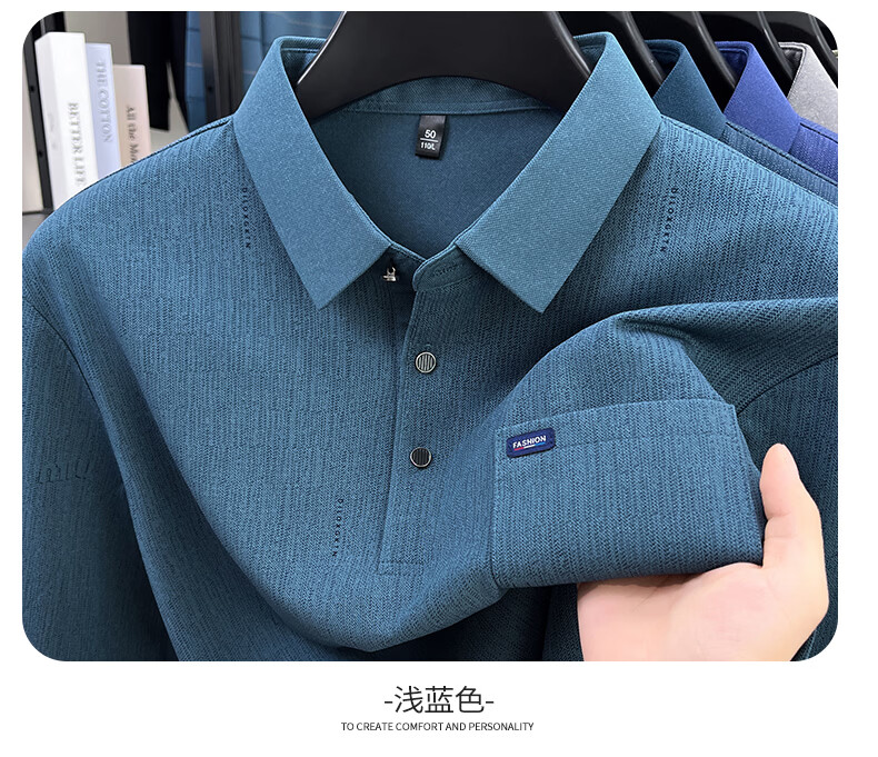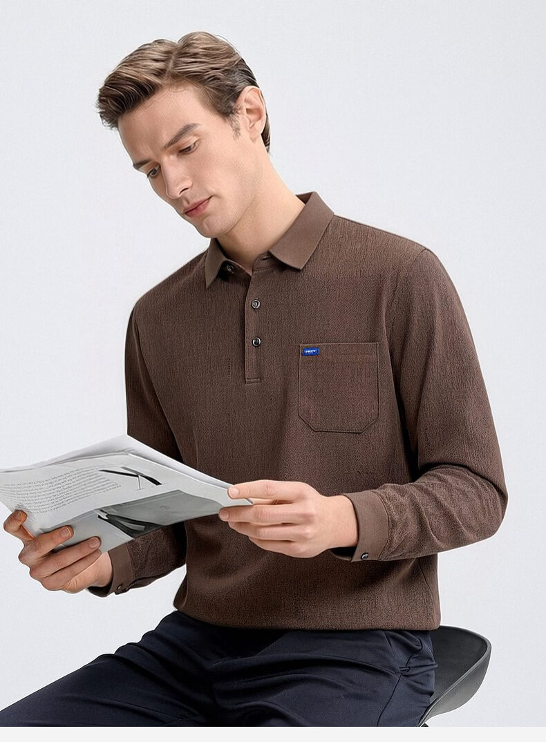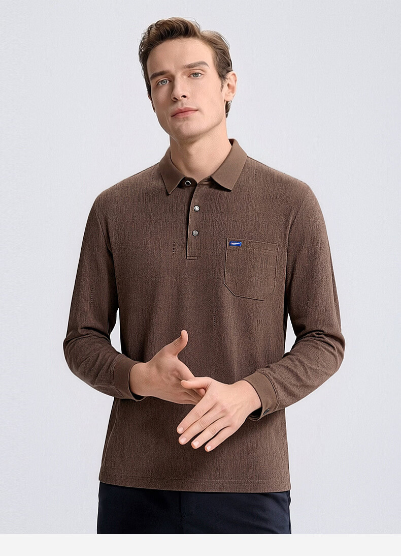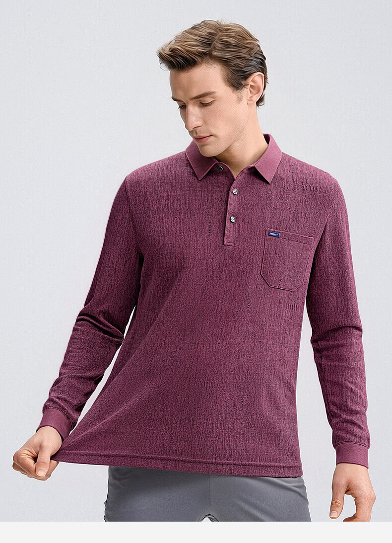 SHANSHAN杉杉T恤男春秋新款纯色商务长袖Polo衫男士通勤打底衣 灰色 L /175