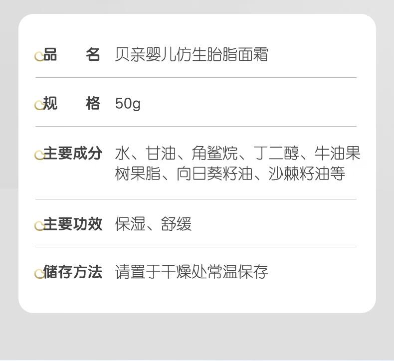 贝亲婴儿面霜 四季保湿补水 精华舒缓干燥宝宝润肤霜 敏感肌可用 面霜50g