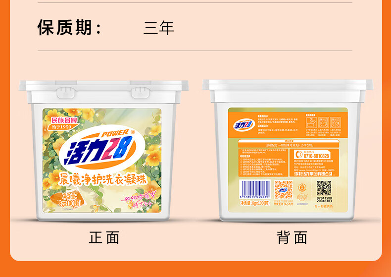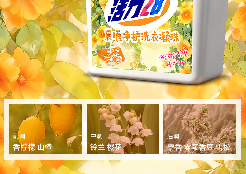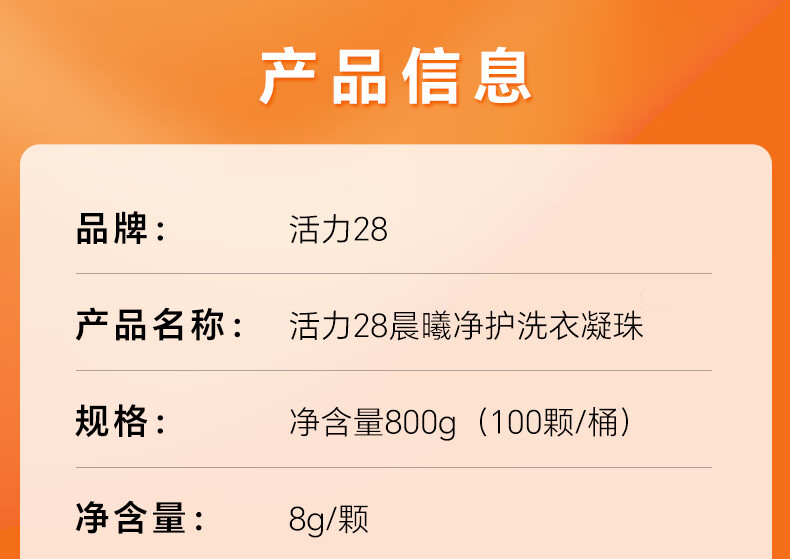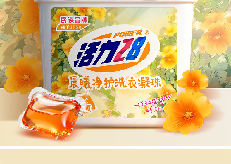活力28晨曦净护洗衣凝珠100颗 阳光花香 99.9%除菌浓缩洗衣液持久留香