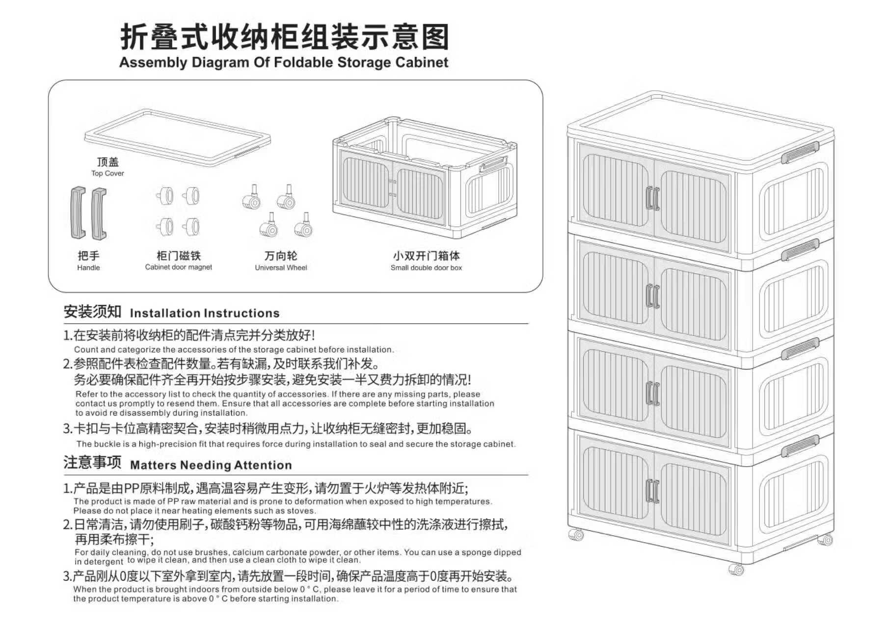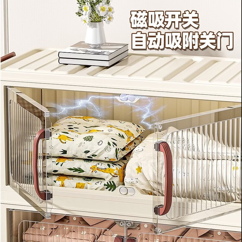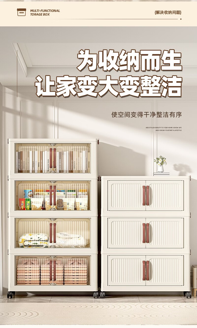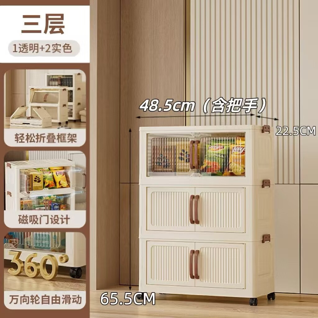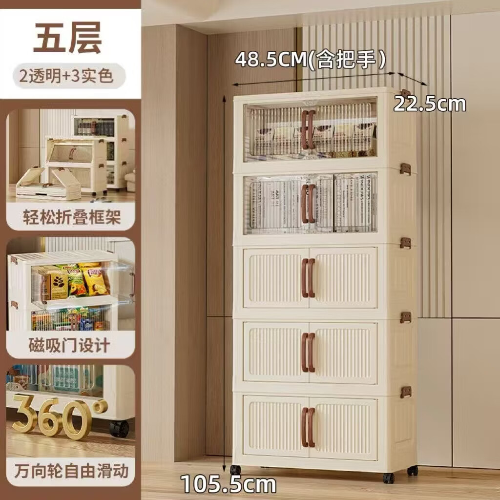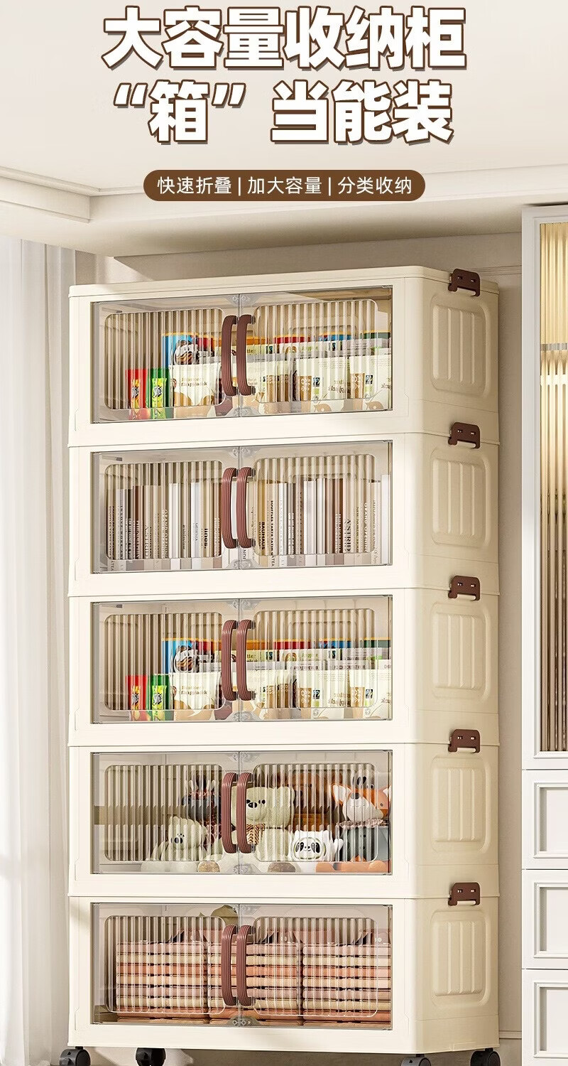 免安装折叠收纳柜衣柜多层储物柜零食柜箱塑料整理柜 颜色随机款48CM面宽-1层无轮