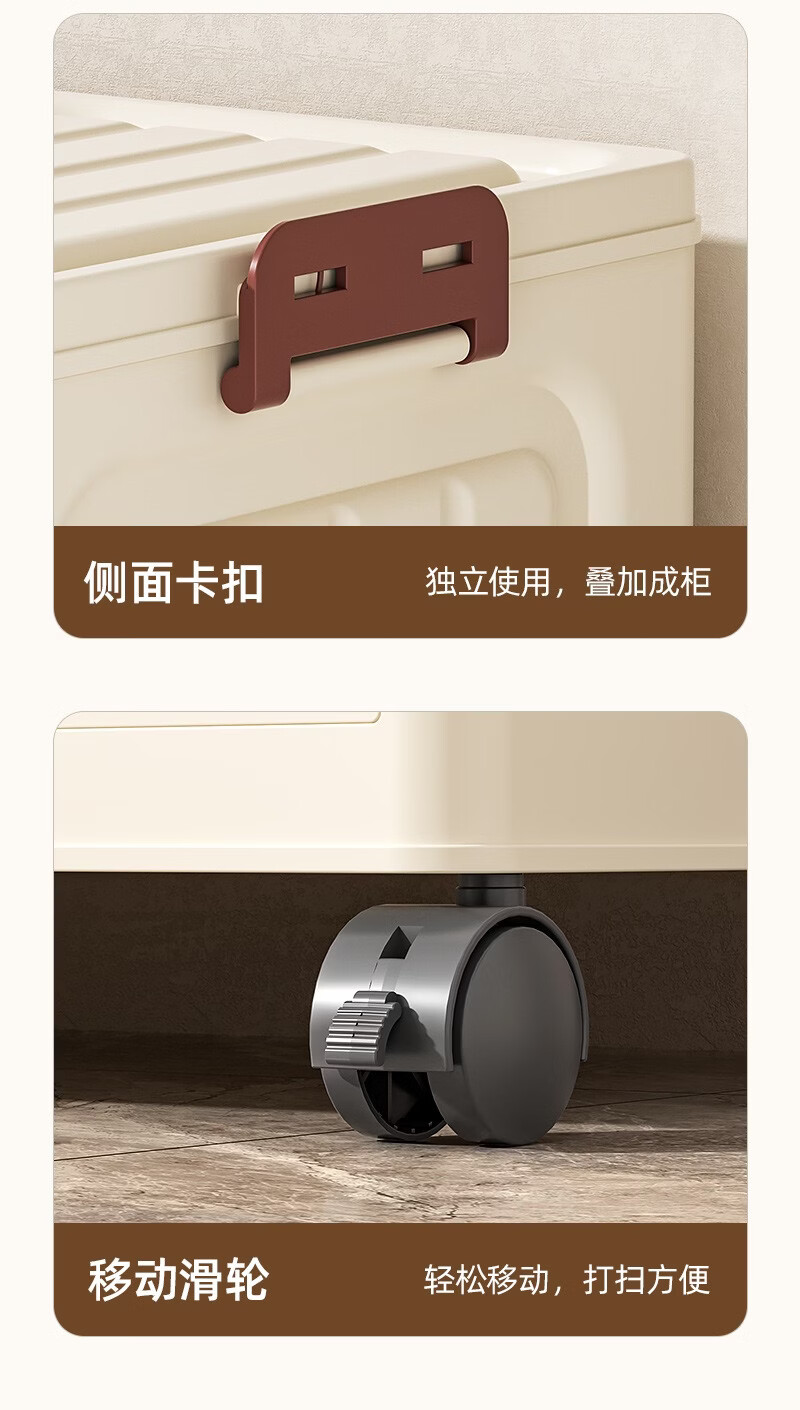 【加大加厚】收纳柜家用带盖塑料杂物盒子长方形收纳筐储物整理柜 奶油色 中号【22*16*12cm】 带提手