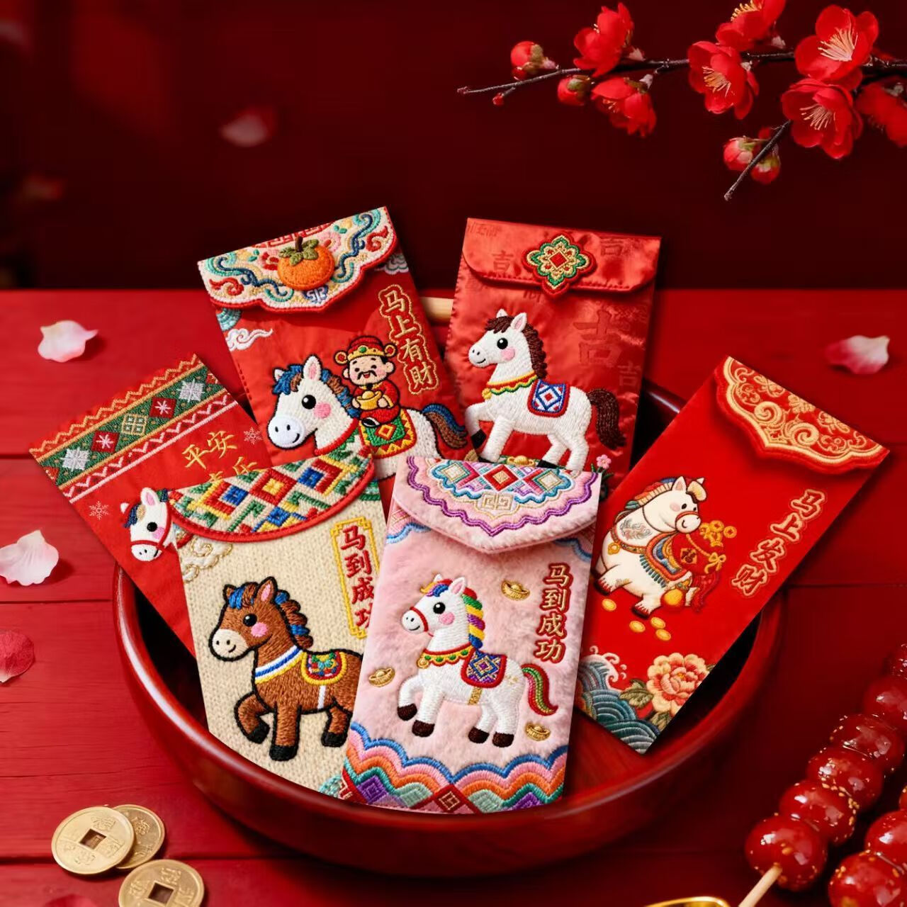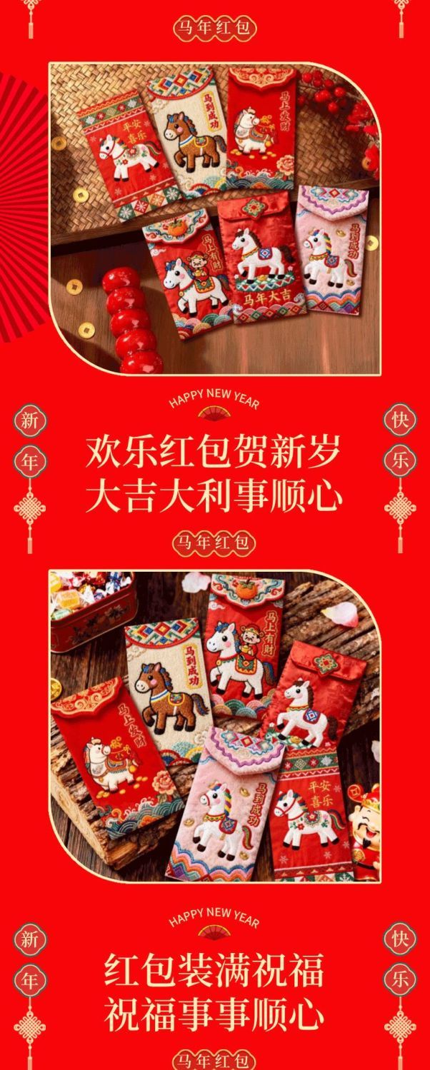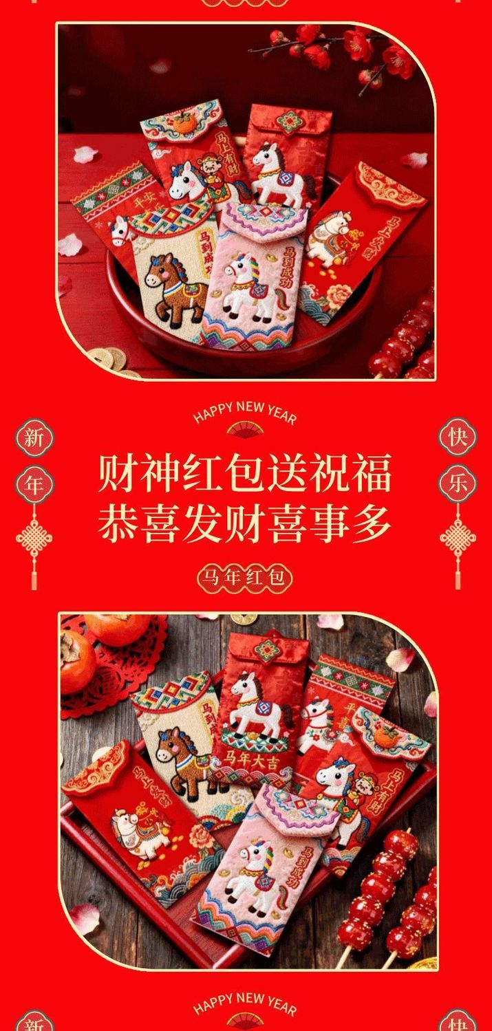 「2026爆款」马年5D立体打印小马日杂小件刺绣春节红包高颜值红包 马到成功红包【6个混装】一包