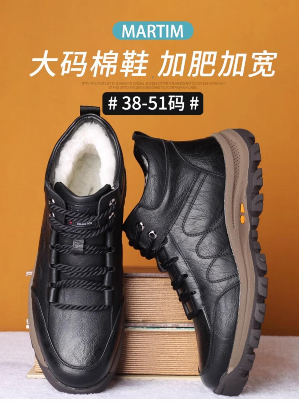 稻草人(MEXICAN)大码男鞋子46冬季雪地靴47皮毛一体皮鞋48男士加大加厚保暖棉鞋49 7025棕色【加厚一脚蹬】 41