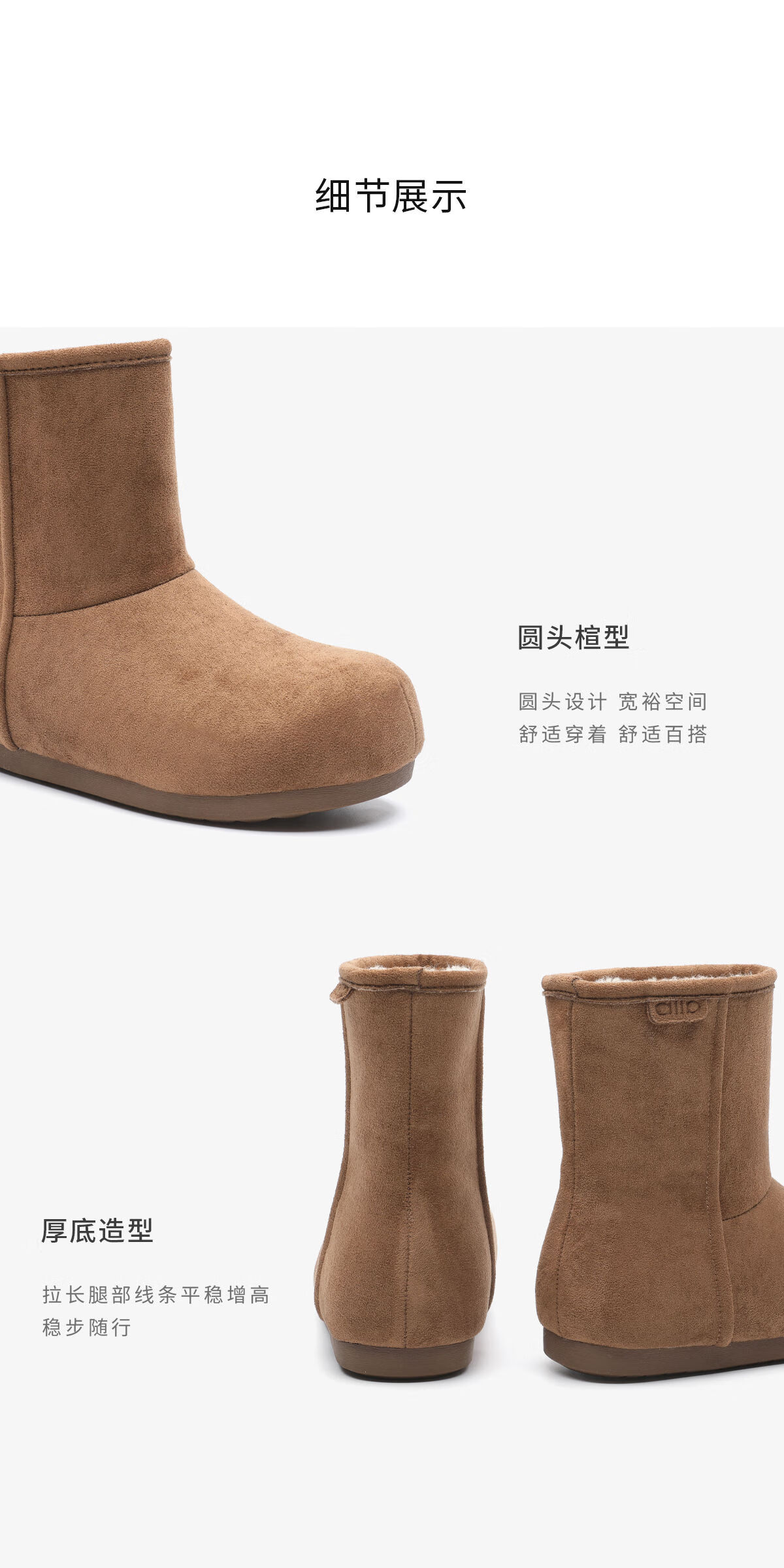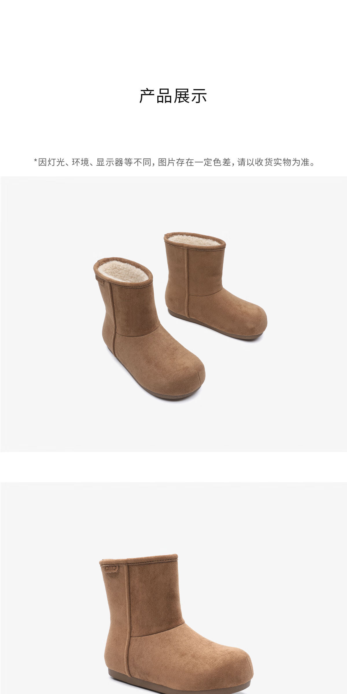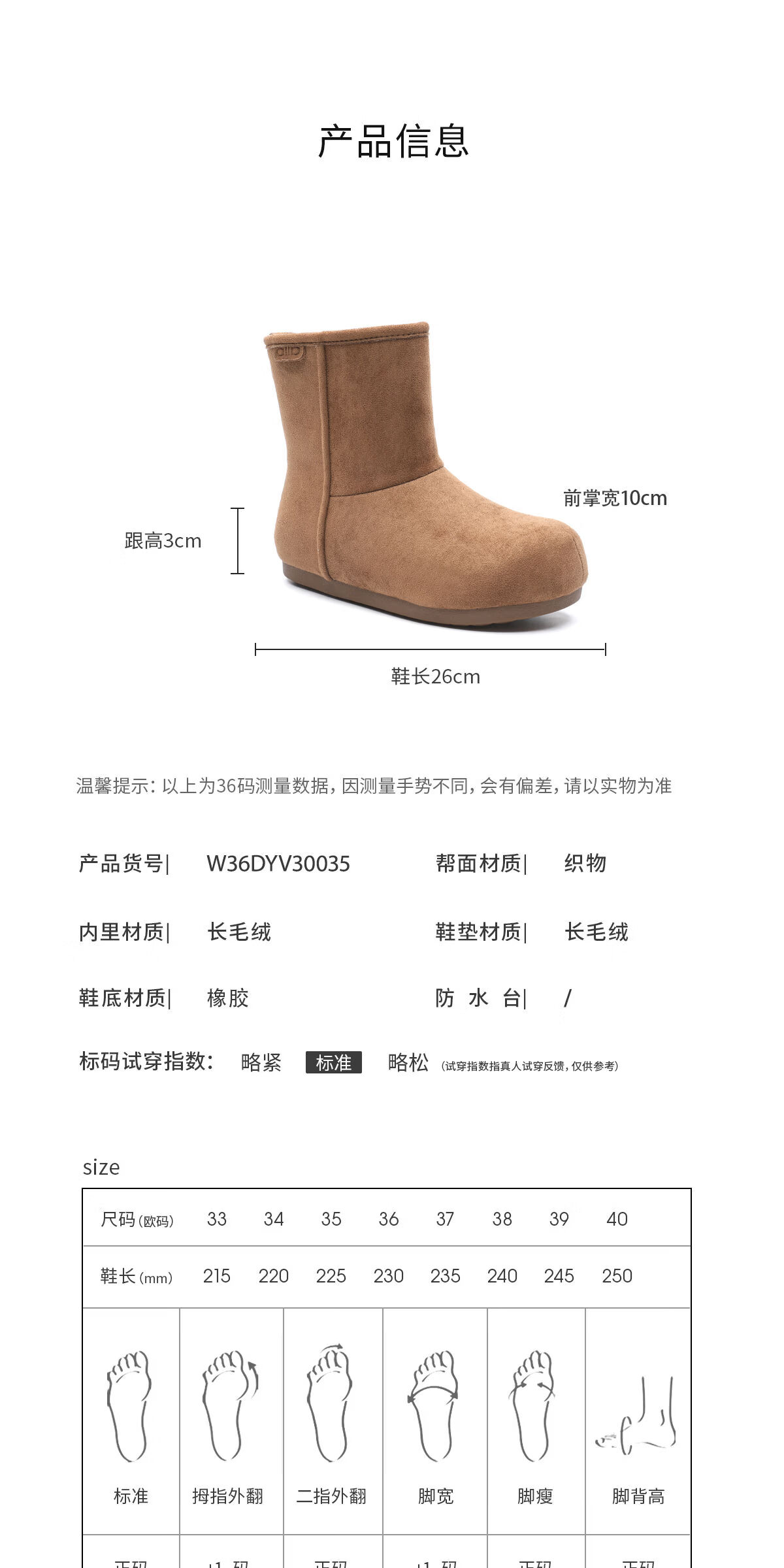 月芽儿雪地靴女2025新款冬季时尚短靴保暖加绒加厚短筒靴织物鞋 绒里棕色03T 34