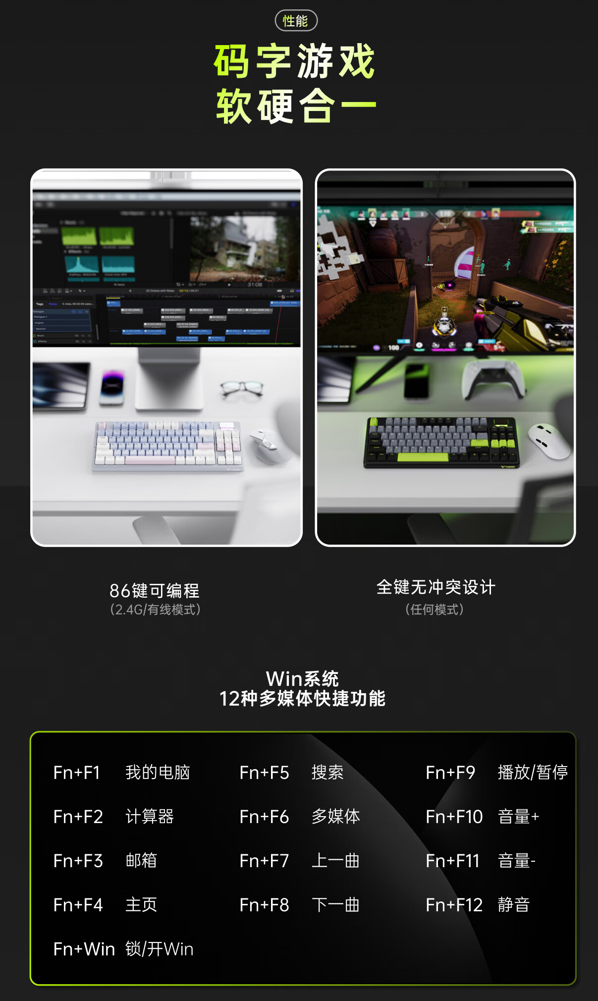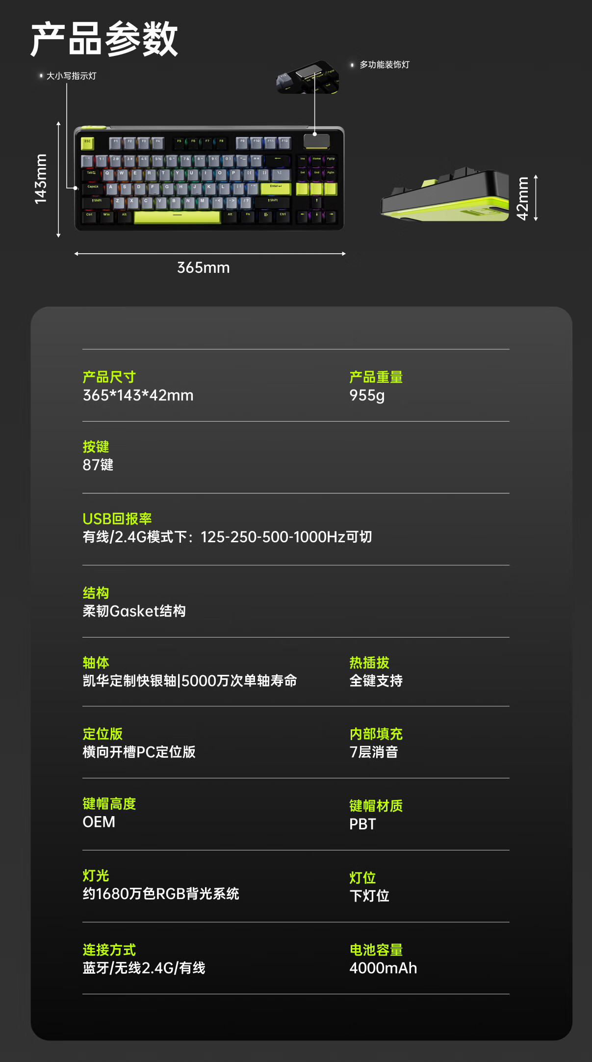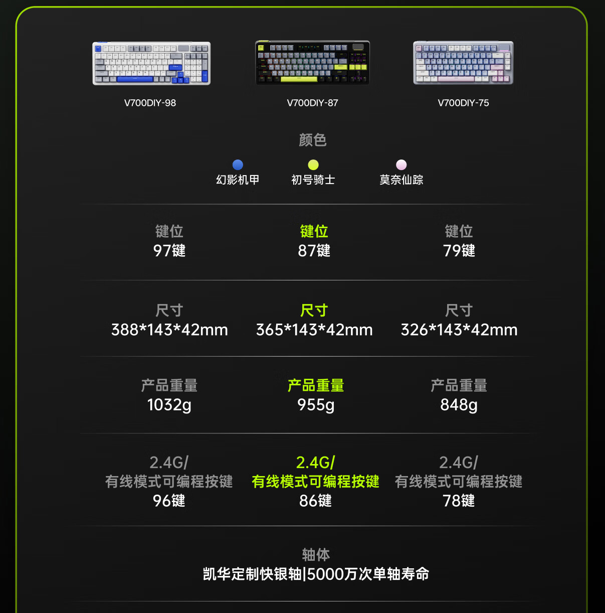 雷柏(Rapoo)V700DIY-87三模客制化无线机械键盘gasket结构7层填充消音全键热插拔电竞游戏办公电脑键盘 白灰蓝