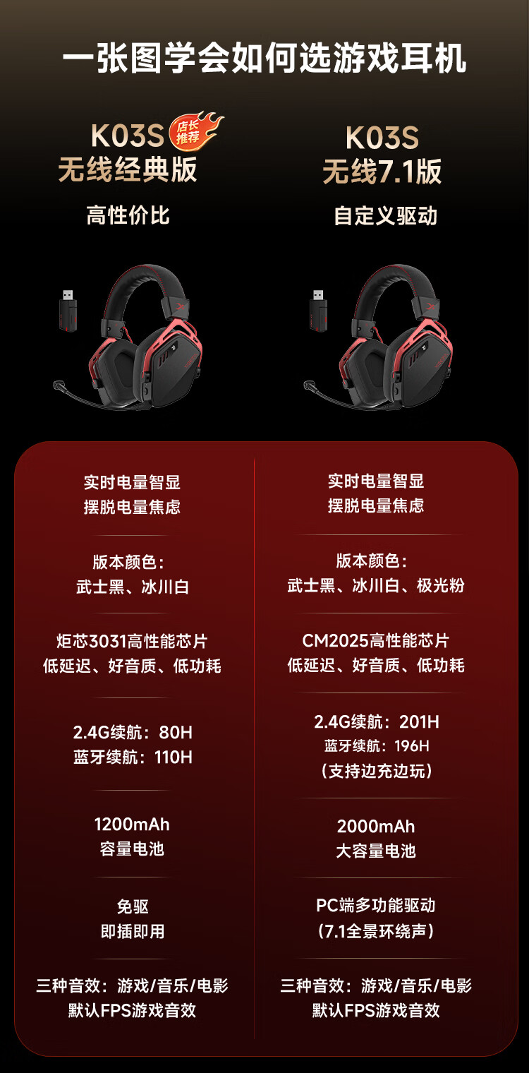 西伯利亚(XIBERIA)K03S四模智显游戏耳机头戴式电竞三角洲特调音效听声辨位武士黑TOP1【小叮当推荐】