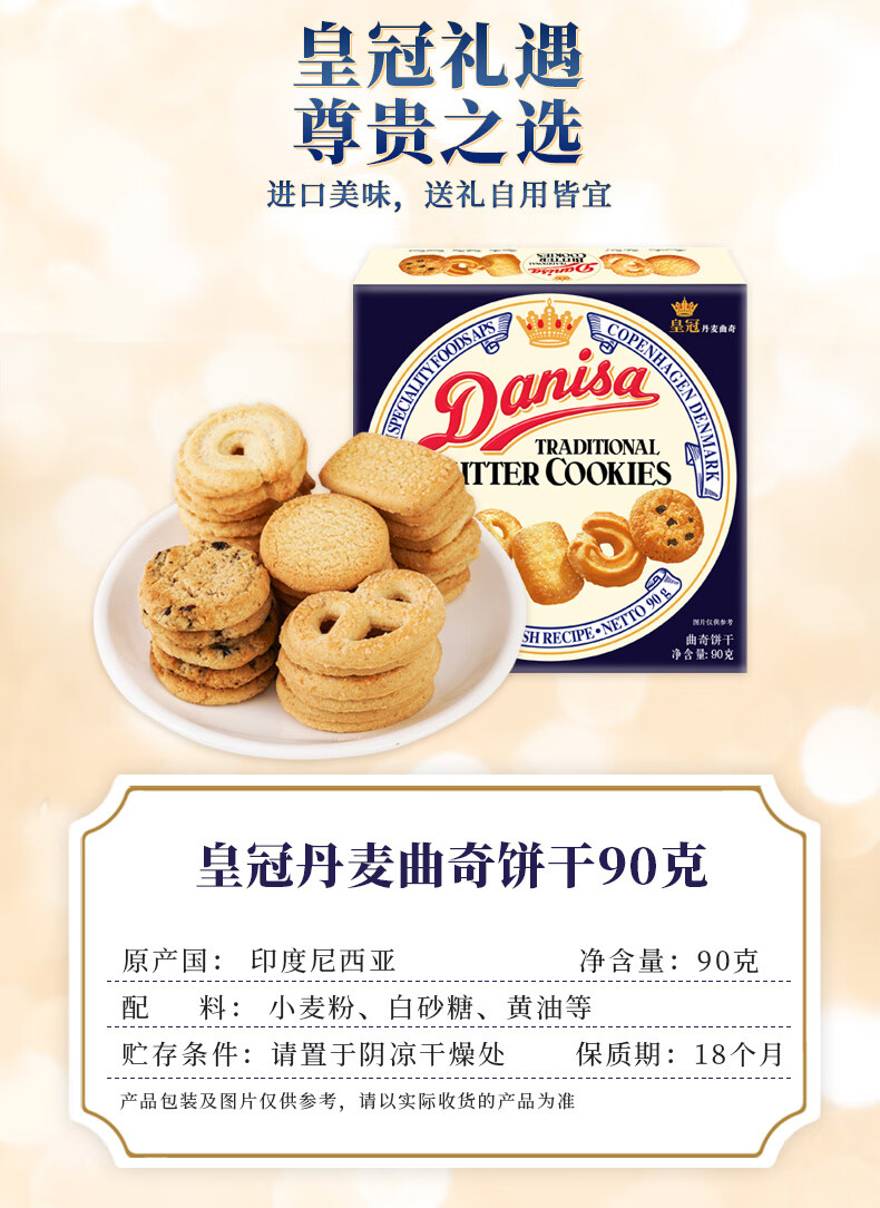 皇冠(danisa)丹麦曲奇饼干90g 休闲零食早餐团购喜饼诞生礼囤货送礼进口