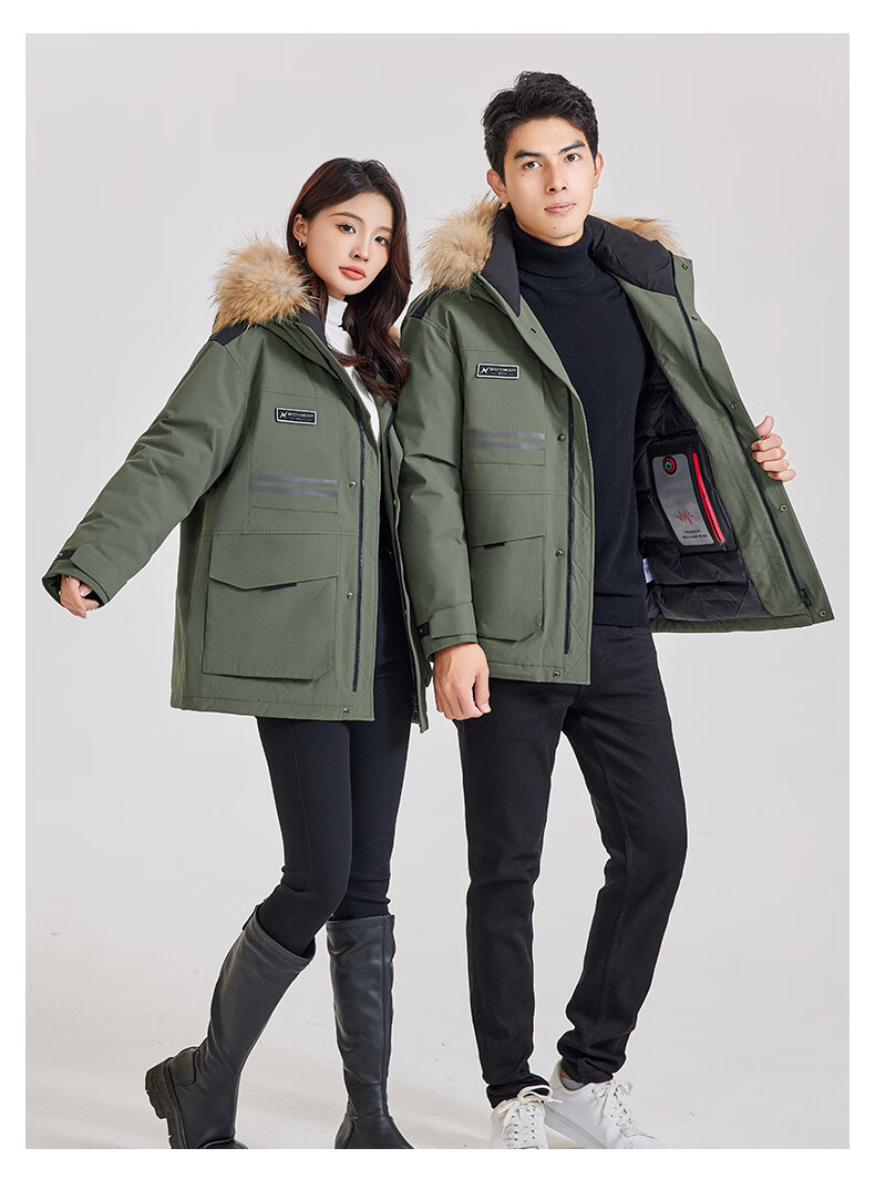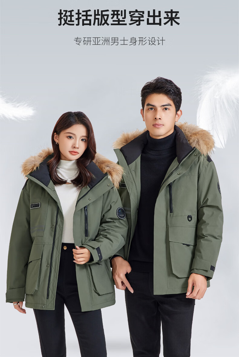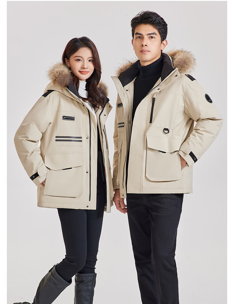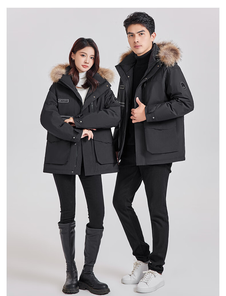 雪中飞工装毛领羽绒服男女短款2026年新款保暖派克冬季情侣款休闲外套 黑色 165 S