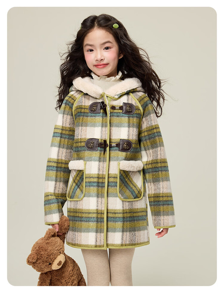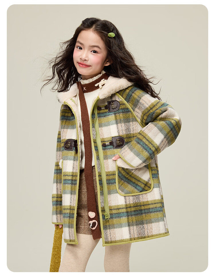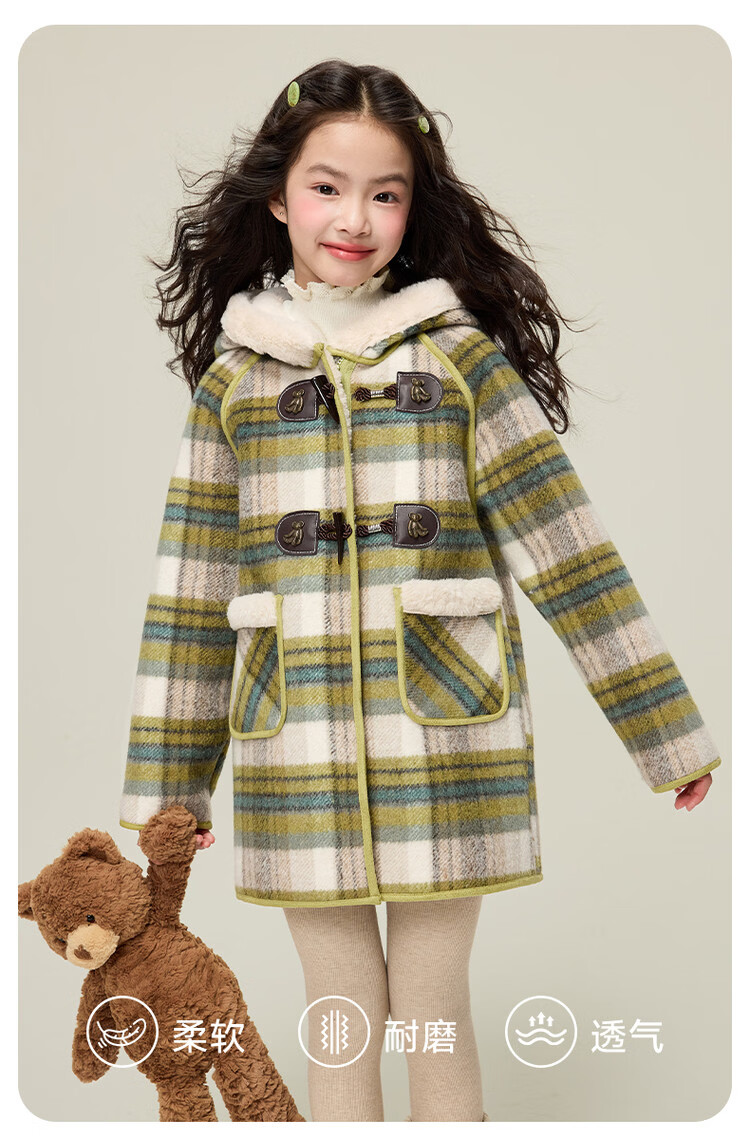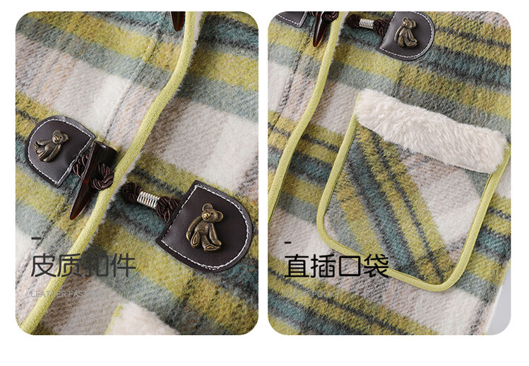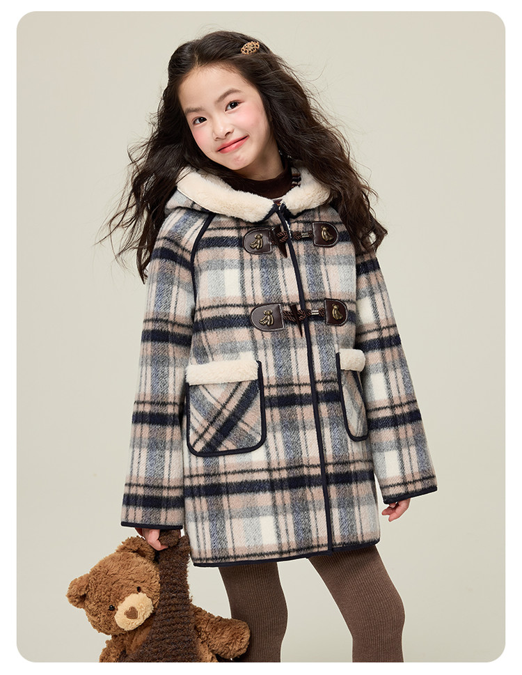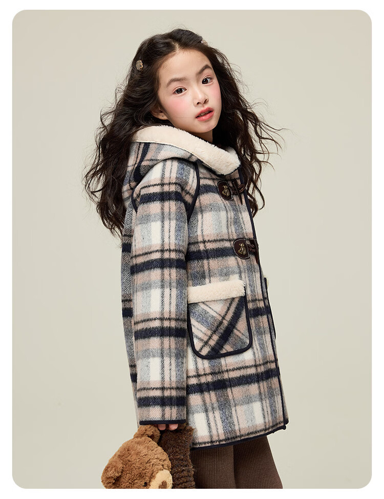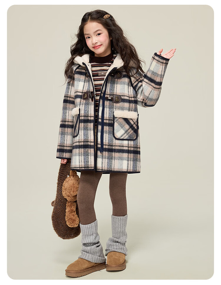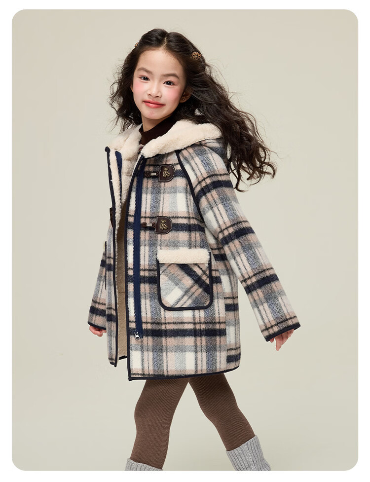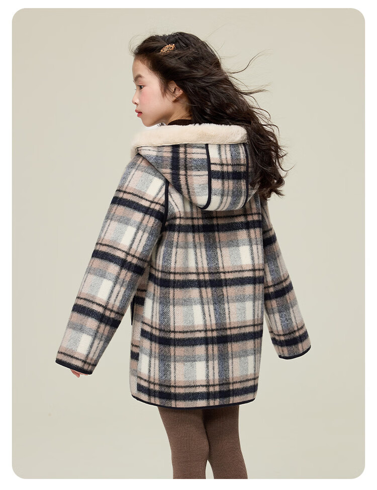 媛媛公主儿童外套秋冬新款女童保暖加绒加厚格纹呢大衣中大童防风耐磨外套 藏蓝格子 110
