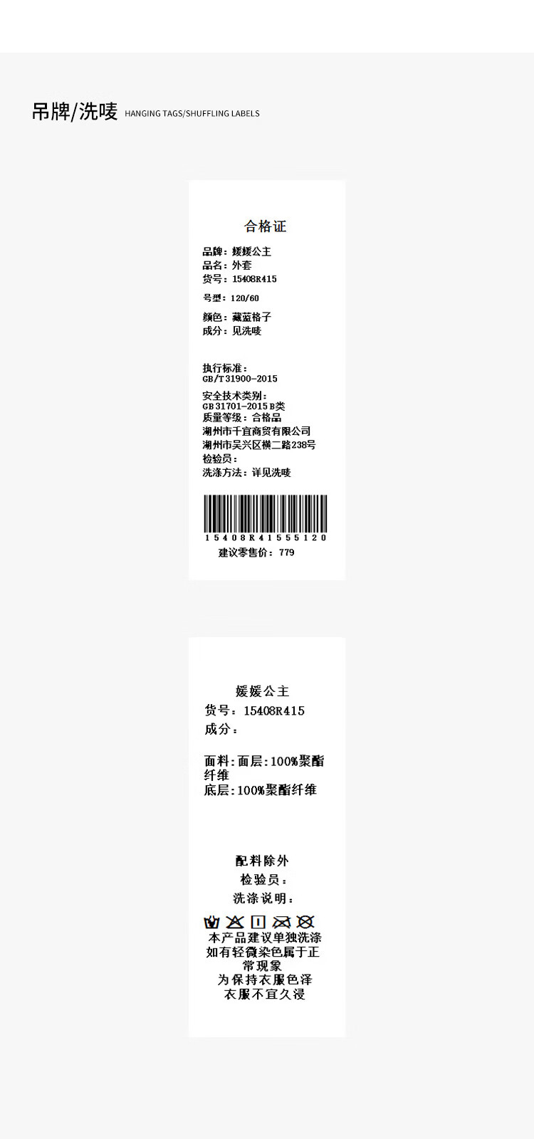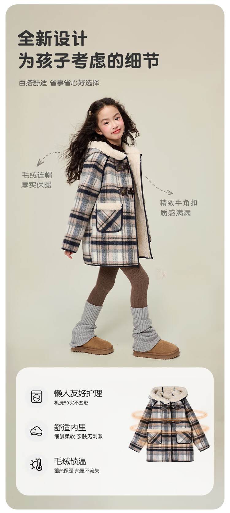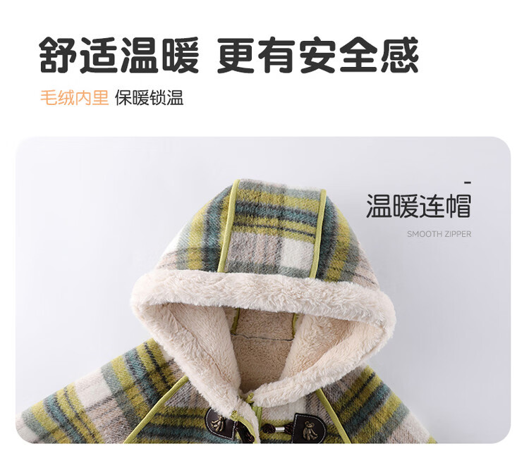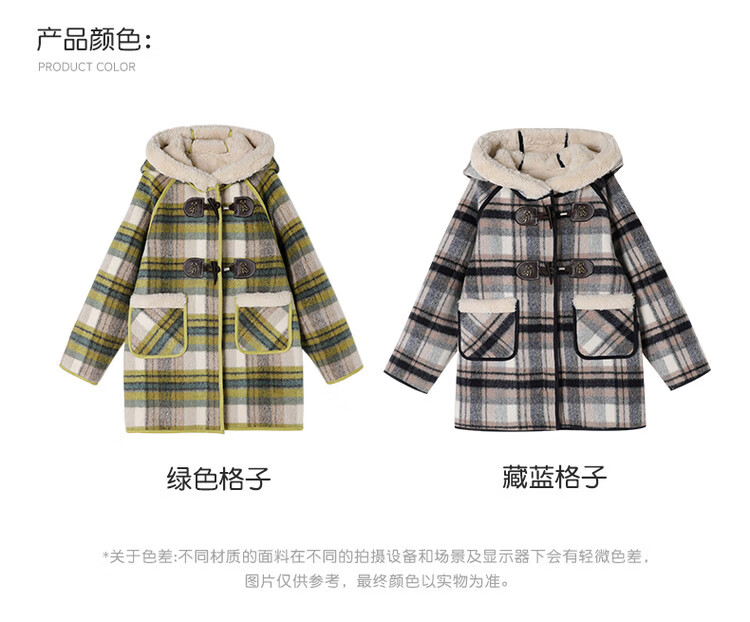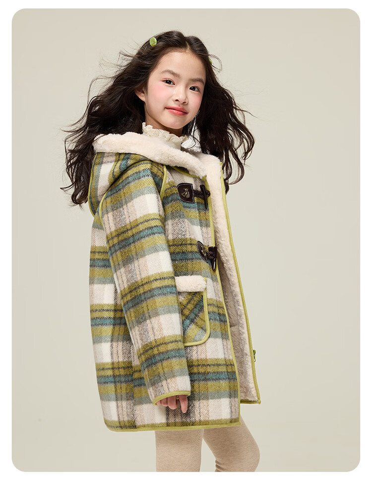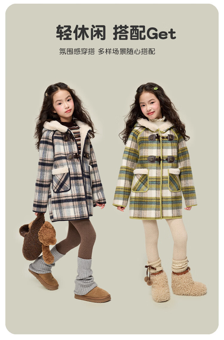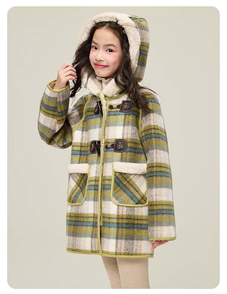 媛媛公主儿童外套秋冬新款女童保暖加绒加厚格纹呢大衣中大童防风耐磨外套 藏蓝格子 110