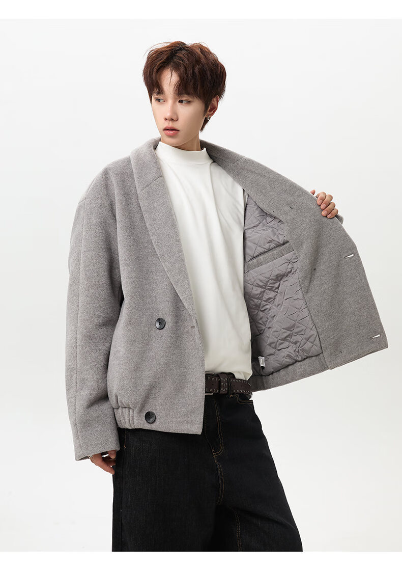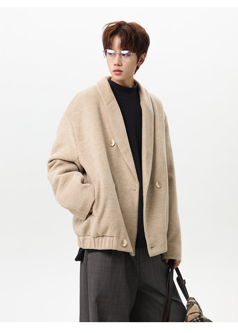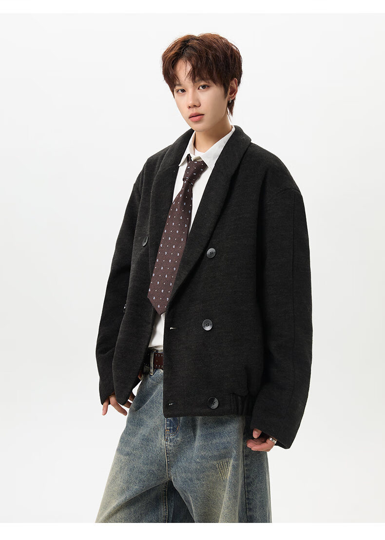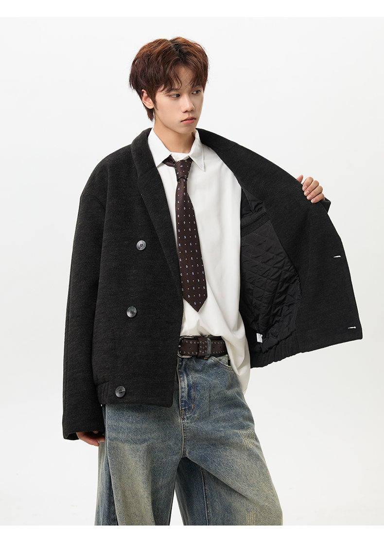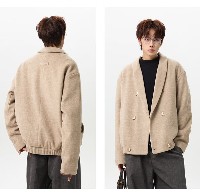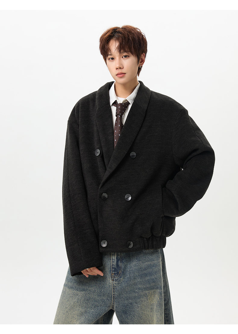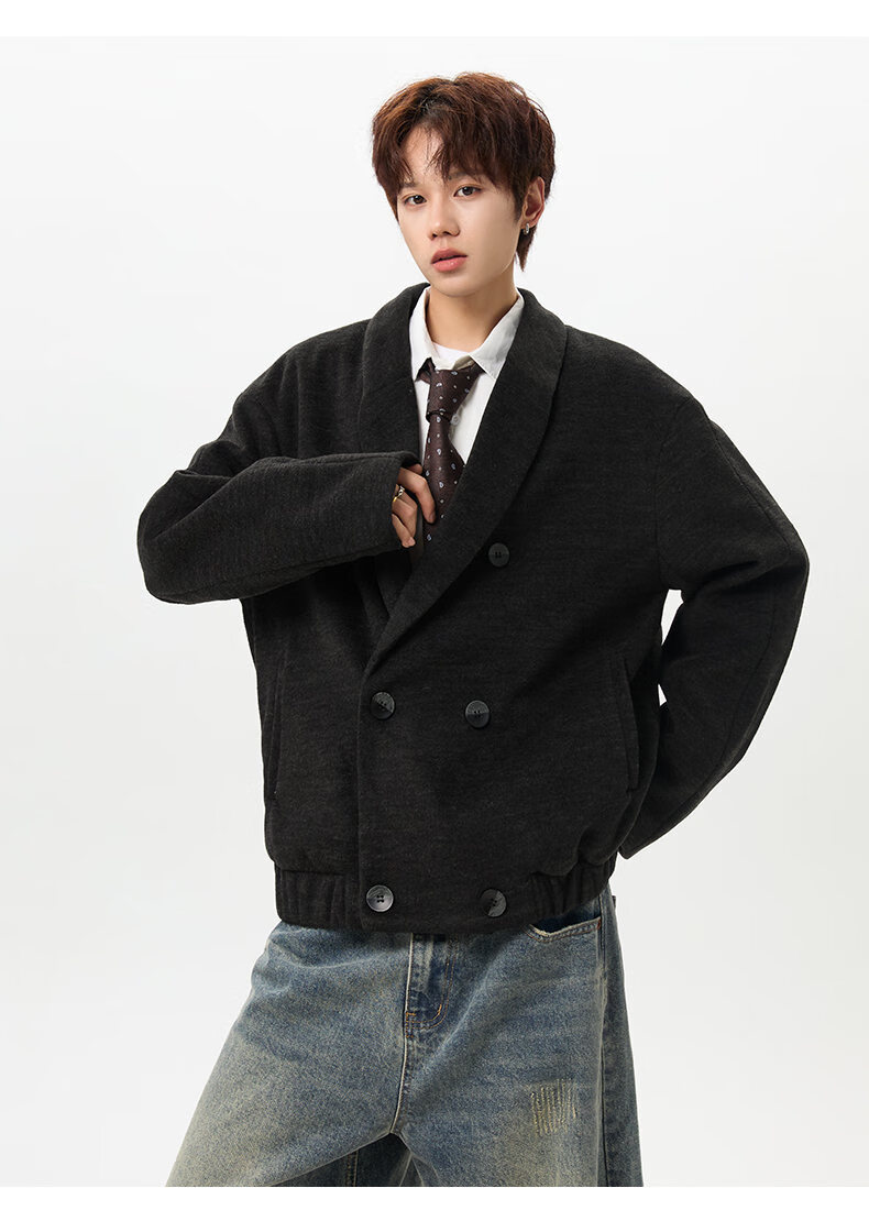 NEW OR MODE韩版毛呢大衣男士冬季新款加厚保暖宽松休闲百搭翻领棉服夹克外套 黑色 M 【建议90-110斤】
