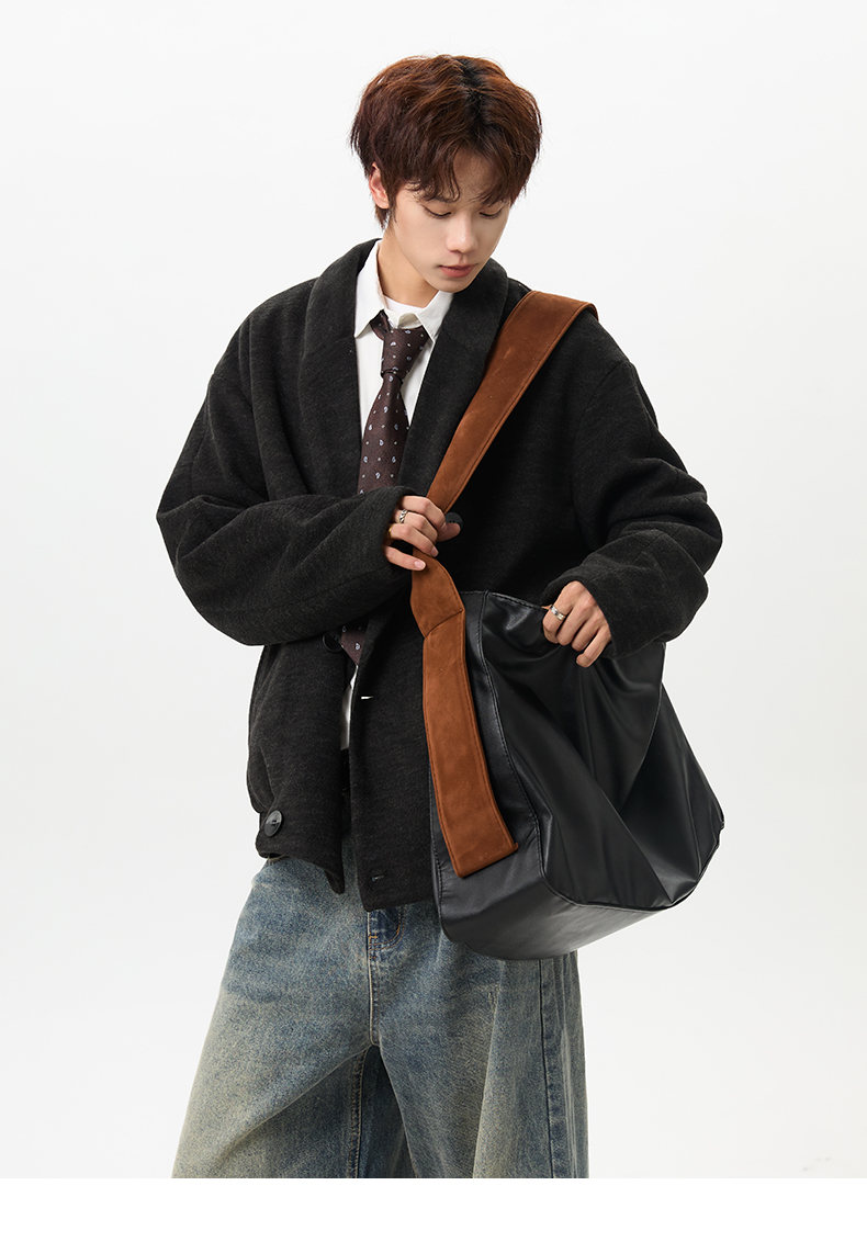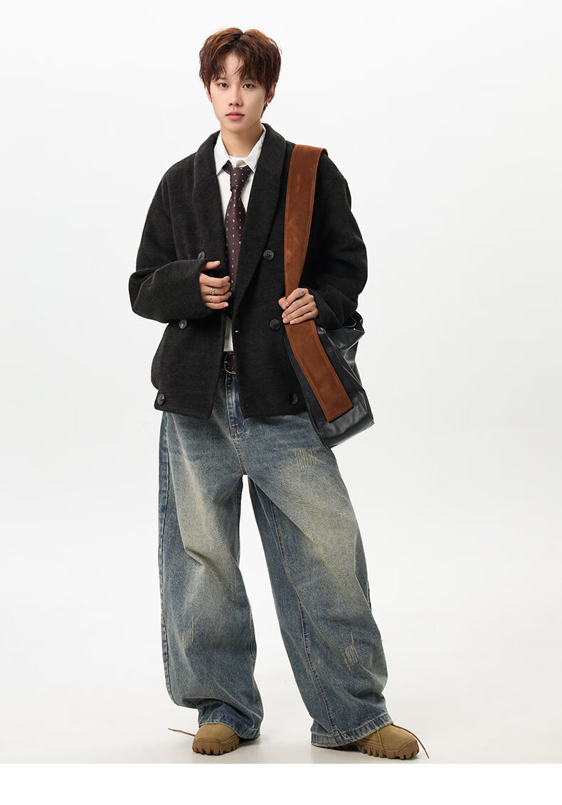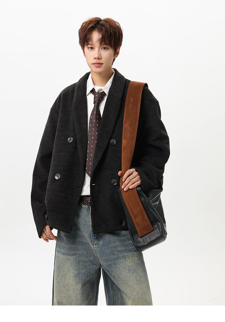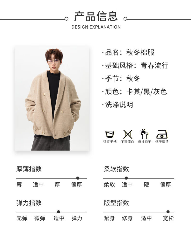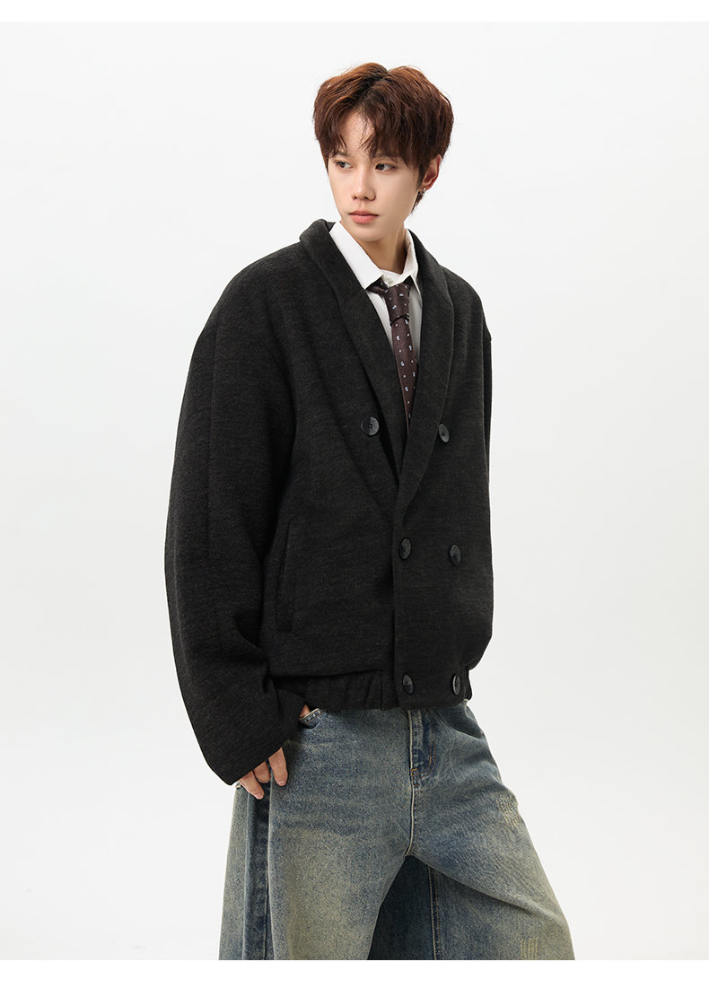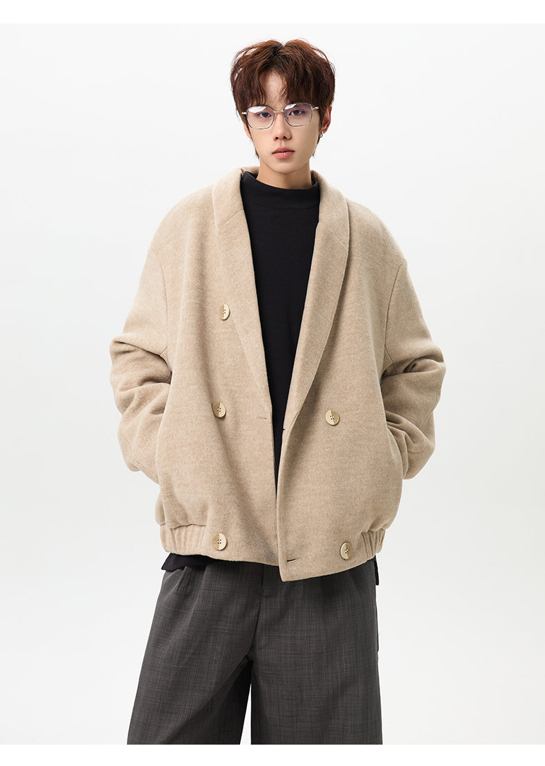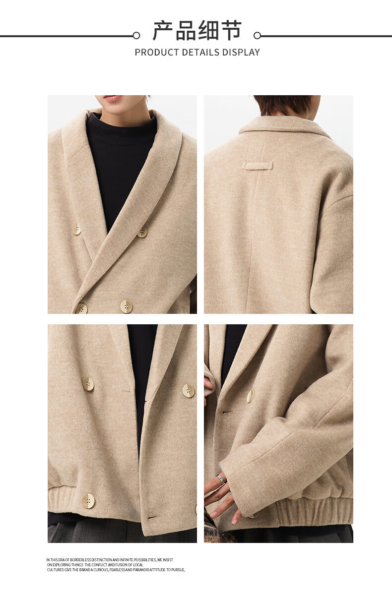 NEW OR MODE韩版毛呢大衣男士冬季新款加厚保暖宽松休闲百搭翻领棉服夹克外套 黑色 M 【建议90-110斤】
