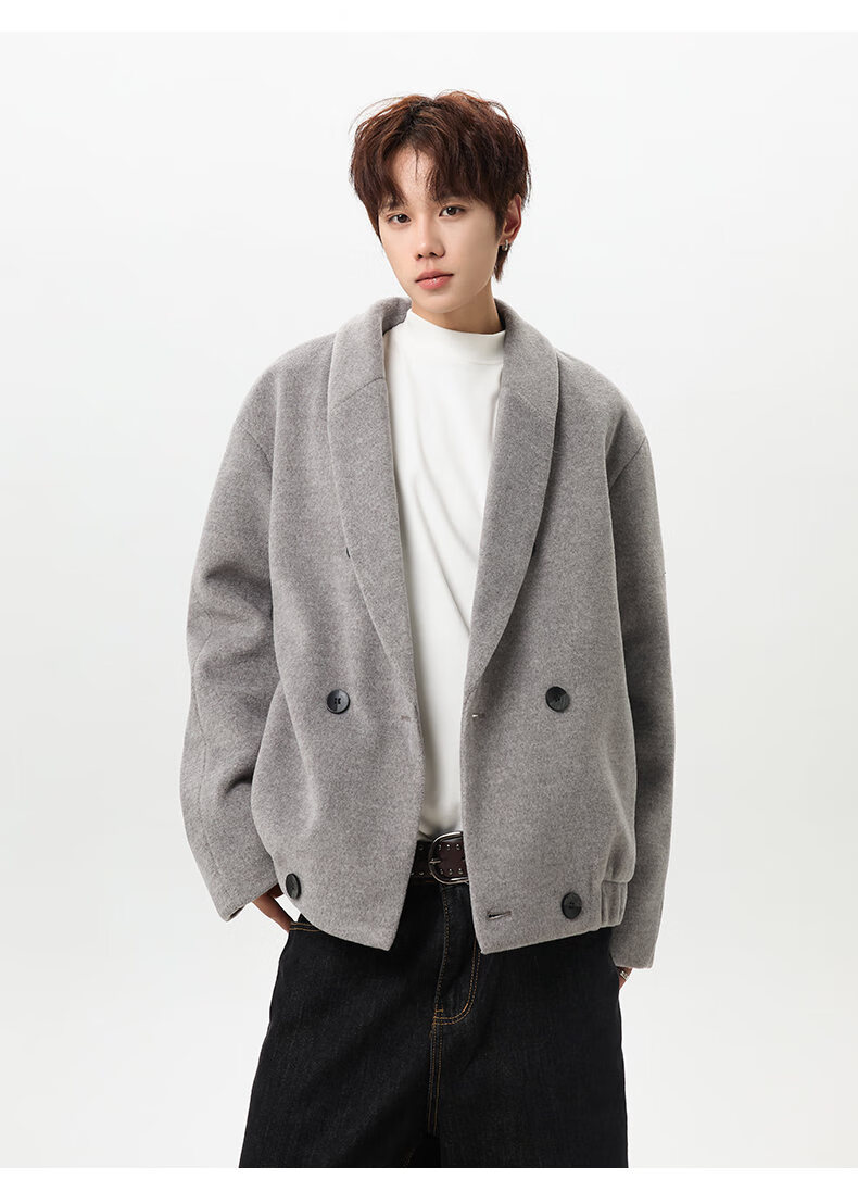 自巧巧制STUDIO 小个子牛角扣羊毛大衣女2025新款立领双面呢外套 奶油白短款 XXS (尺码:1)
