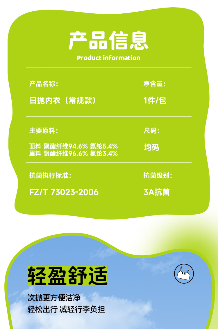 屈臣氏COTTON WAITER日抛内衣 常规款 1片 1包