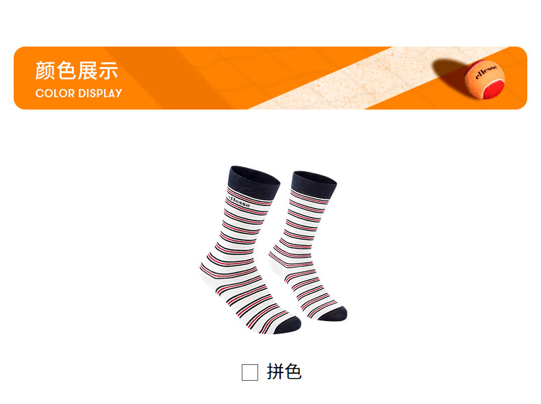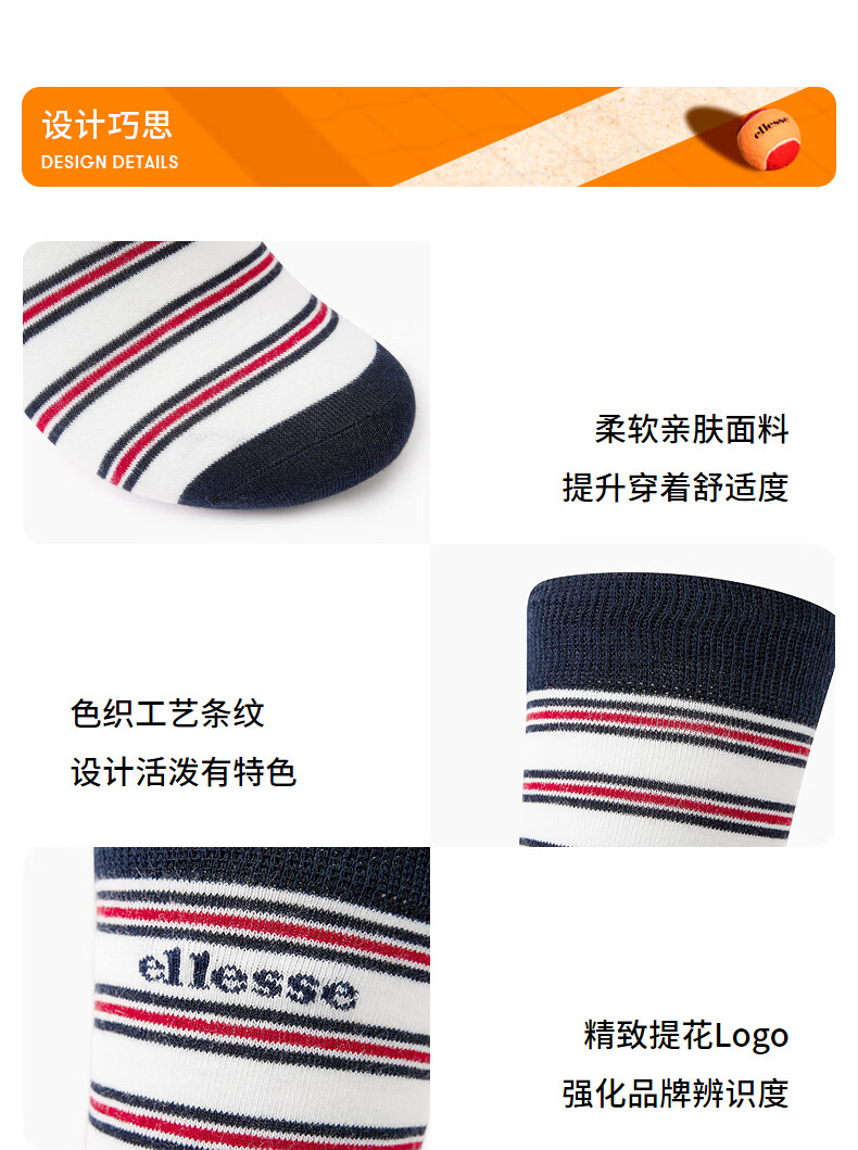 ellesse小贝壳柔软亲肤弹力透气条纹运动袜 拼色 M