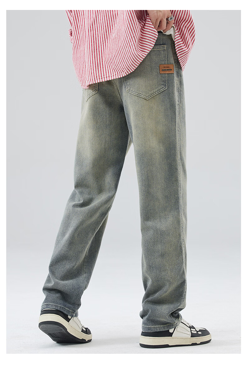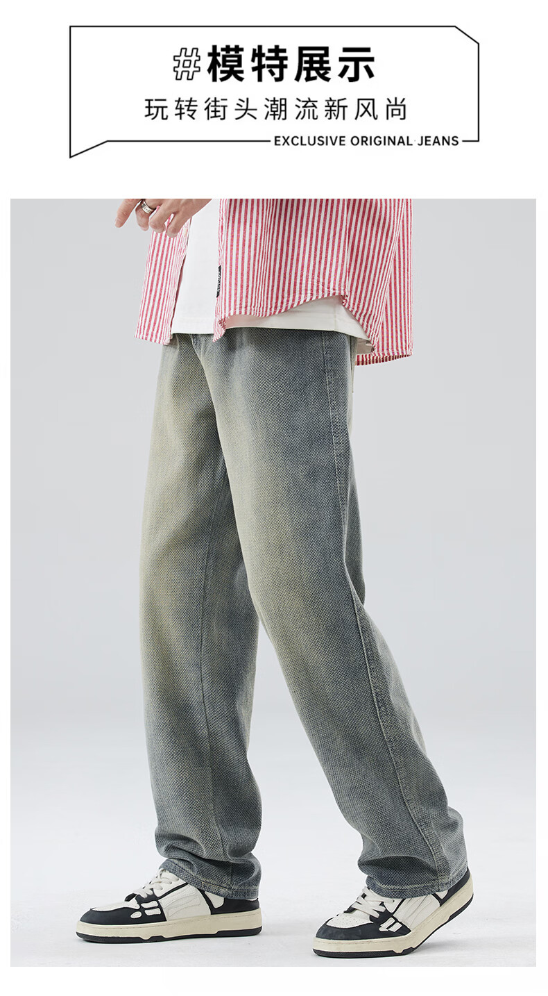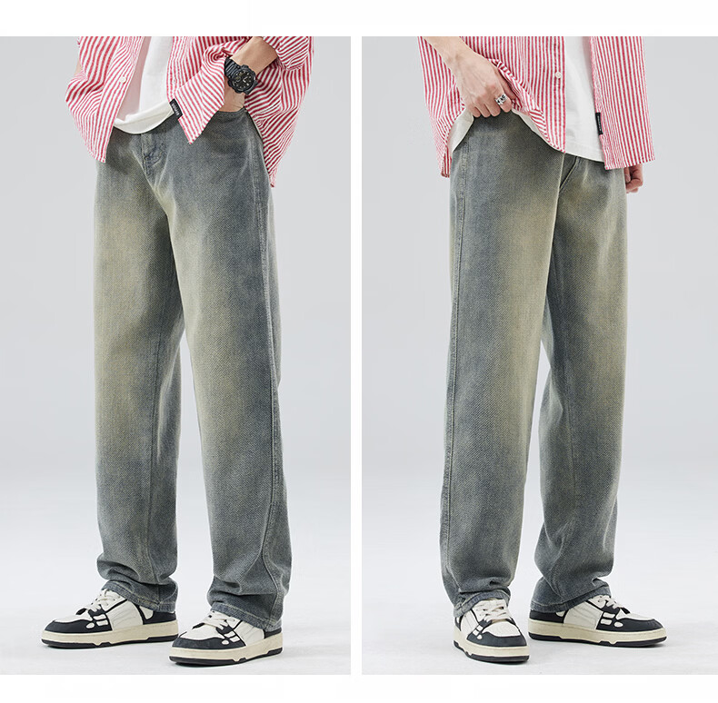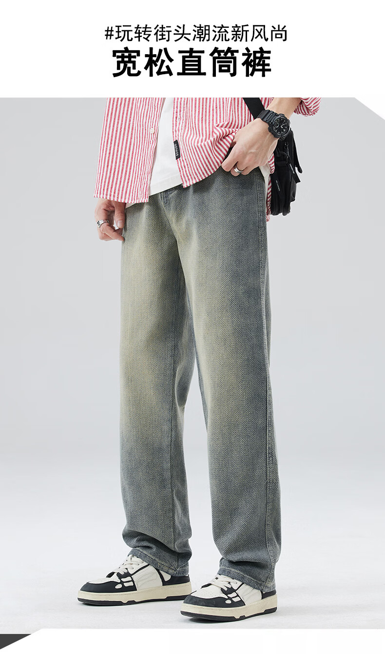 真维斯美式高街星空纹牛仔裤男宽松直筒2026春季新款潮牌复古休闲长裤子 怀旧 30