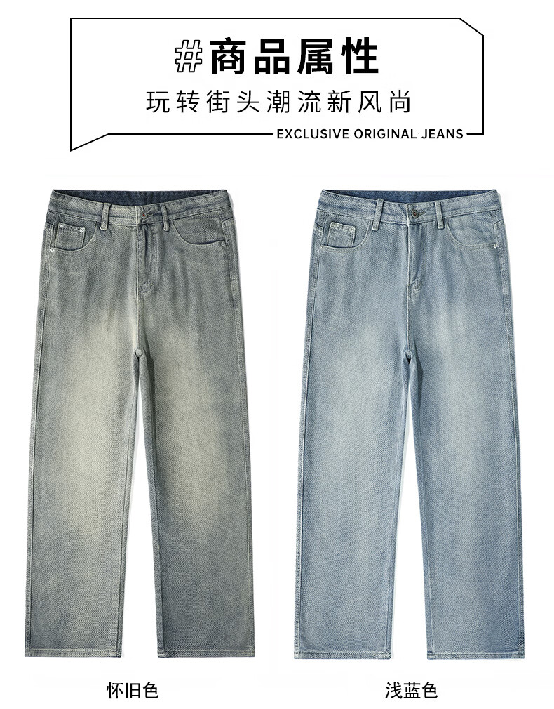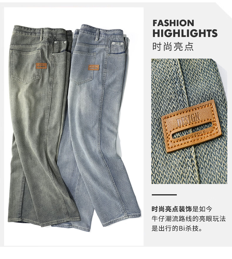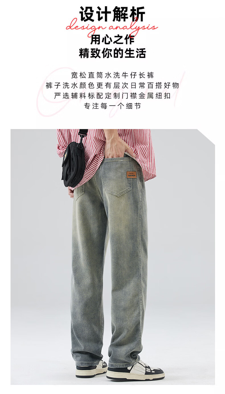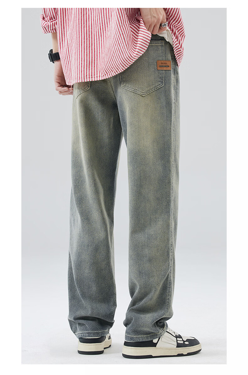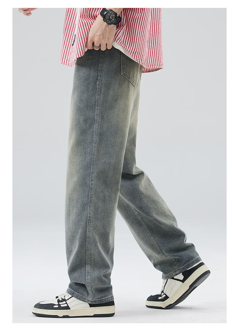 真维斯美式高街星空纹牛仔裤男宽松直筒2026春季新款潮牌复古休闲长裤子 怀旧 30