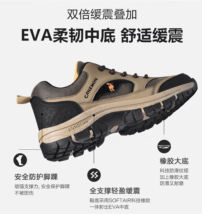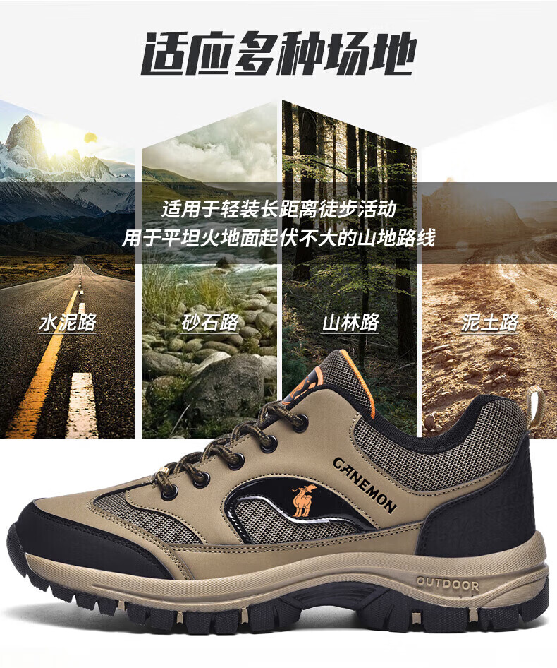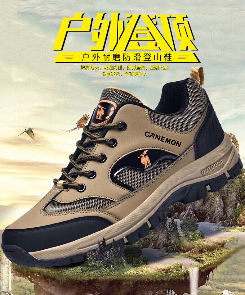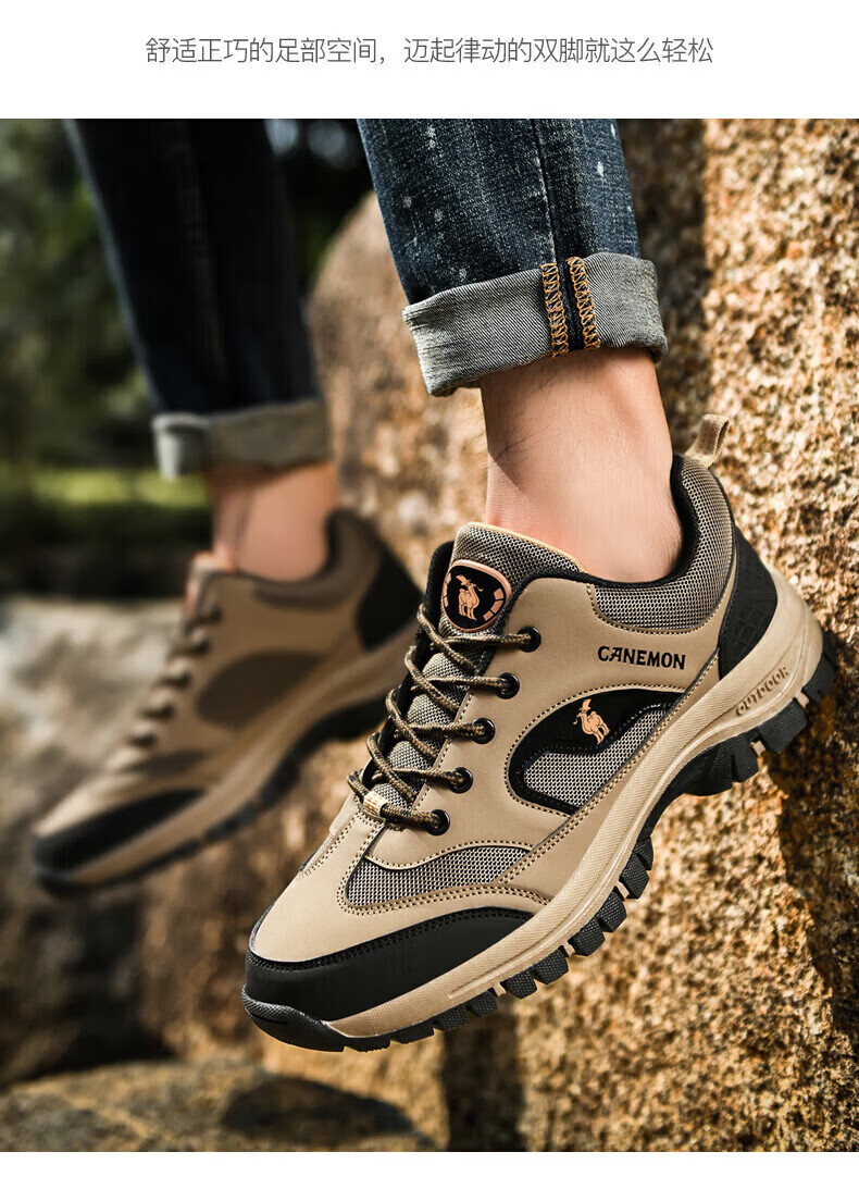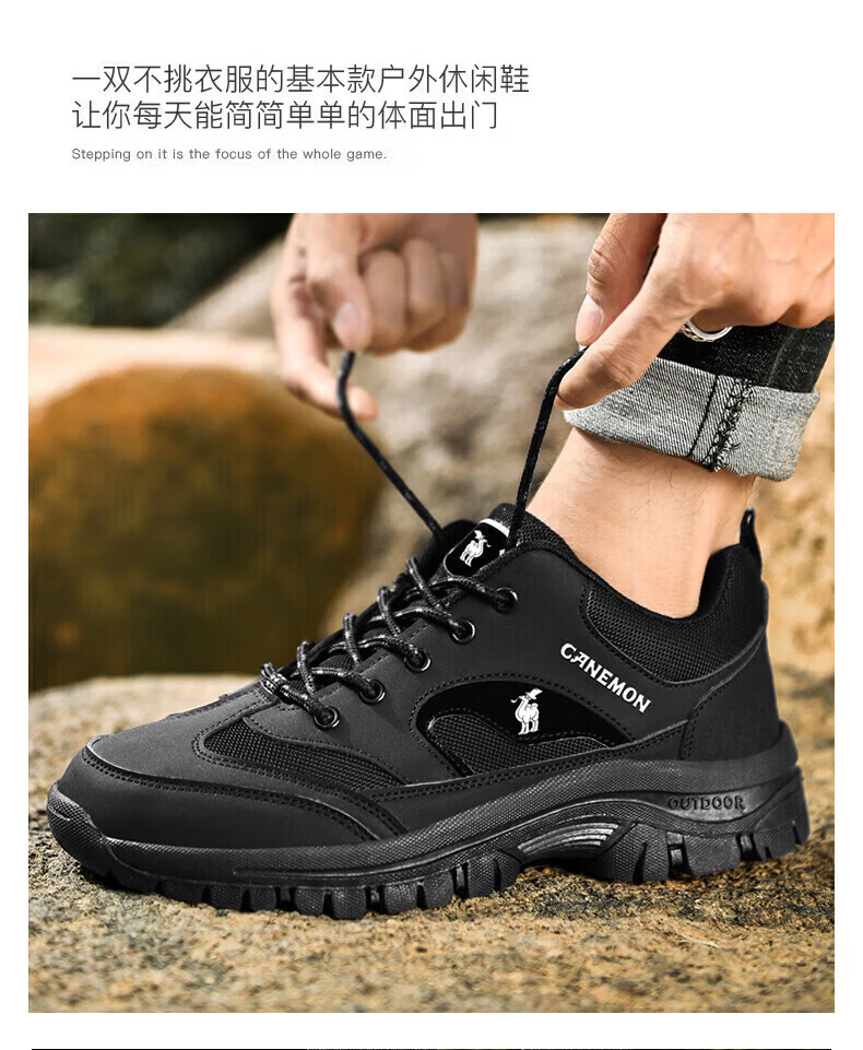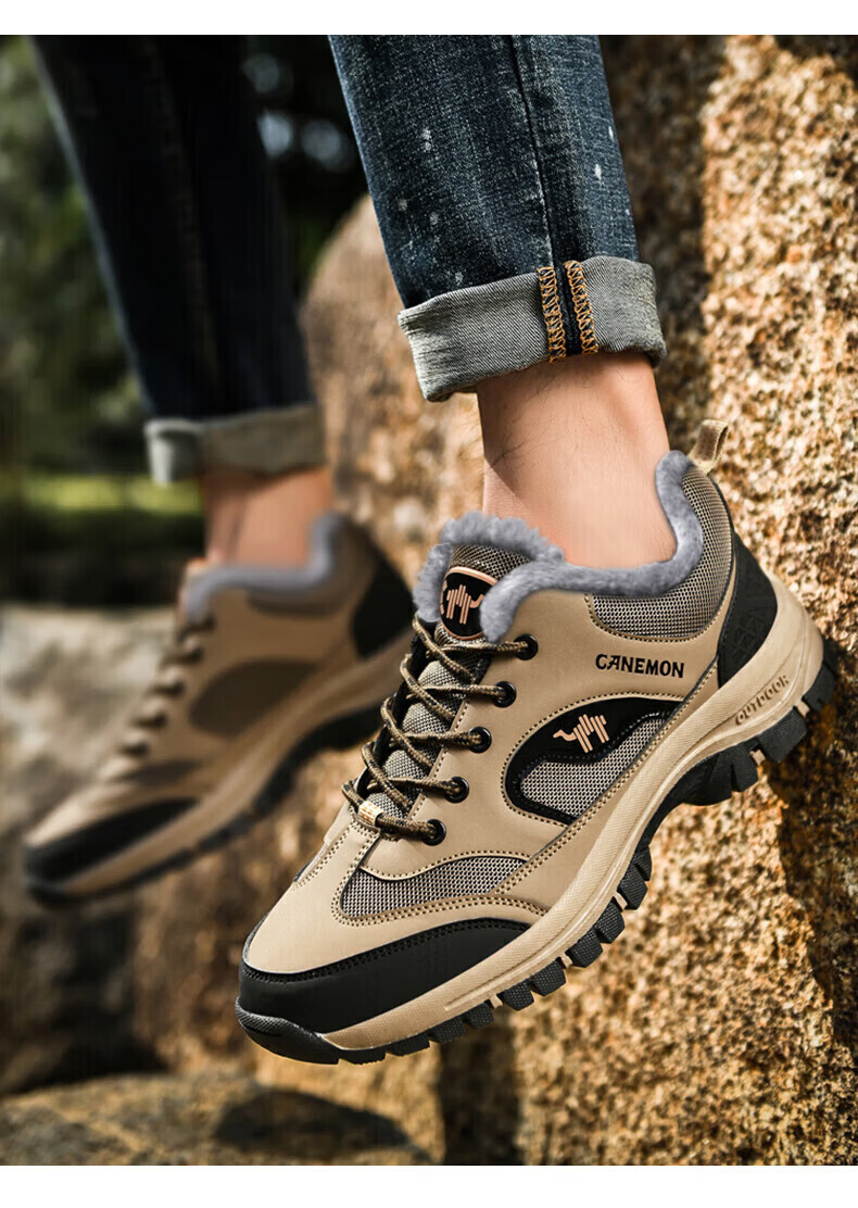 保罗骆驼户外徒步登山男鞋 2026春夏季加绒运动休闲鞋 透气防滑大码 【加绒款】黑色 6691 38 【标准运动鞋码】