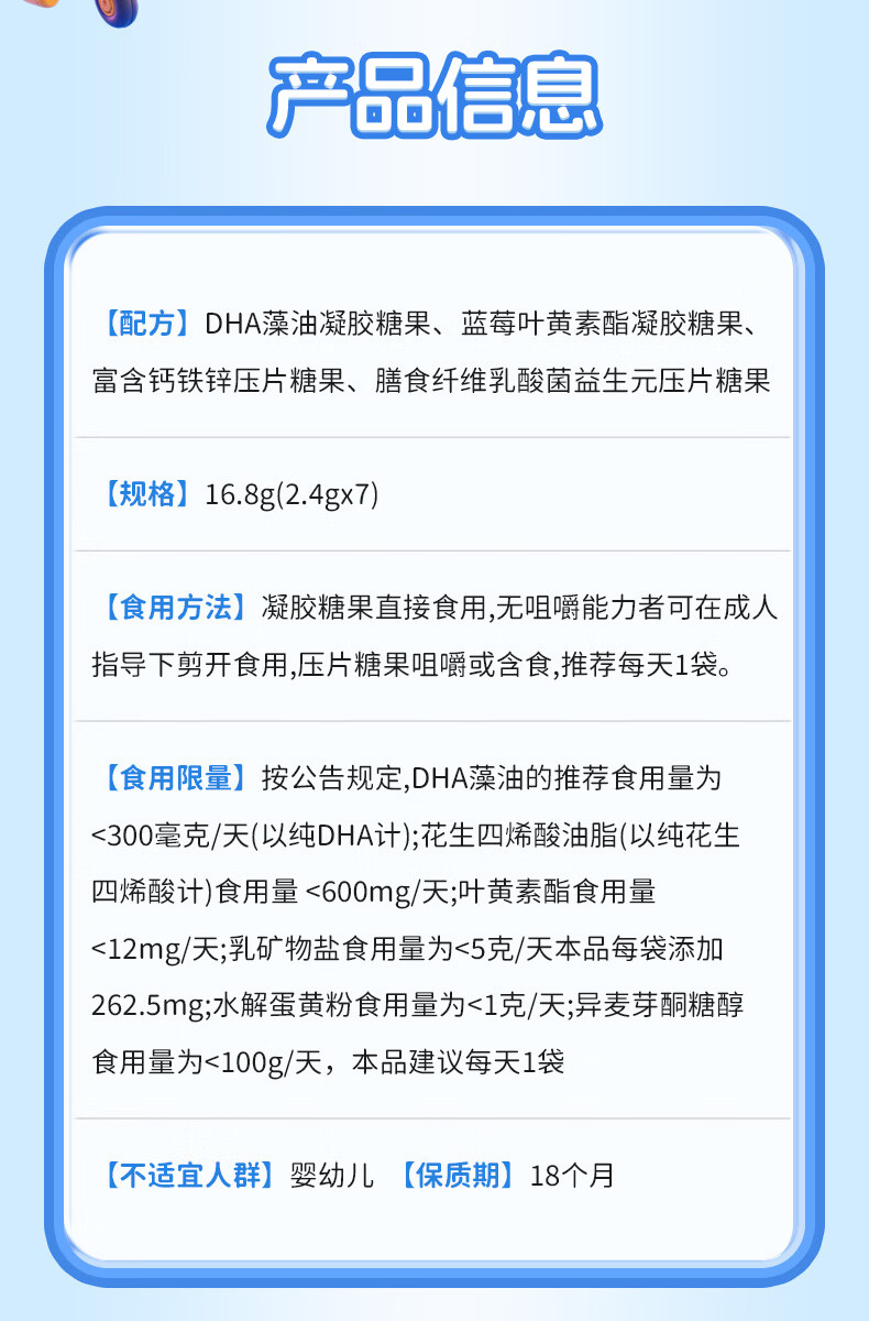 江中营养组合包7-18岁钙铁锌DHA蓝莓叶黄素乳酸菌每日中童营养包 7袋*2盒