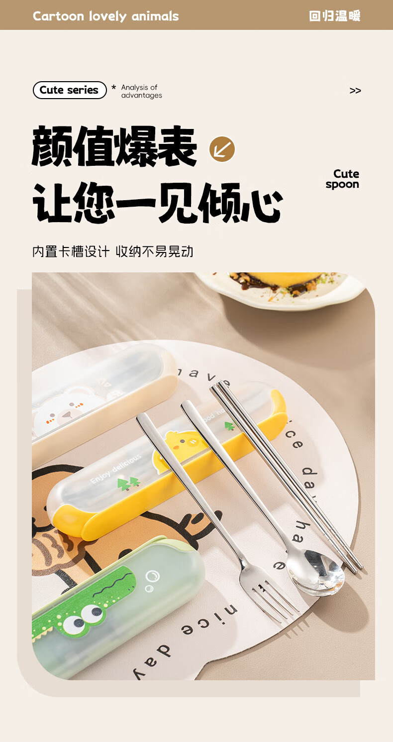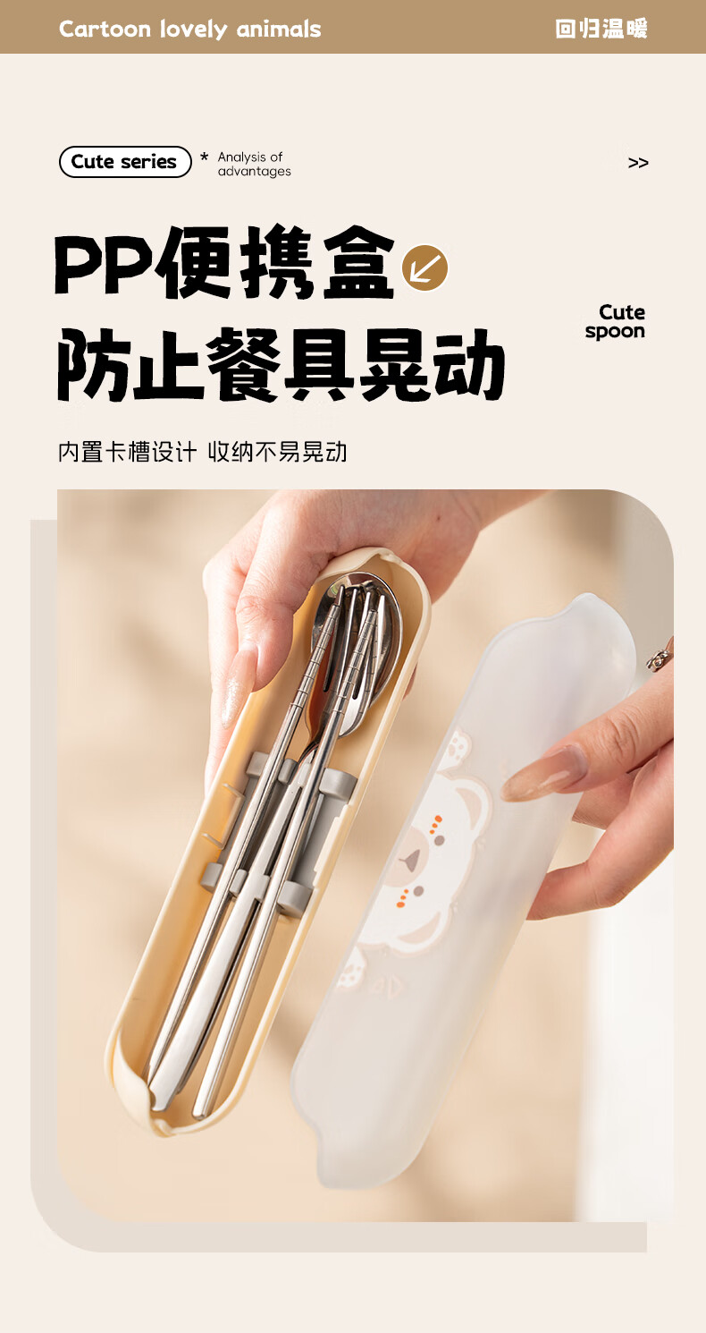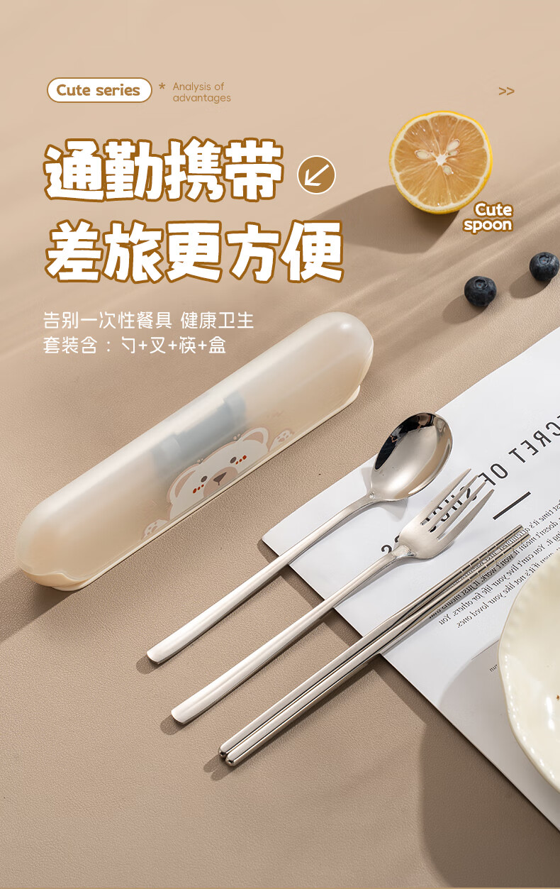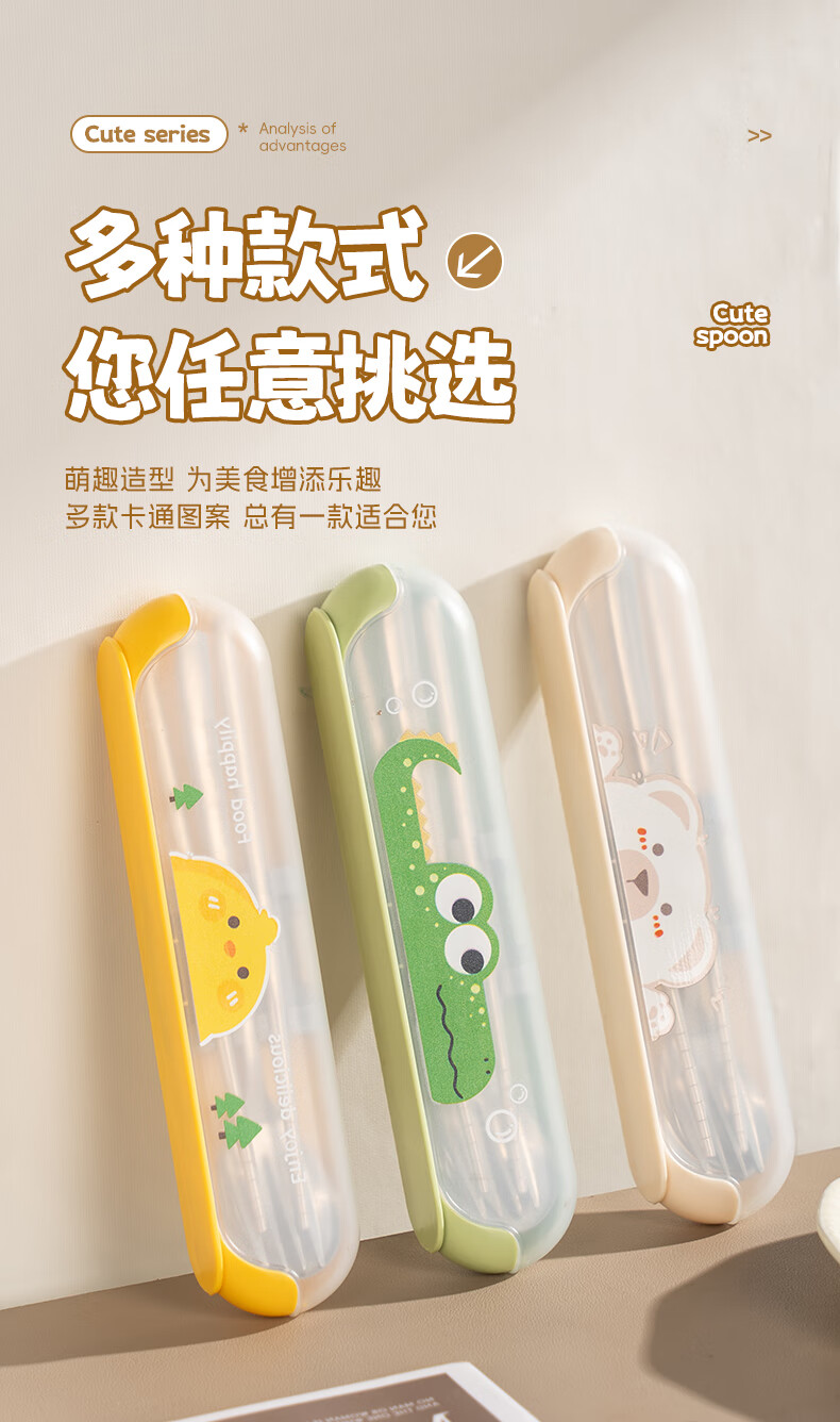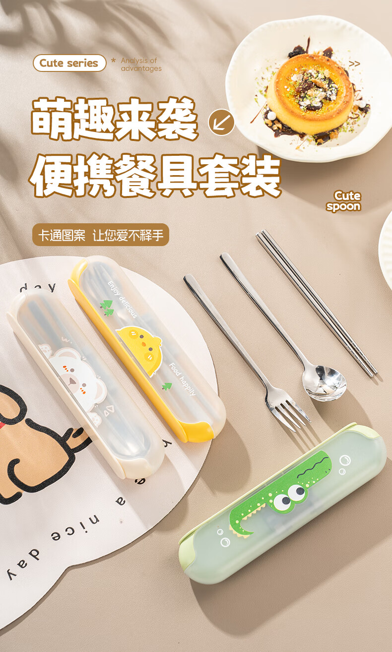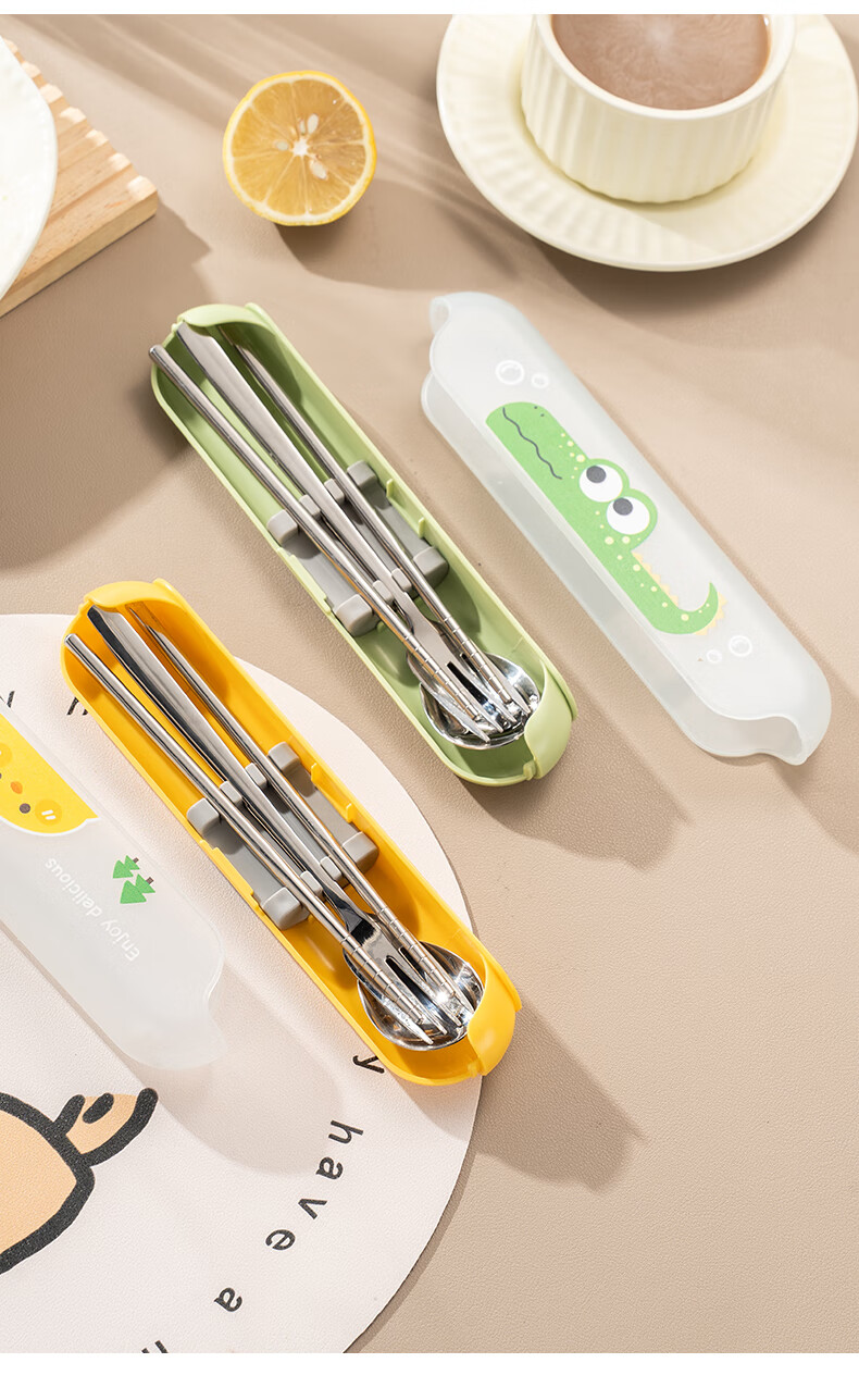 广意健康316不锈钢筷子勺子套装 便携餐具盒整套学生上班族专用 【小鳄鱼】316便携餐具三件套