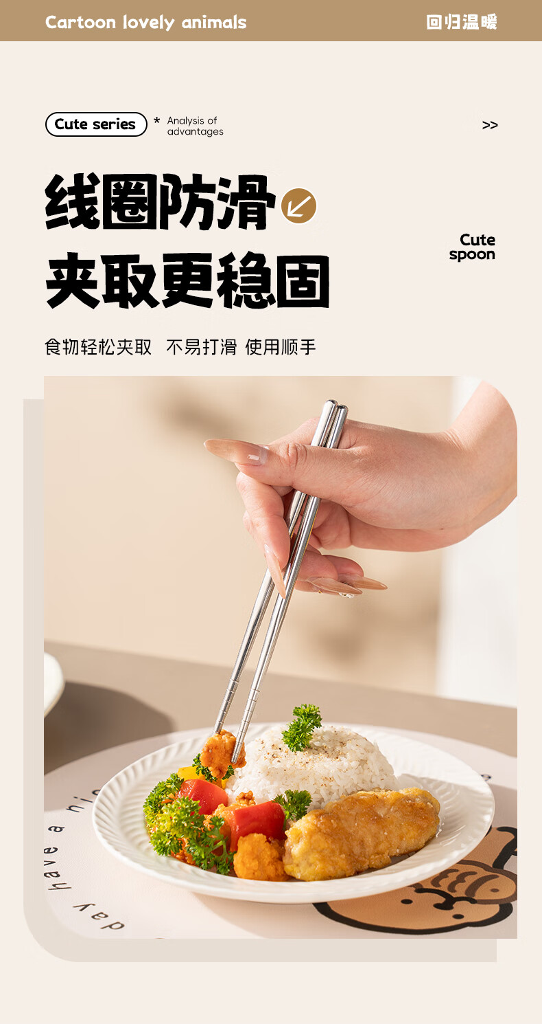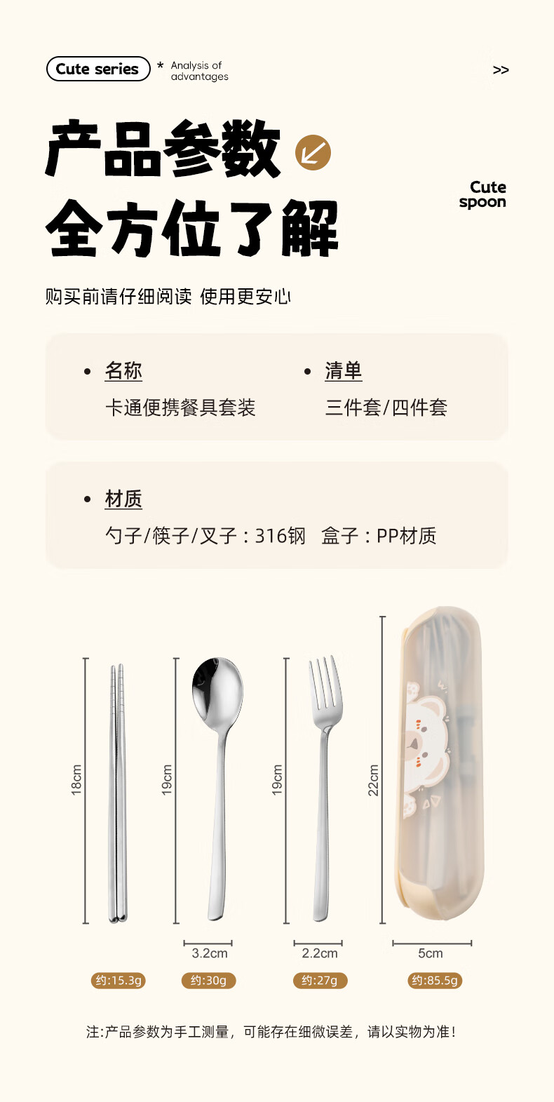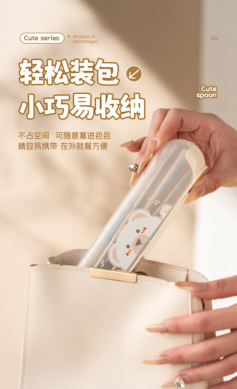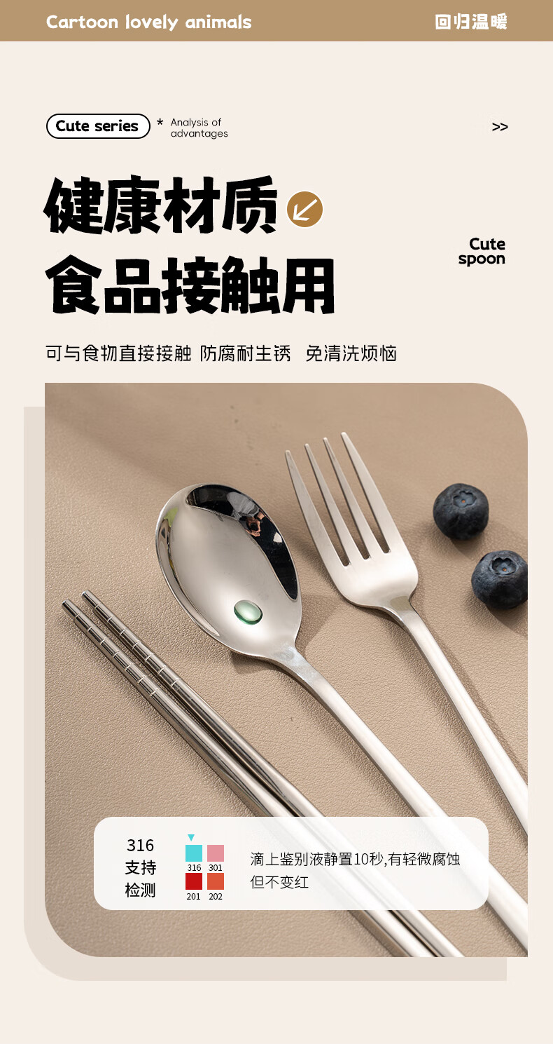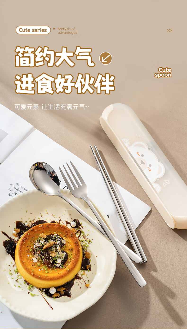 广意健康316不锈钢筷子勺子套装 便携餐具盒整套学生上班族专用 【小鳄鱼】316便携餐具三件套