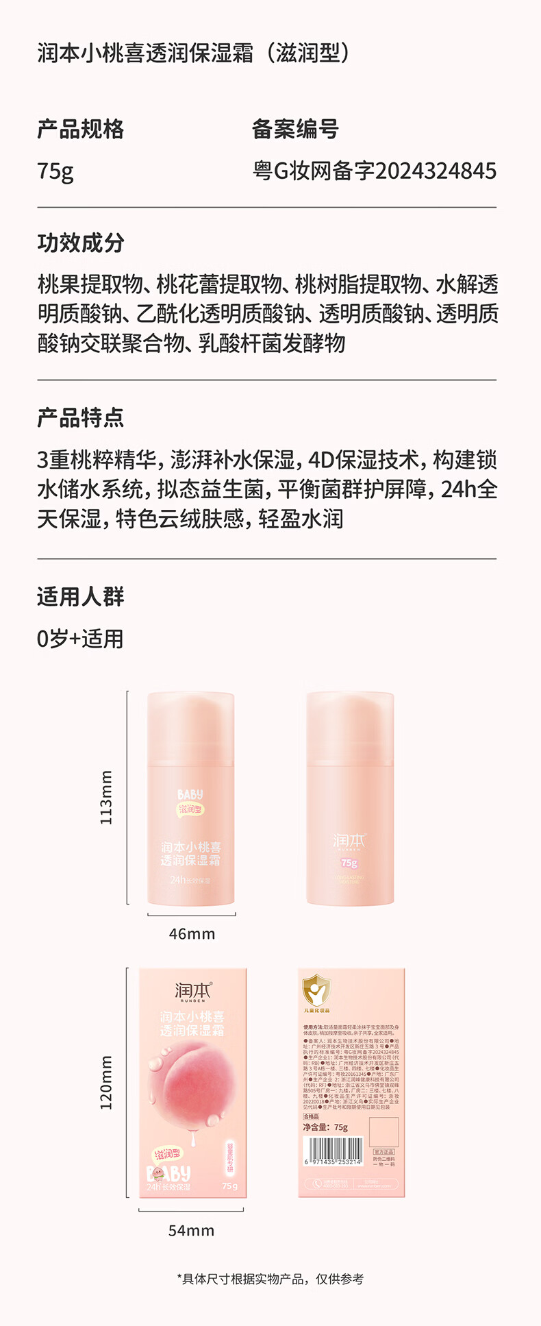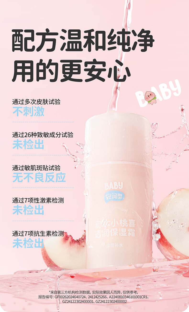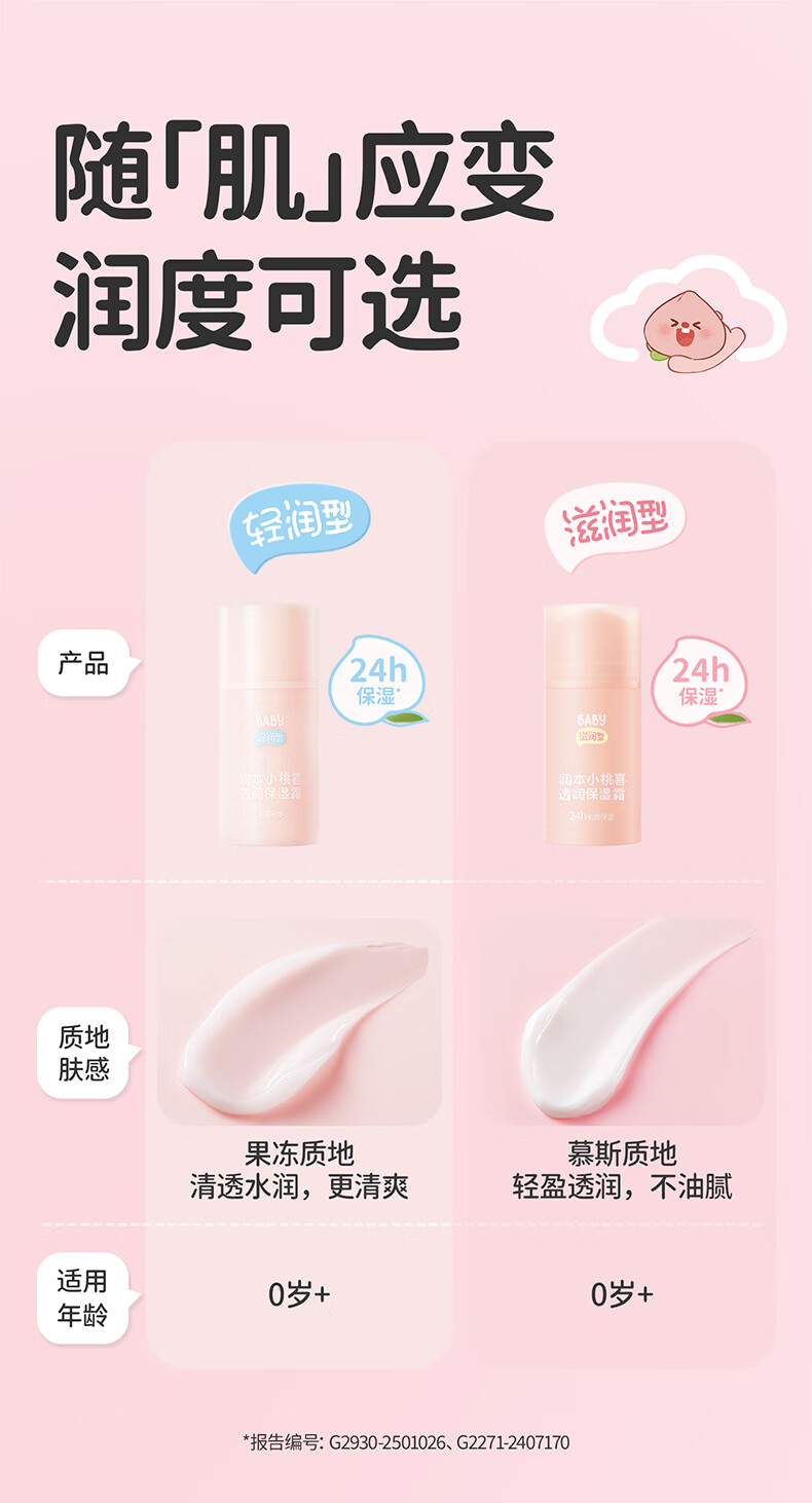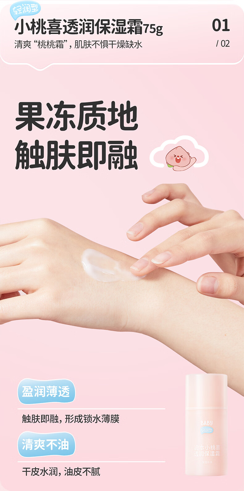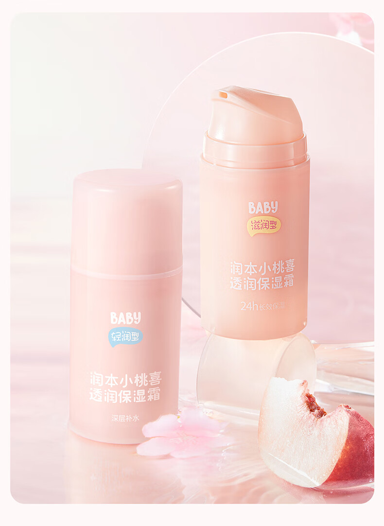 润本儿童宝宝婴儿面霜母婴补水保湿护肤小桃喜透润保湿霜75g轻润款