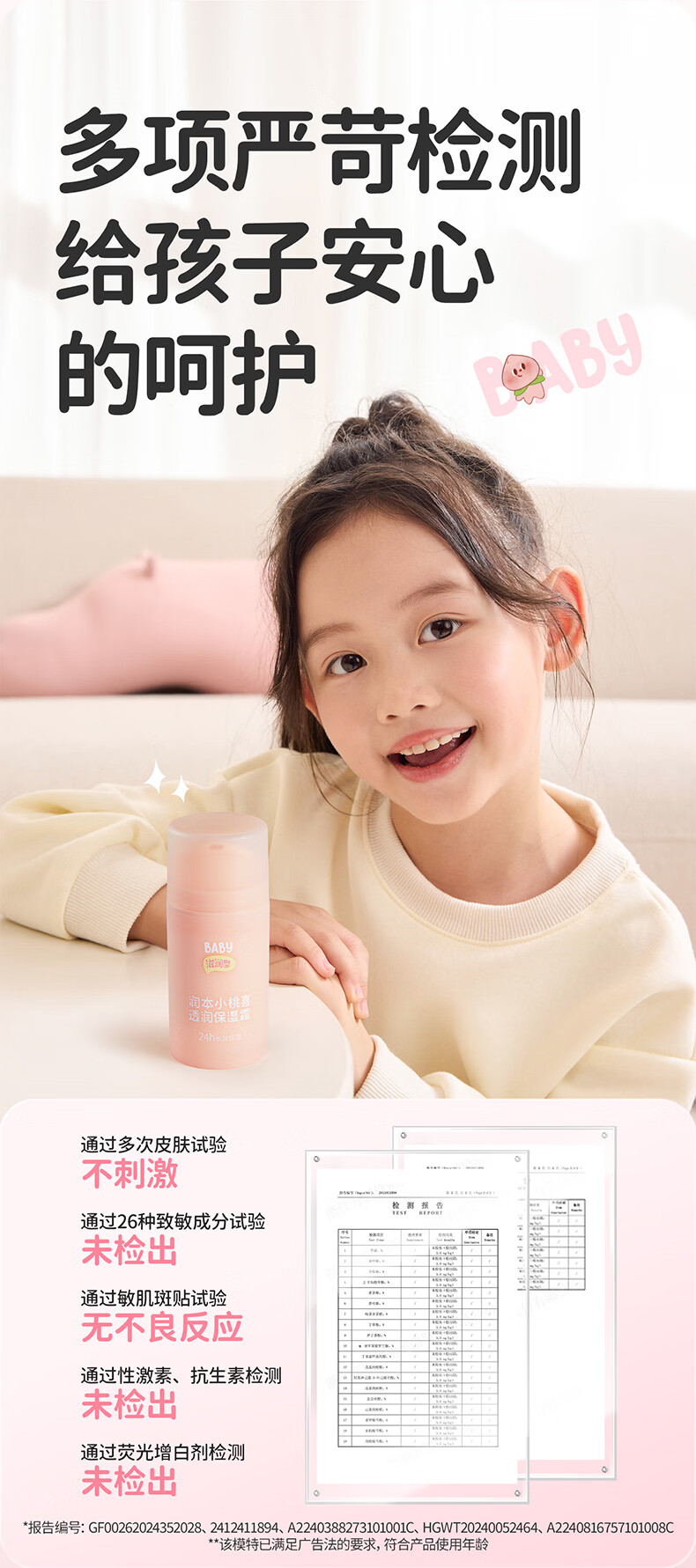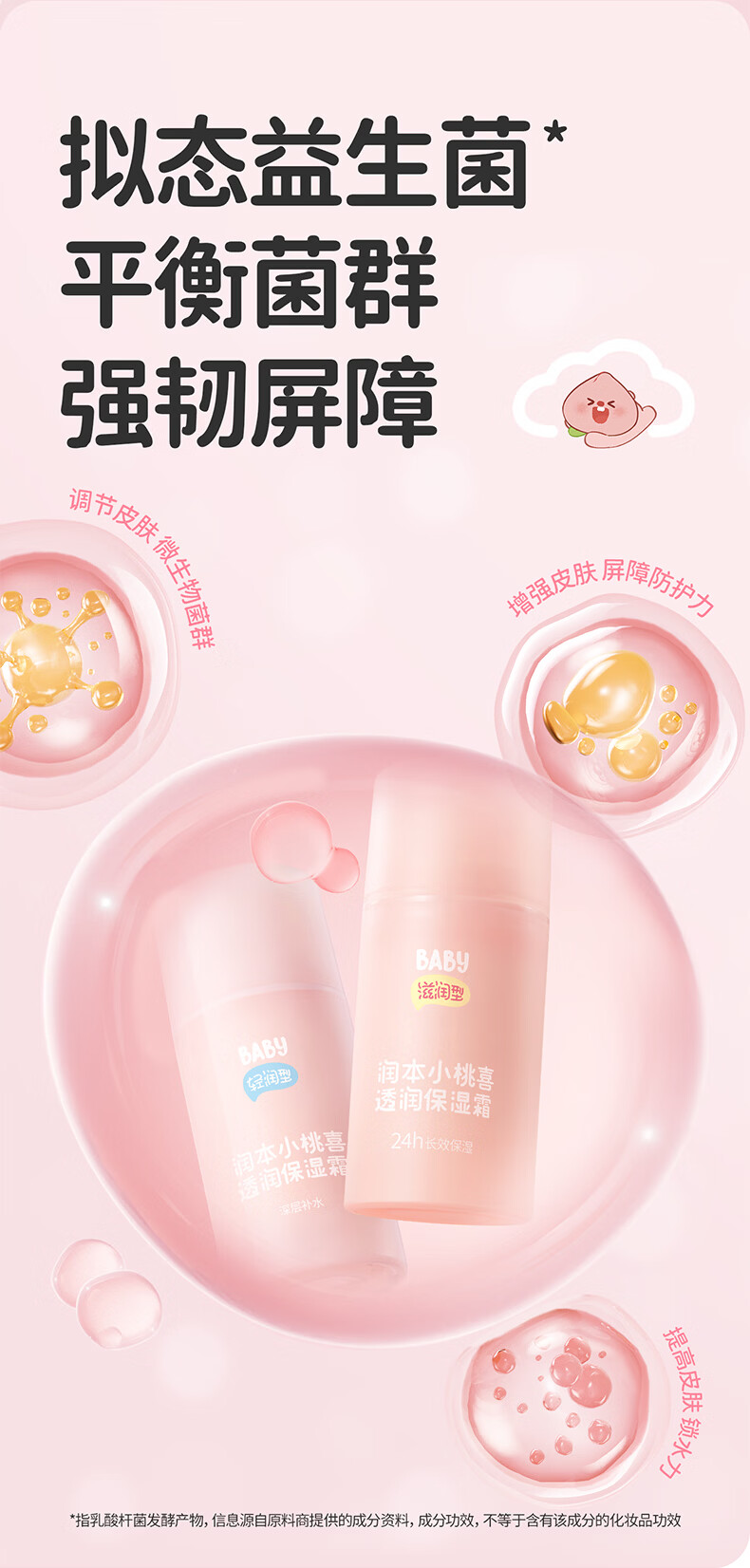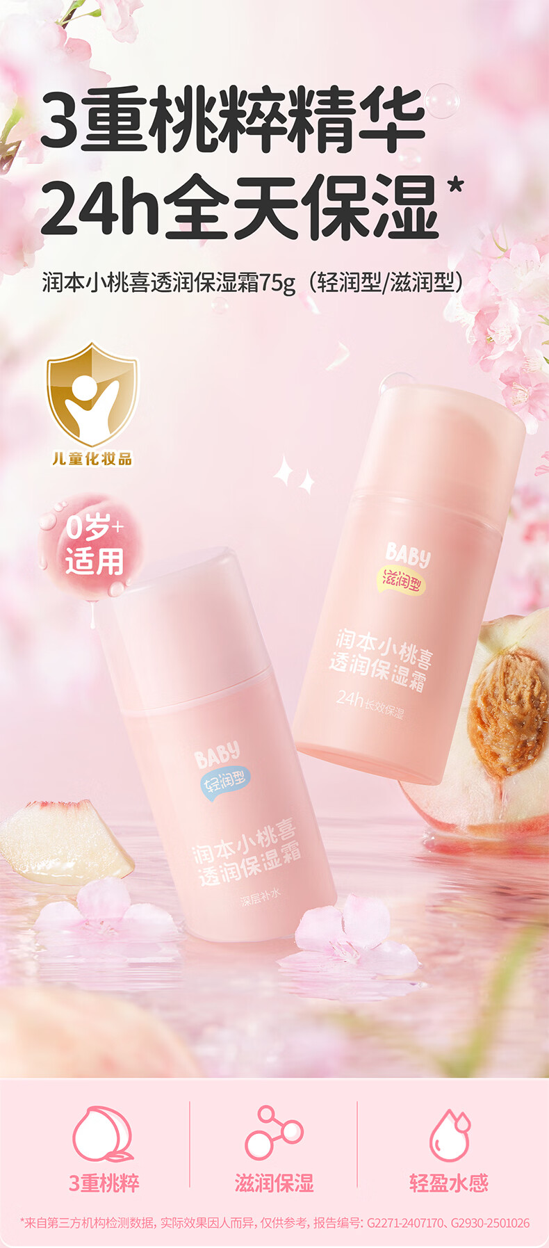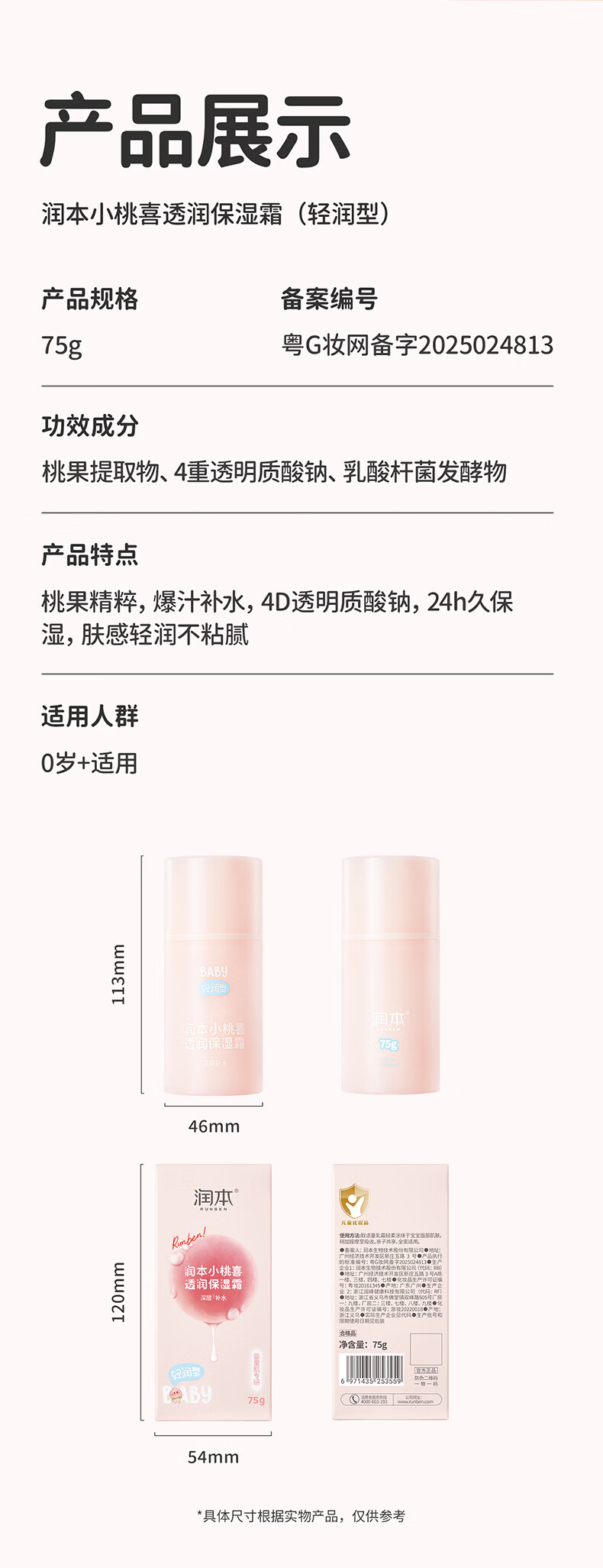 润本儿童宝宝婴儿面霜母婴补水保湿护肤小桃喜透润保湿霜75g轻润款